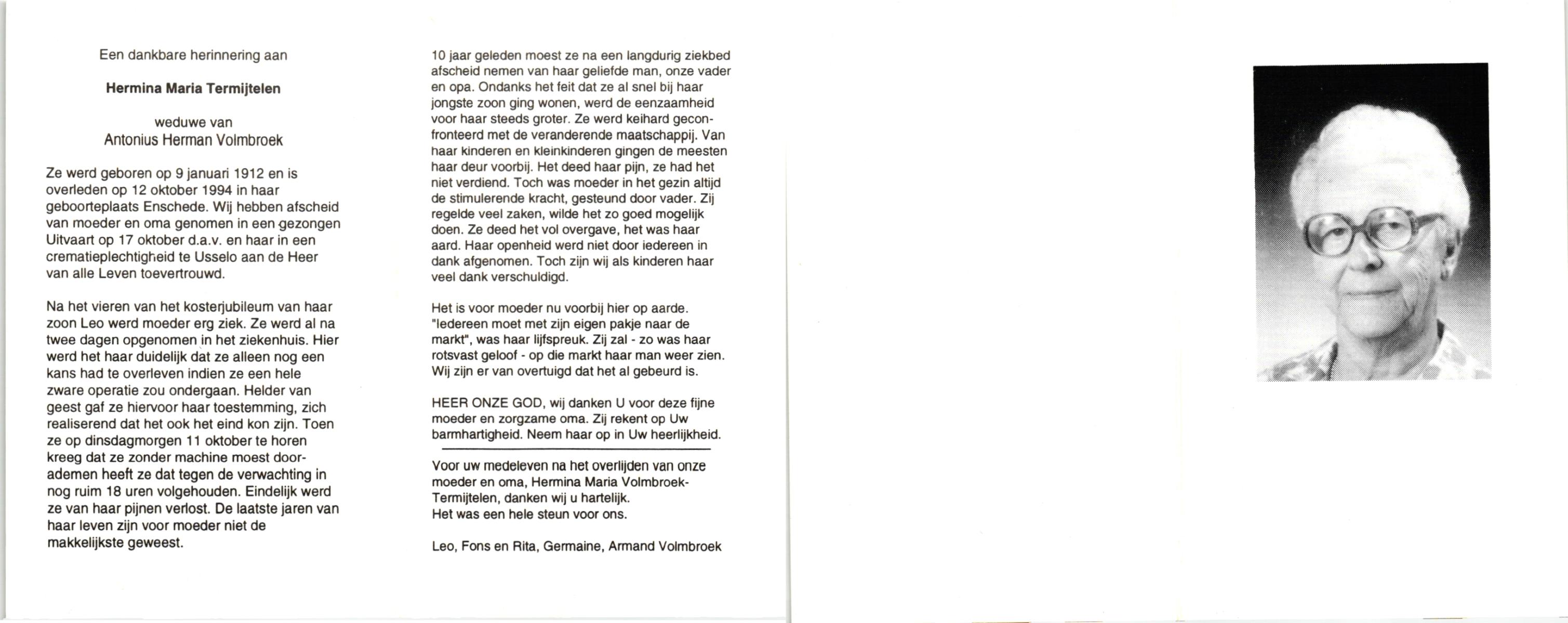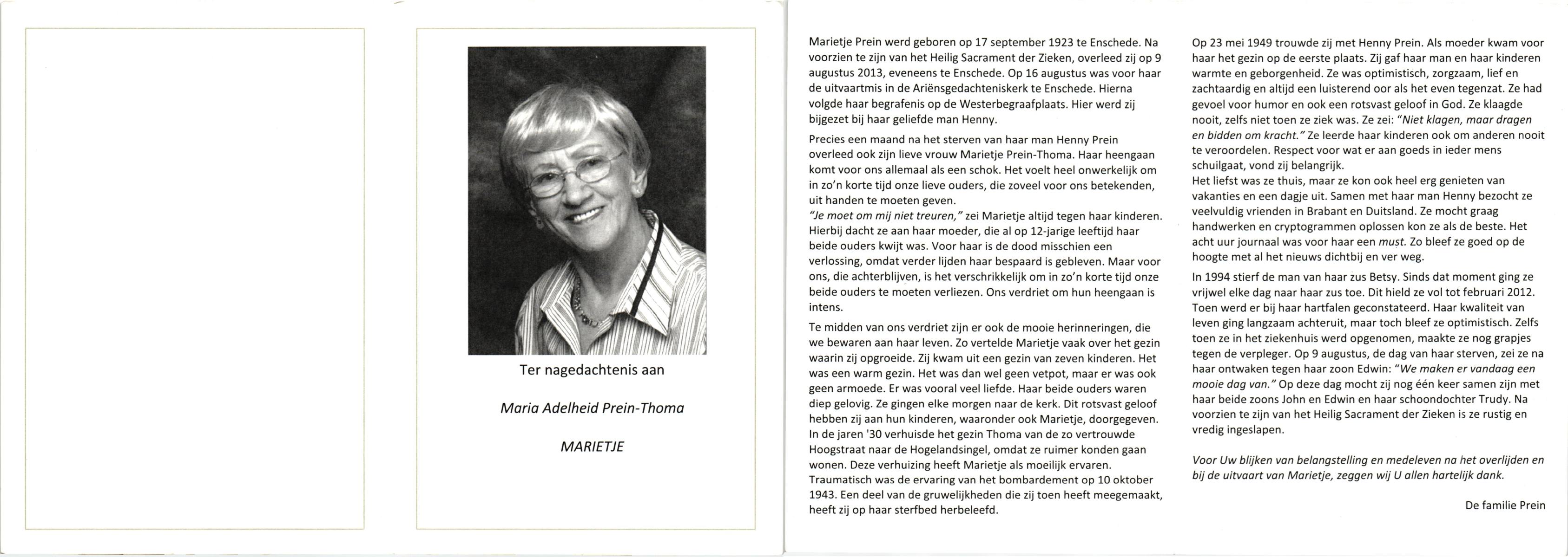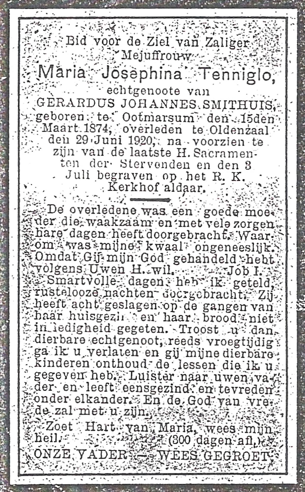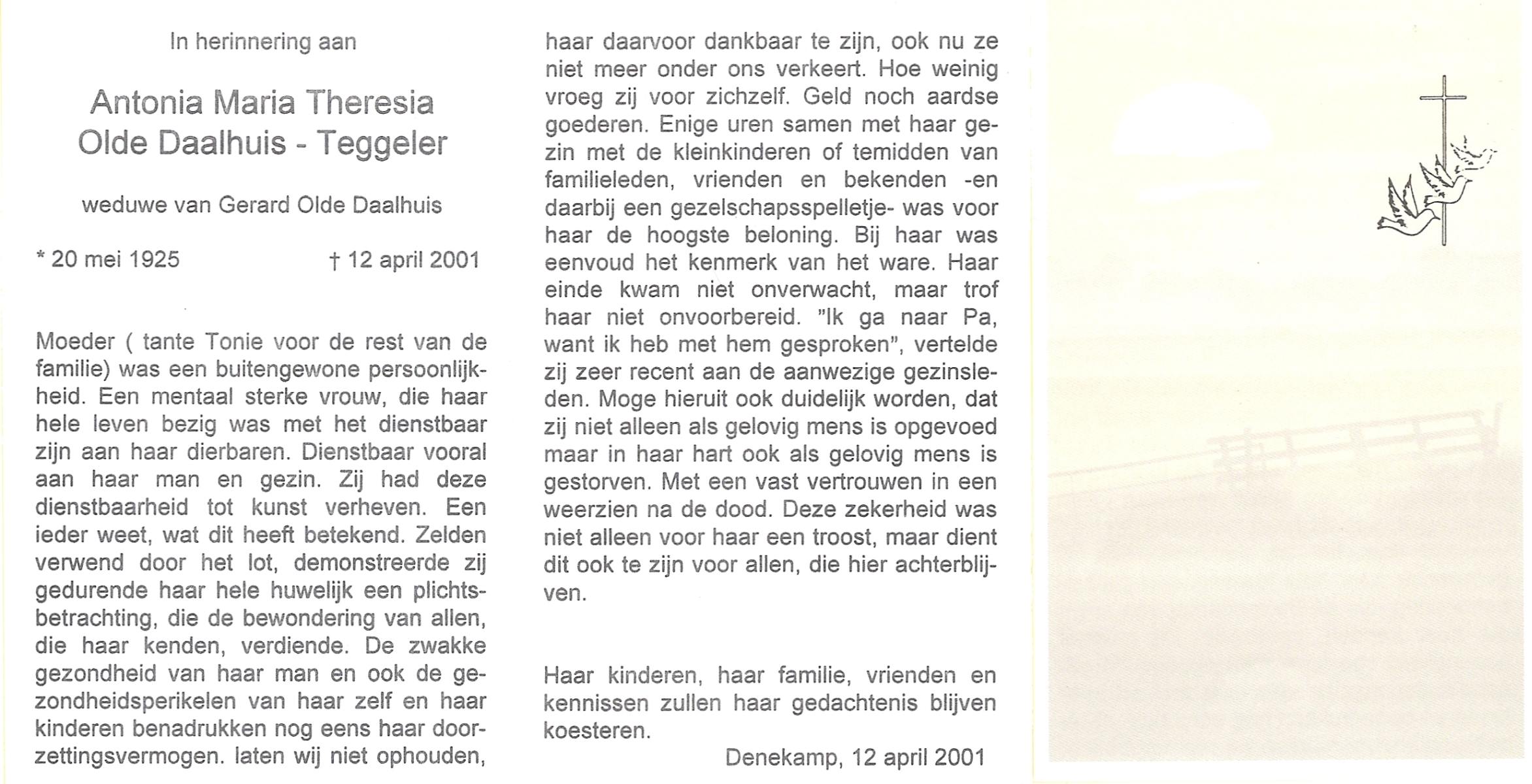 TIJDHOF, Maria Antonia, geboren op 27-11-1892 te Oldenzaal, overleden op 17-2-1977 te Glanerbrug op 84-jarige leeftijd.