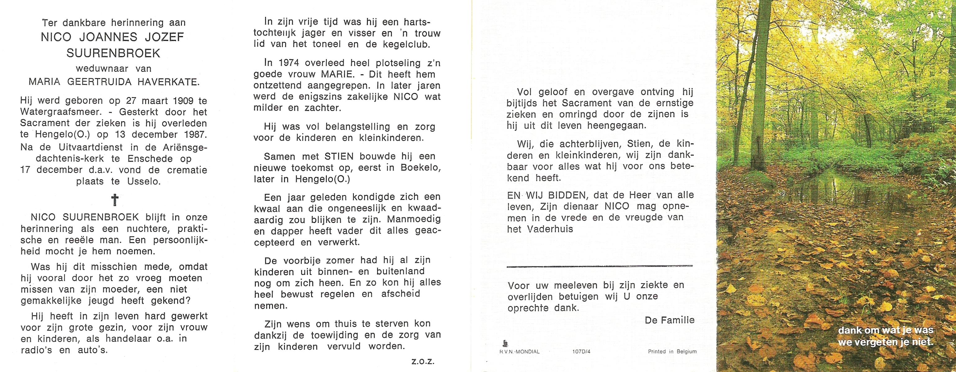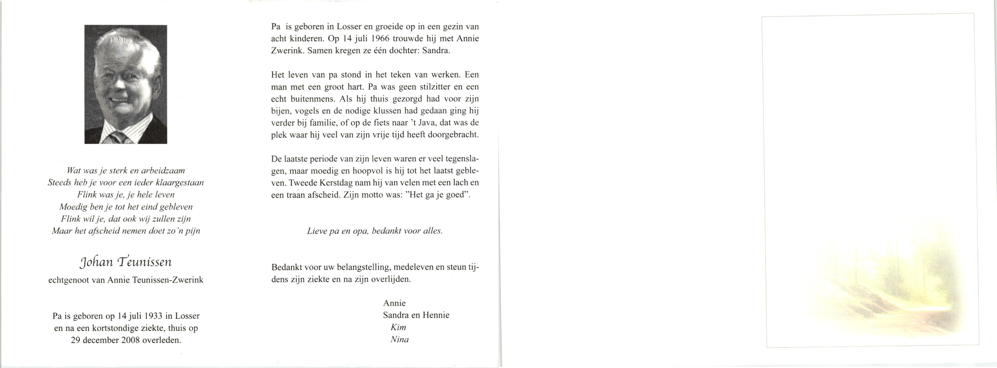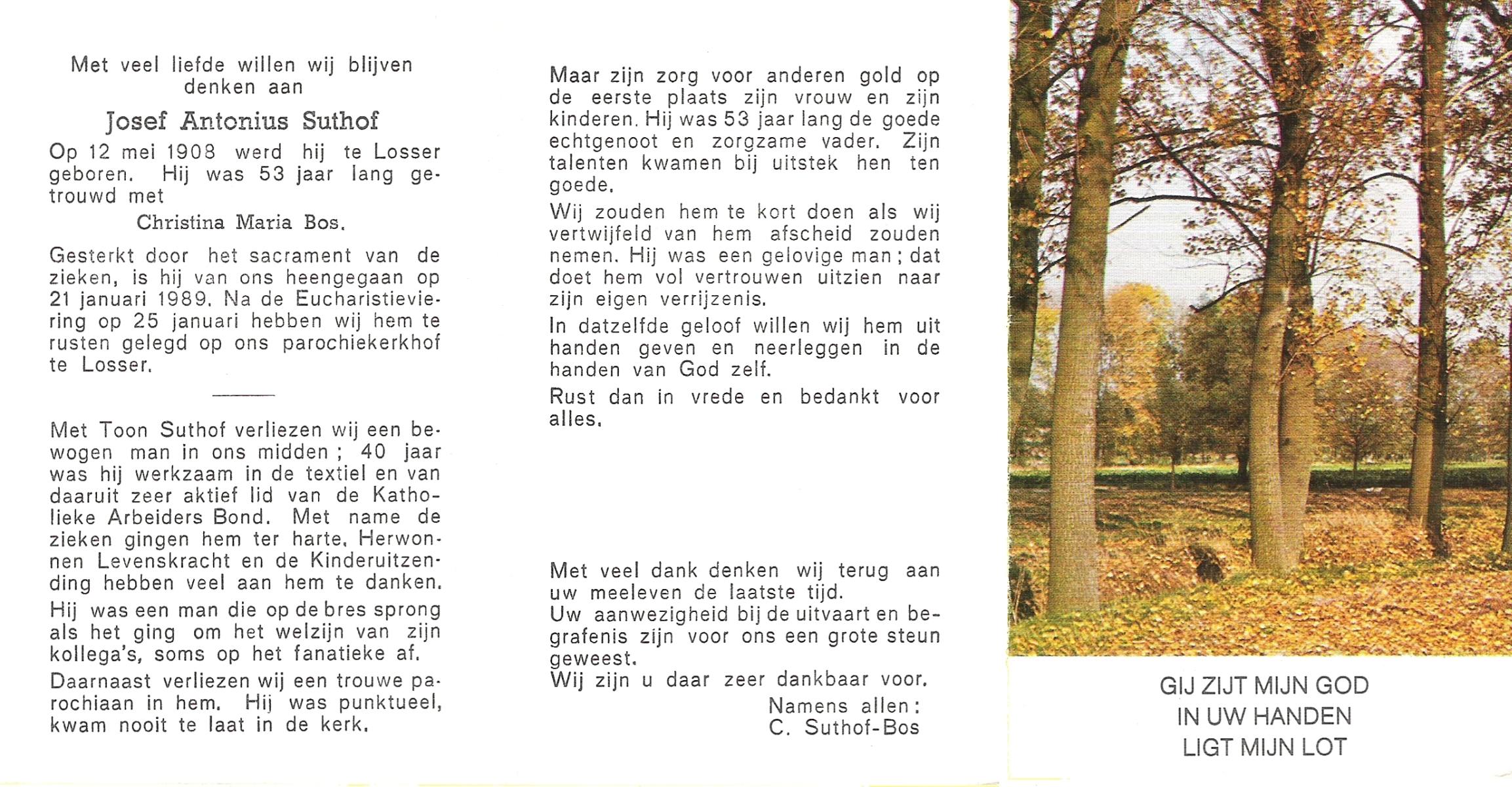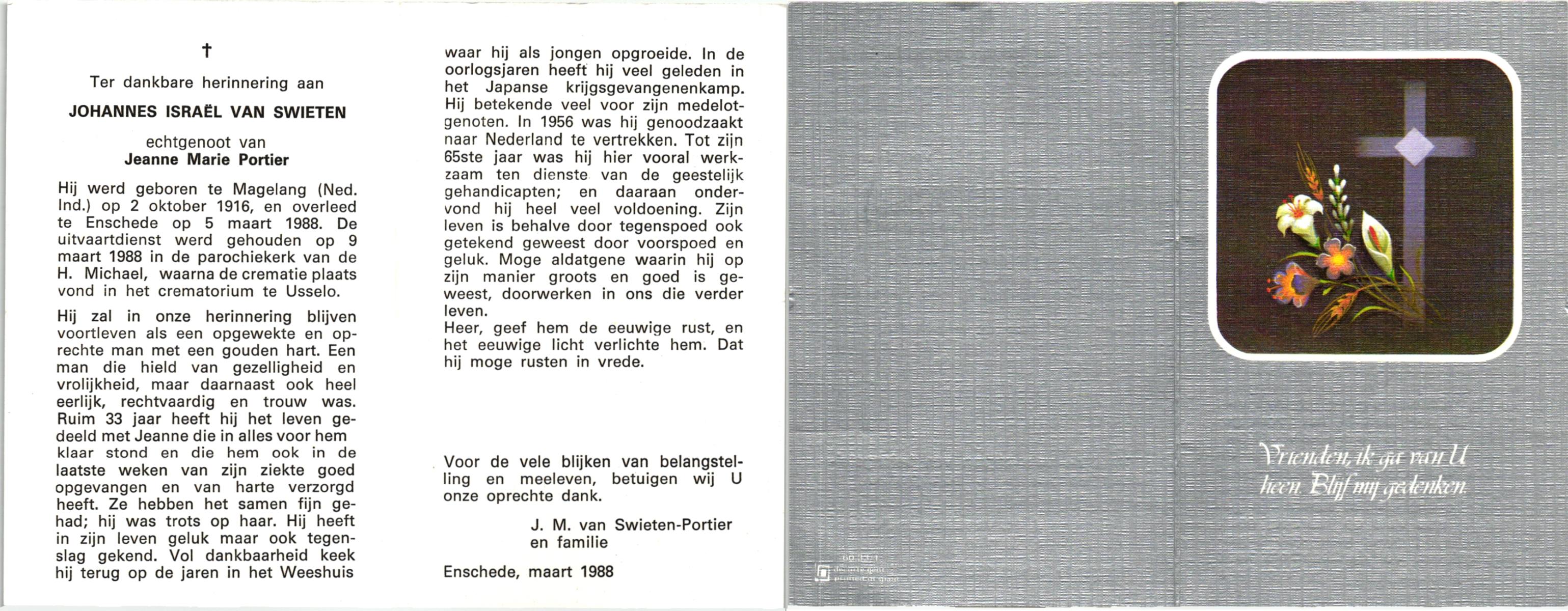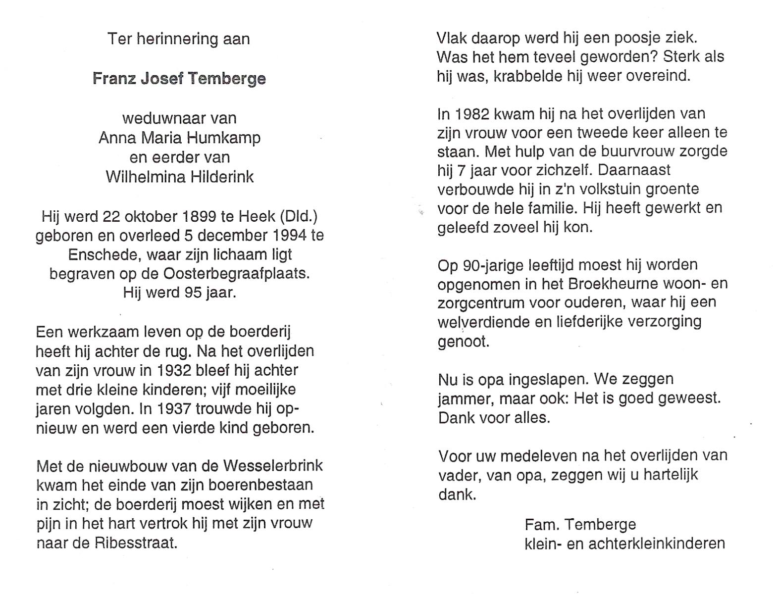 TIEHUIS, Johannes Joseph, geboren op 22-3-1916 te Losser, overleden op 15-7-1993 te Enschede op 77-jarige leeftijd, gecremeerd op 19-7-1993 te Usselo.