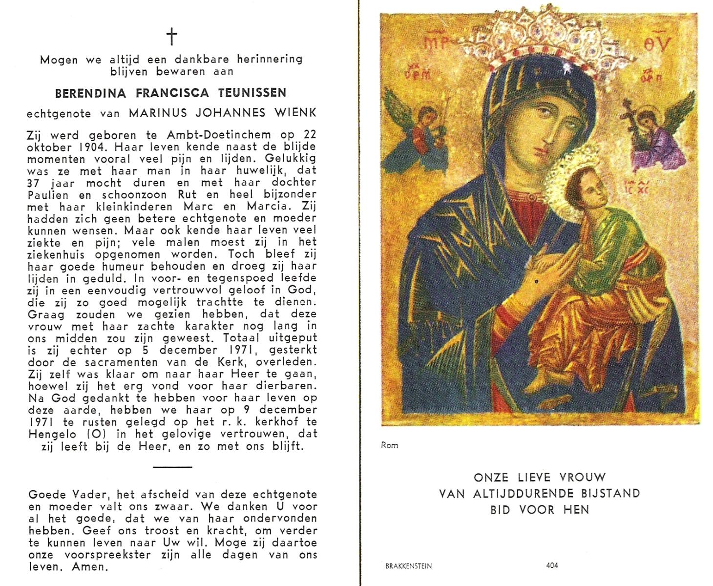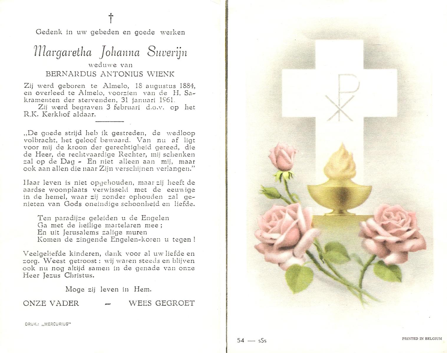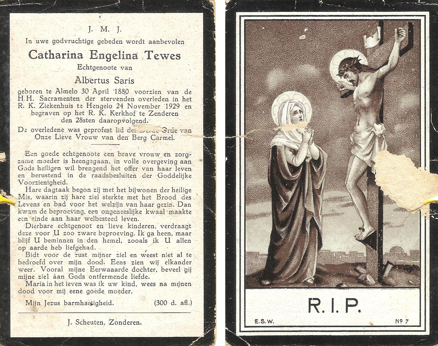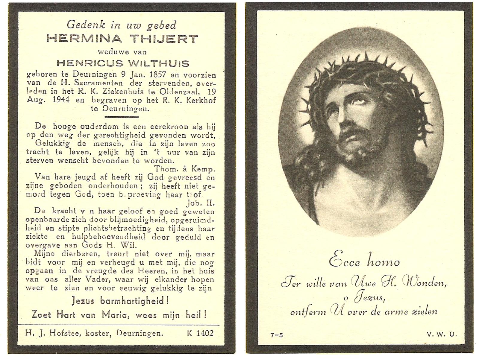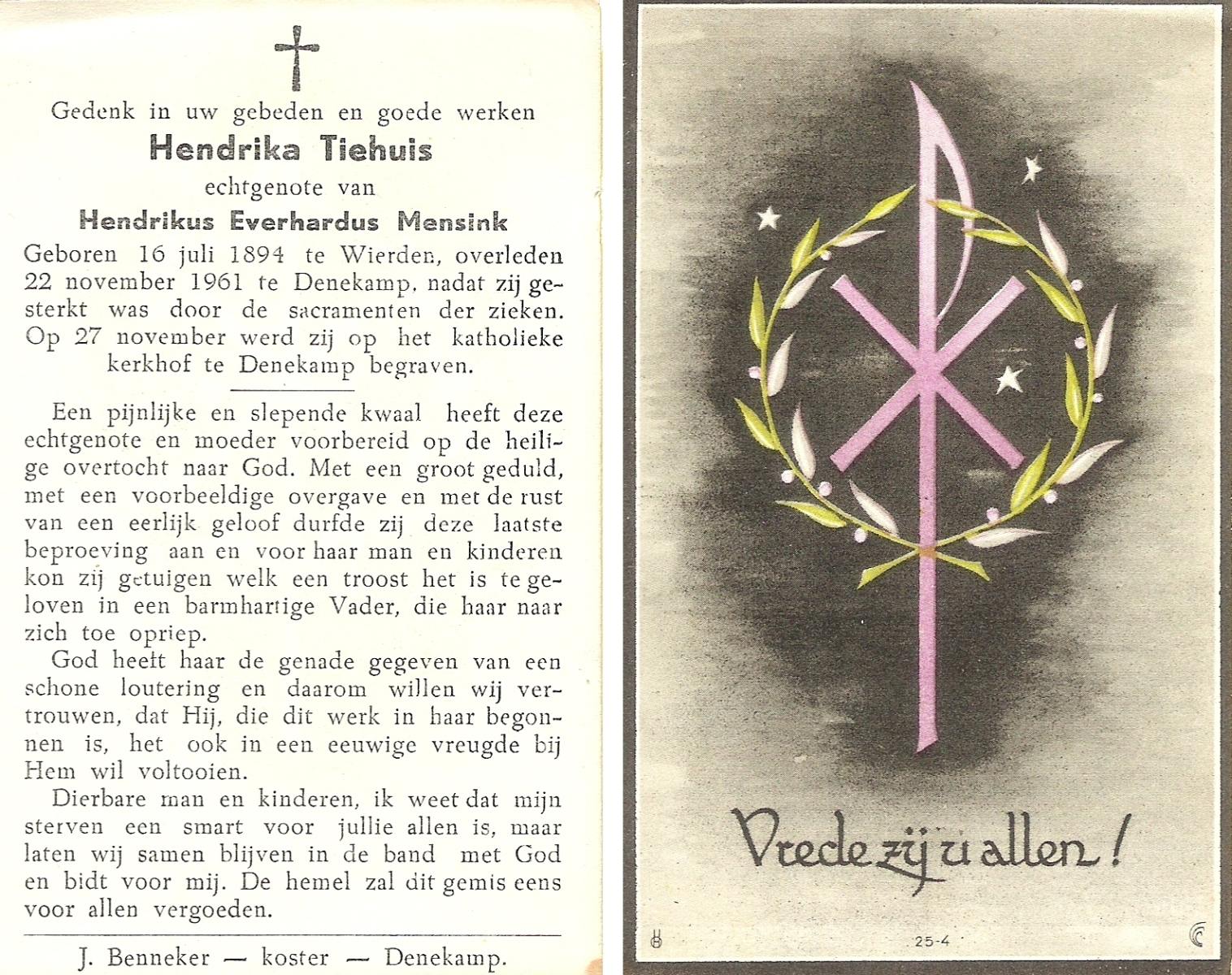 TIEHUIS, Hendrika, geboren op 16-07-1894 te Wierden, overleden op 22-11-1961 te Denekamp op 67-jarige leeftijd, begraven op 27-11-1961 te Denekamp R.K.kerkhof.