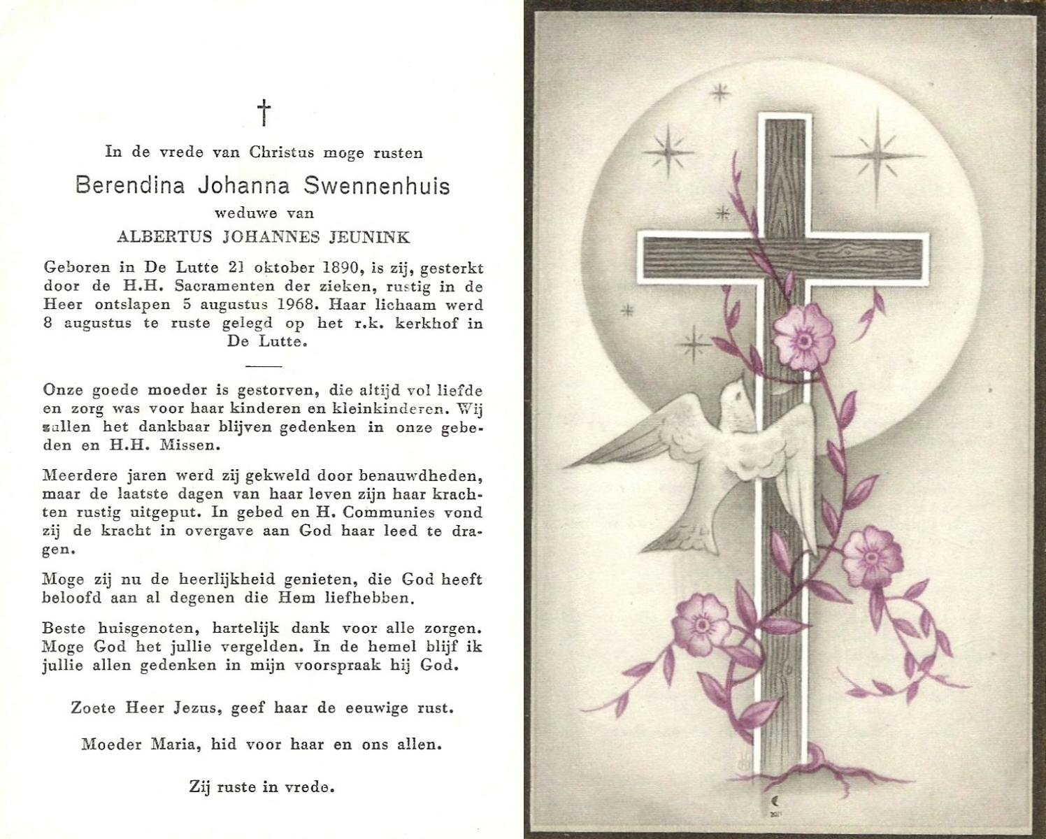 STRUIK, Dina Johanna, geboren op 19-7-1916 te Rijssen, overleden op 18-5-1996 te Almelo, ziekenhuis op 79-jarige leeftijd, begraven te Rijssen, rk.