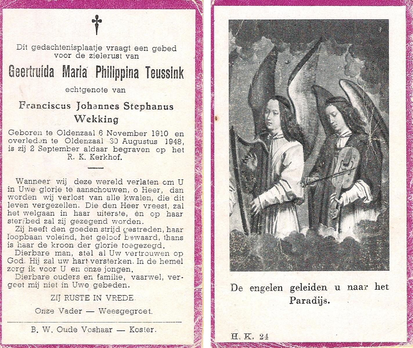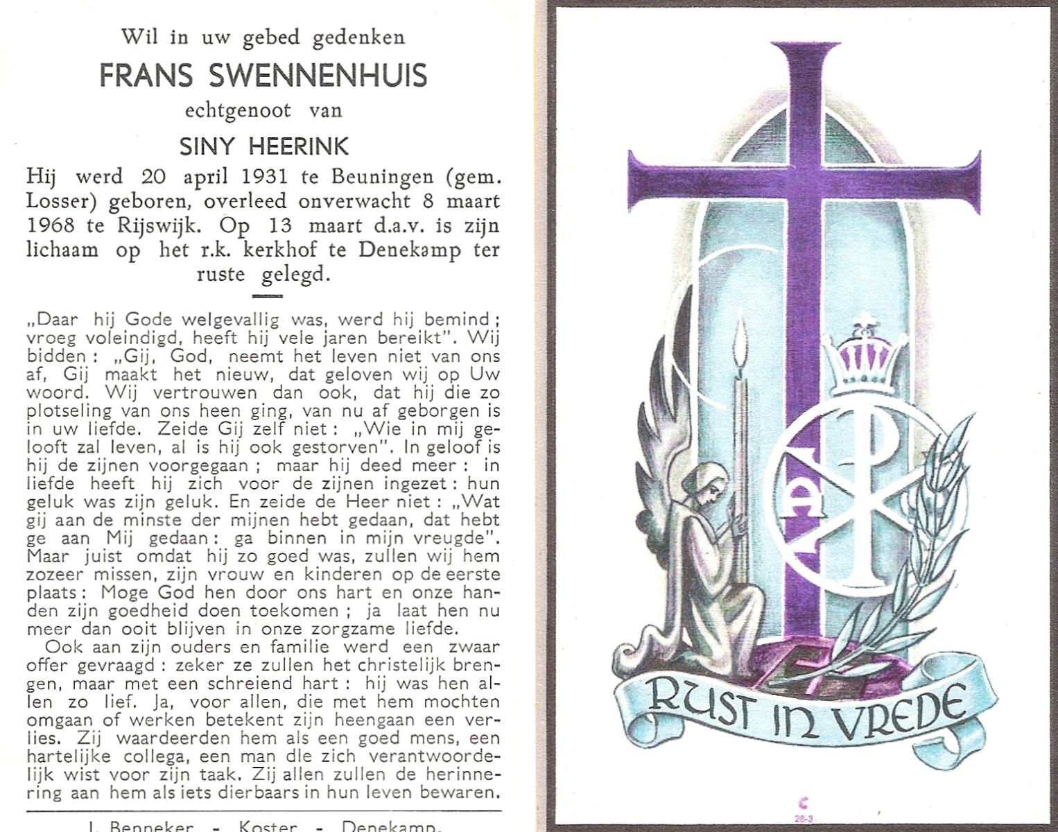 STRIKKER, Franciscus Johannes, geboren op 5-7-1927 te Hengelo, overleden op 17-6-1979 te Enschede, ziekenhuis op 71-jarige leeftijd, begraven op 20-6-1979 te Hengelo.