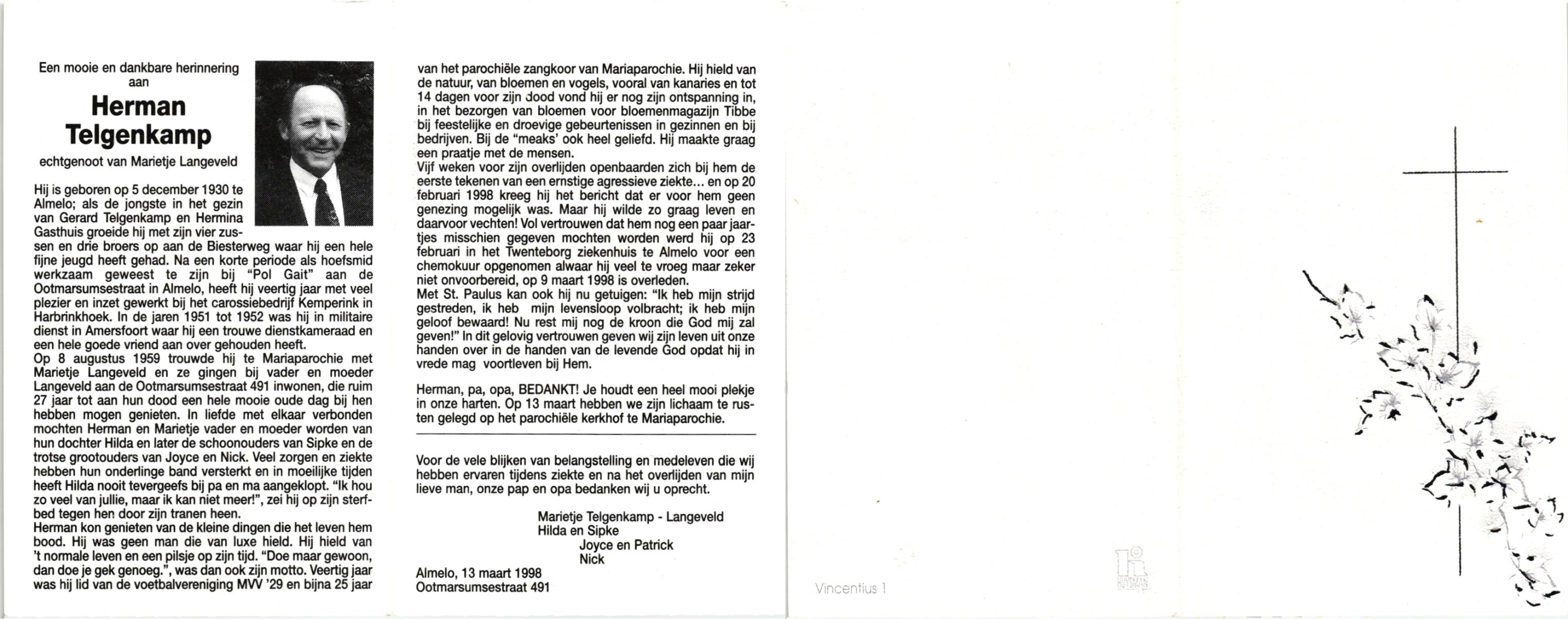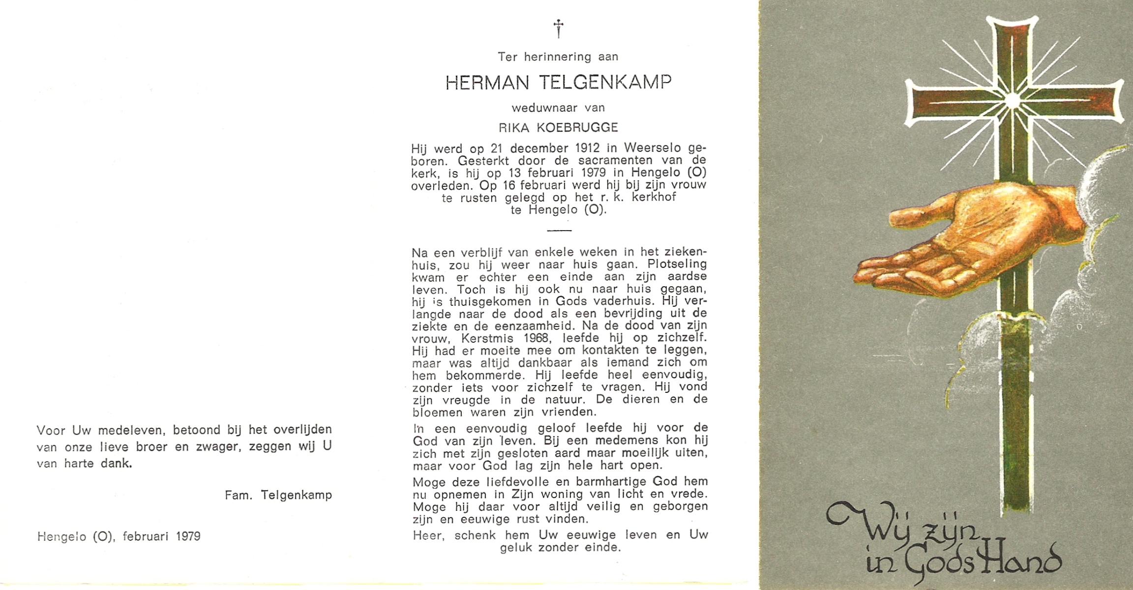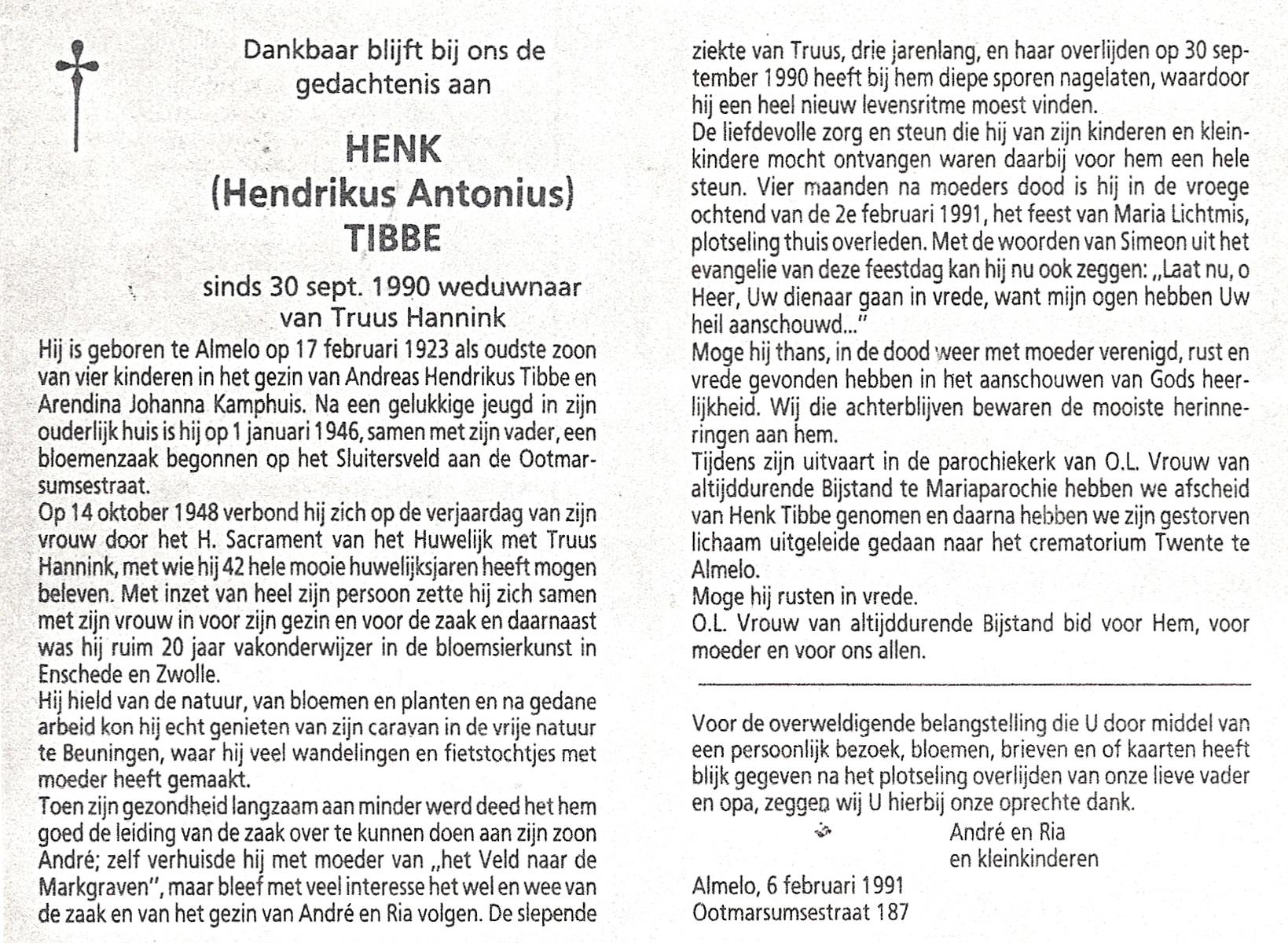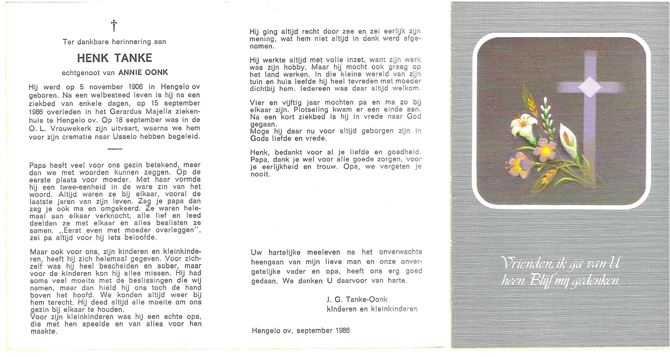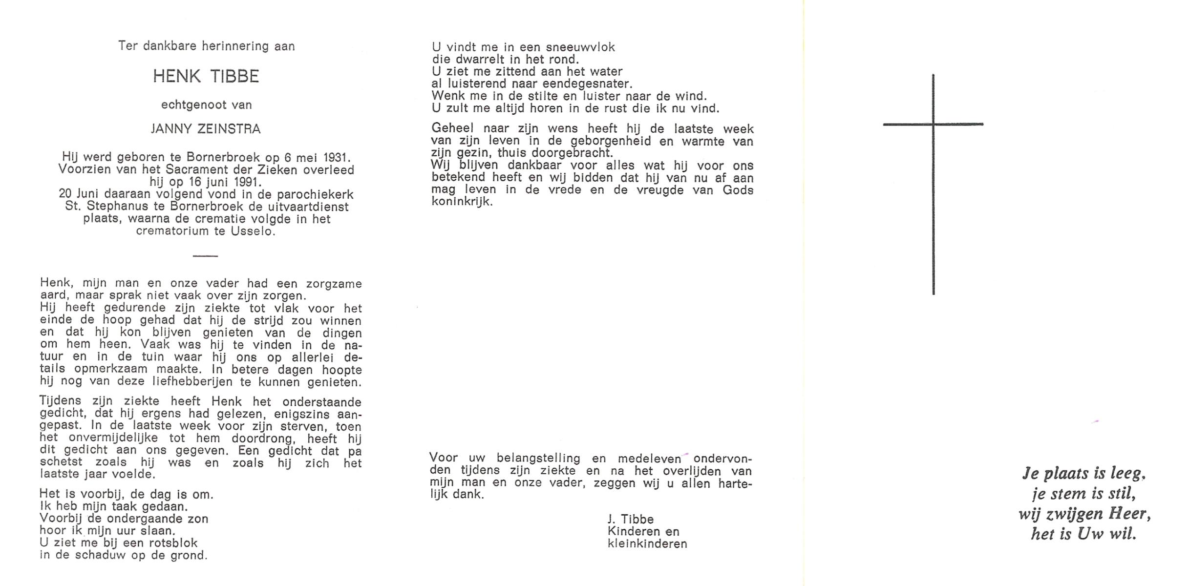 TIEHUIS, Hermanus Johannes, geboren op 5-2-1916 te Denekamp, overleden op 12-1-1990 op 73-jarige leeftijd, gecremeerd op 16-1-1990 te Usselo.