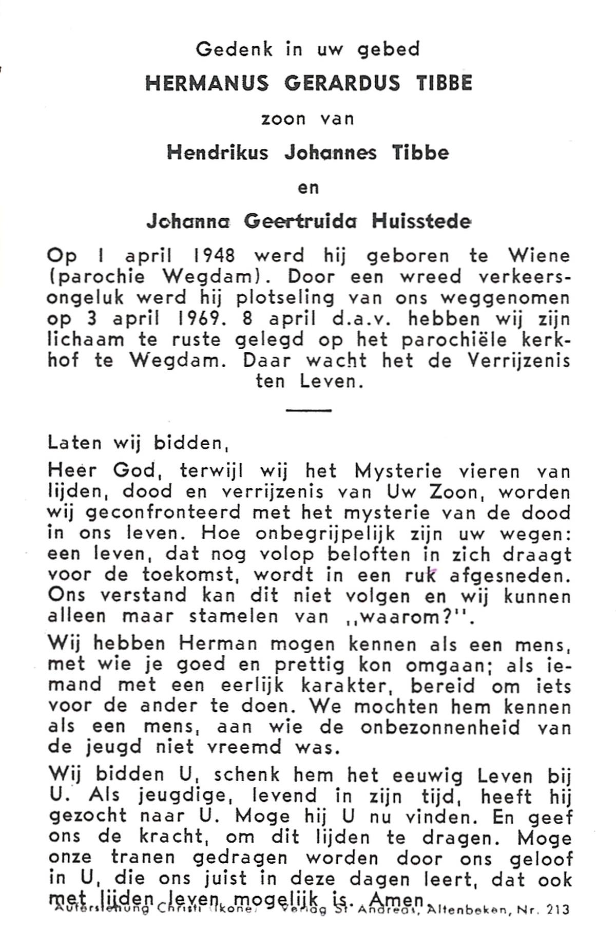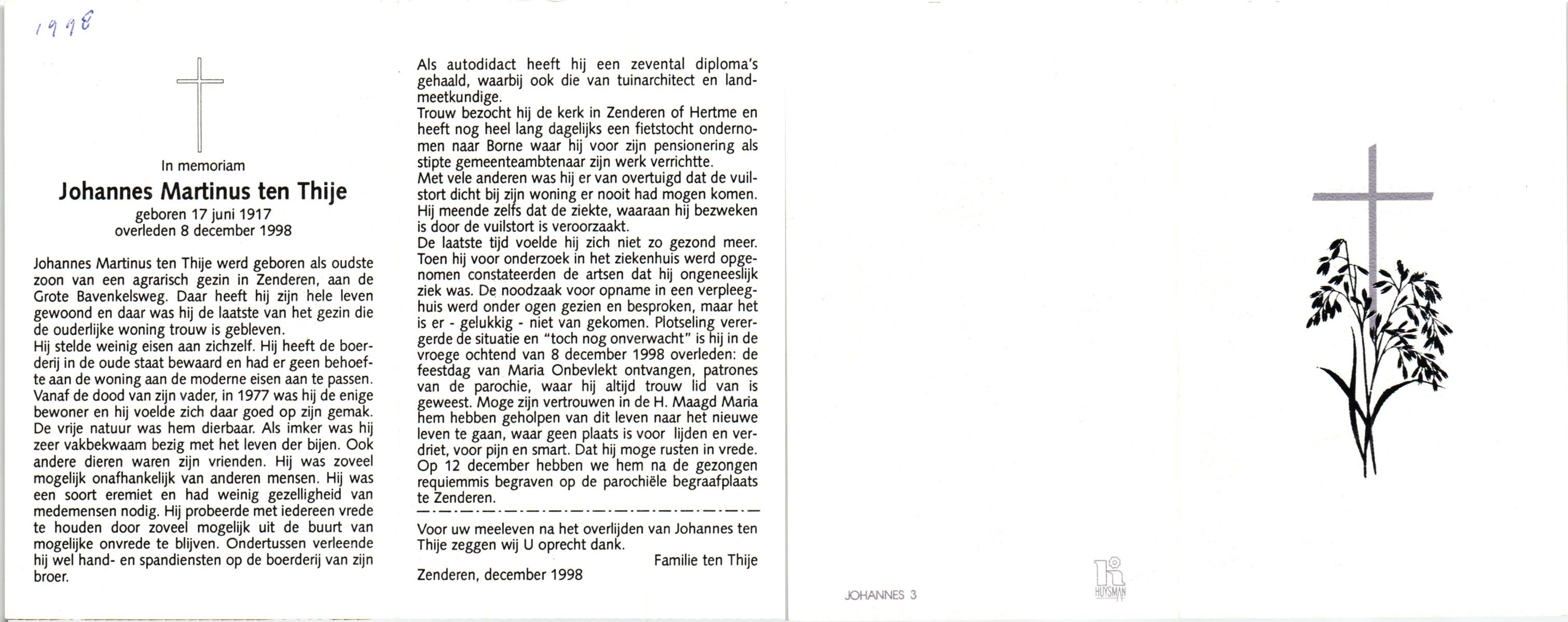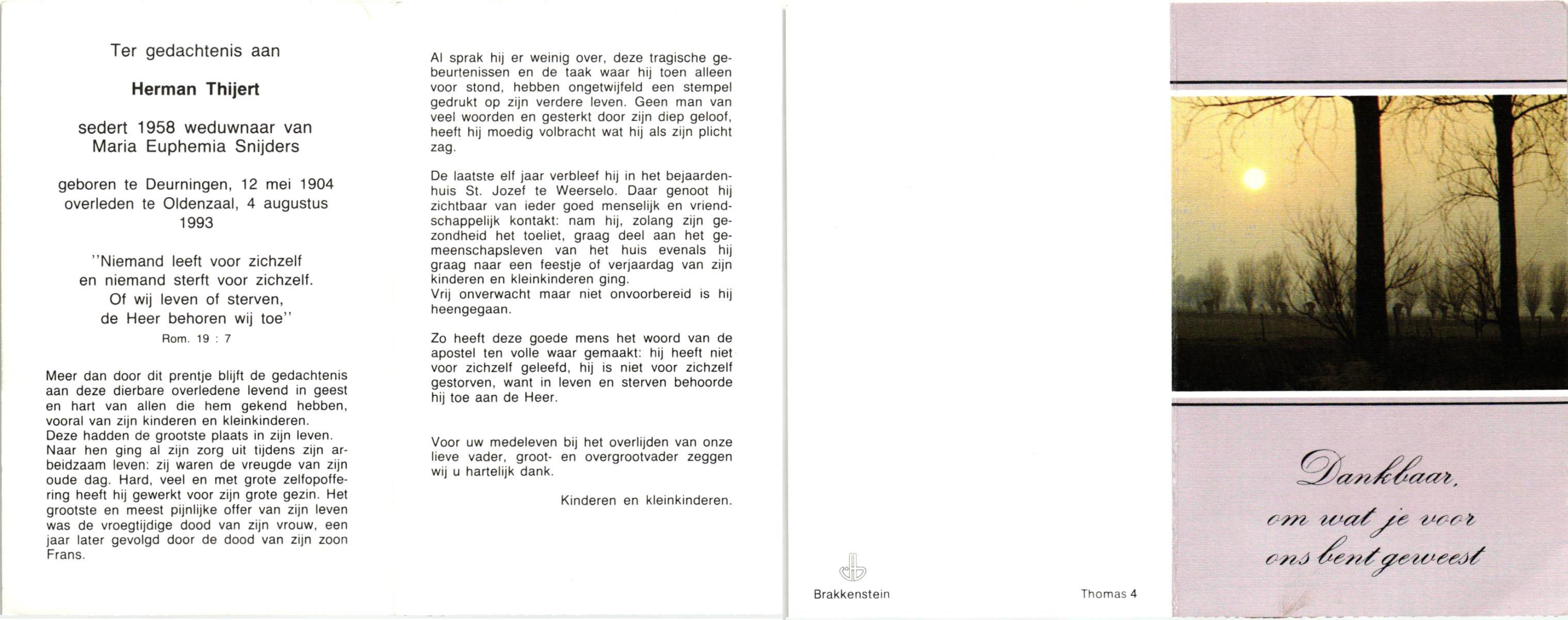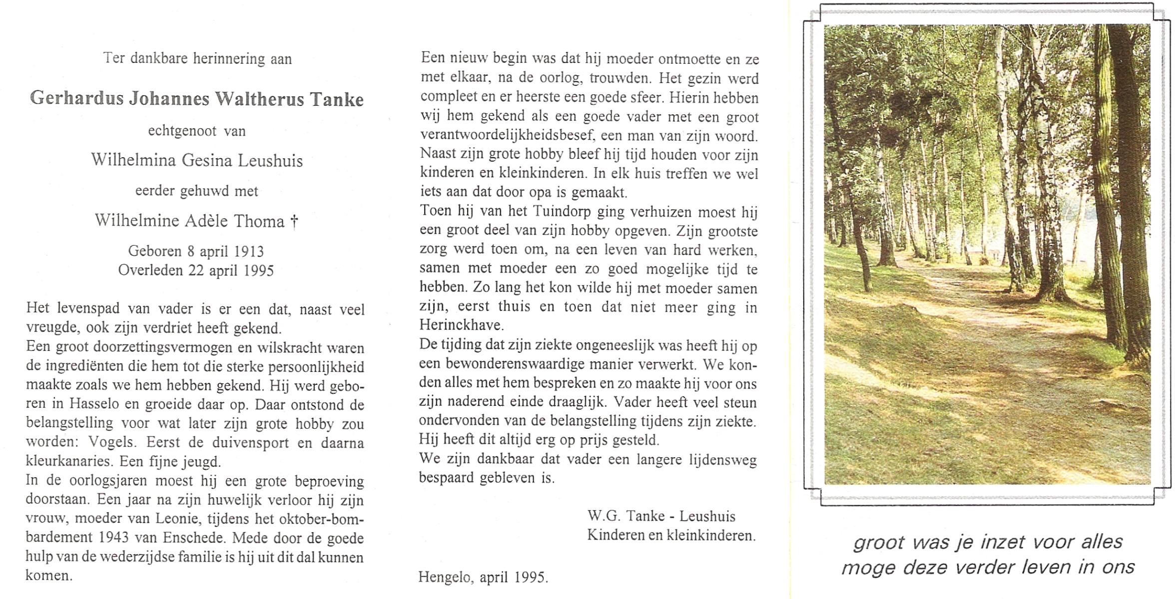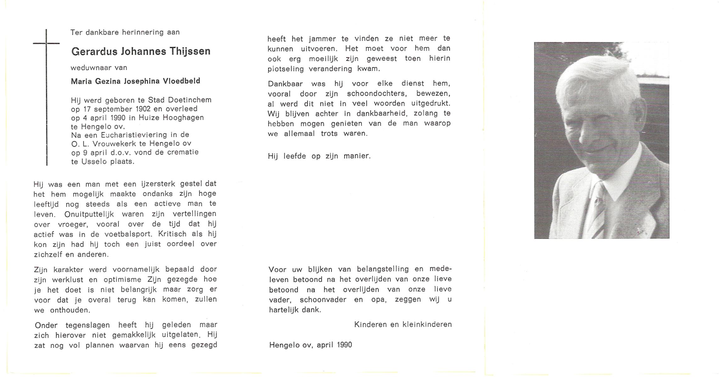 TIEHUIS, Hermanus Johannes, geboren op 5-2-1916 te Denekamp, overleden op 12-1-1990 op 73-jarige leeftijd, gecremeerd op 16-1-1990 te Usselo.
