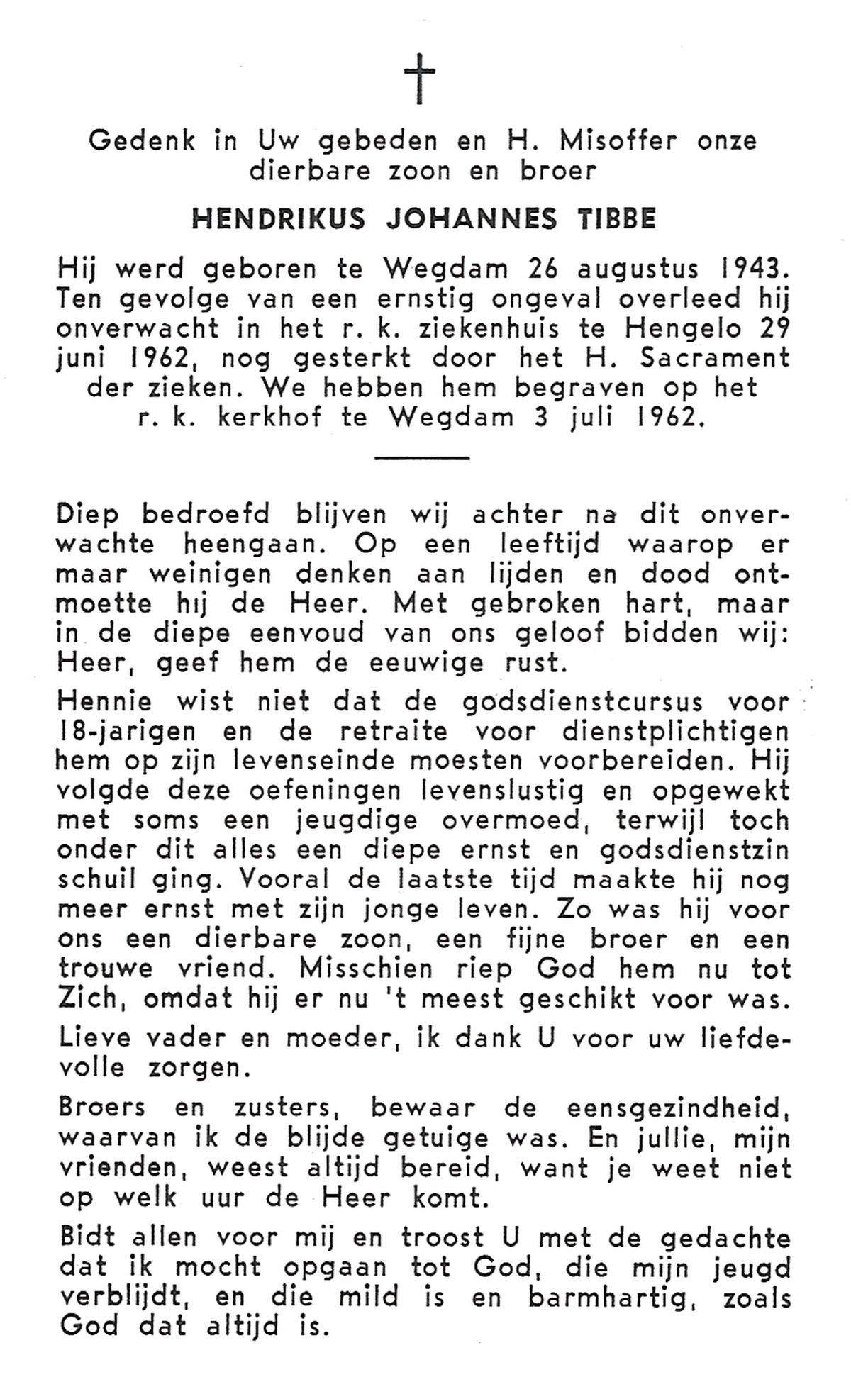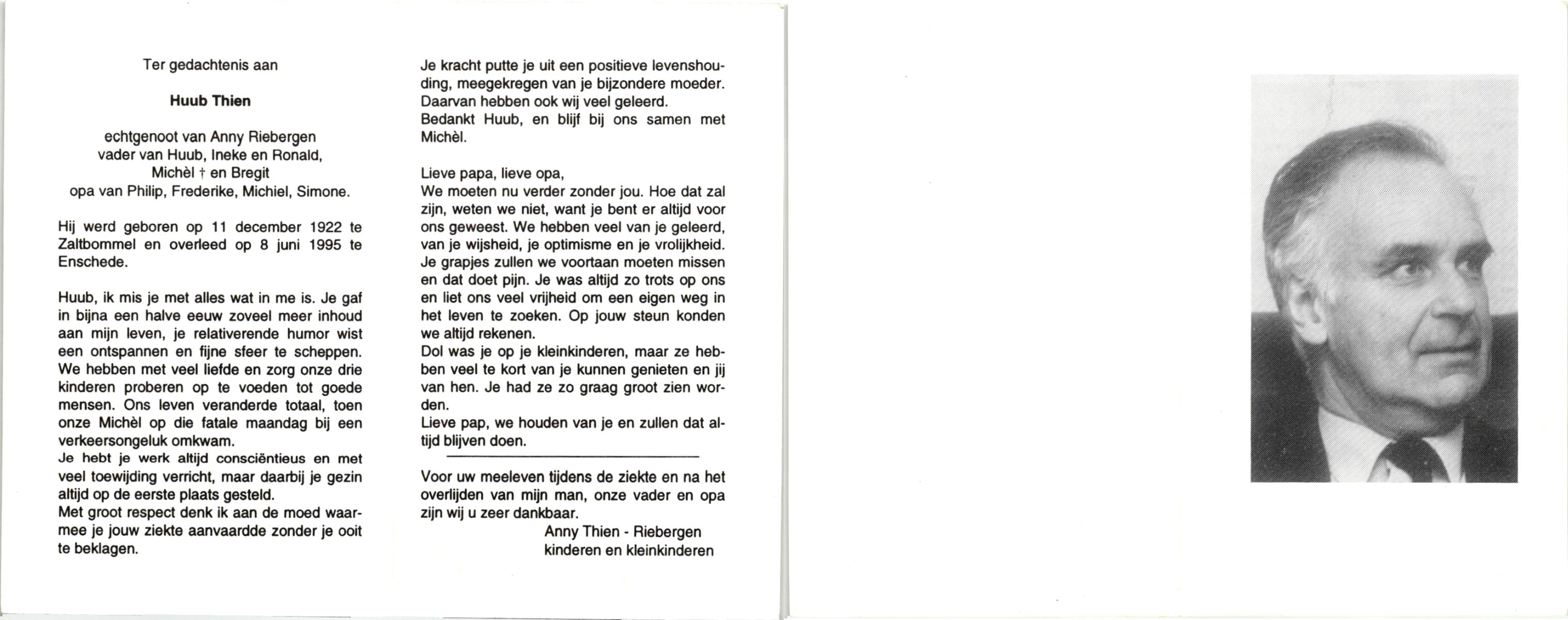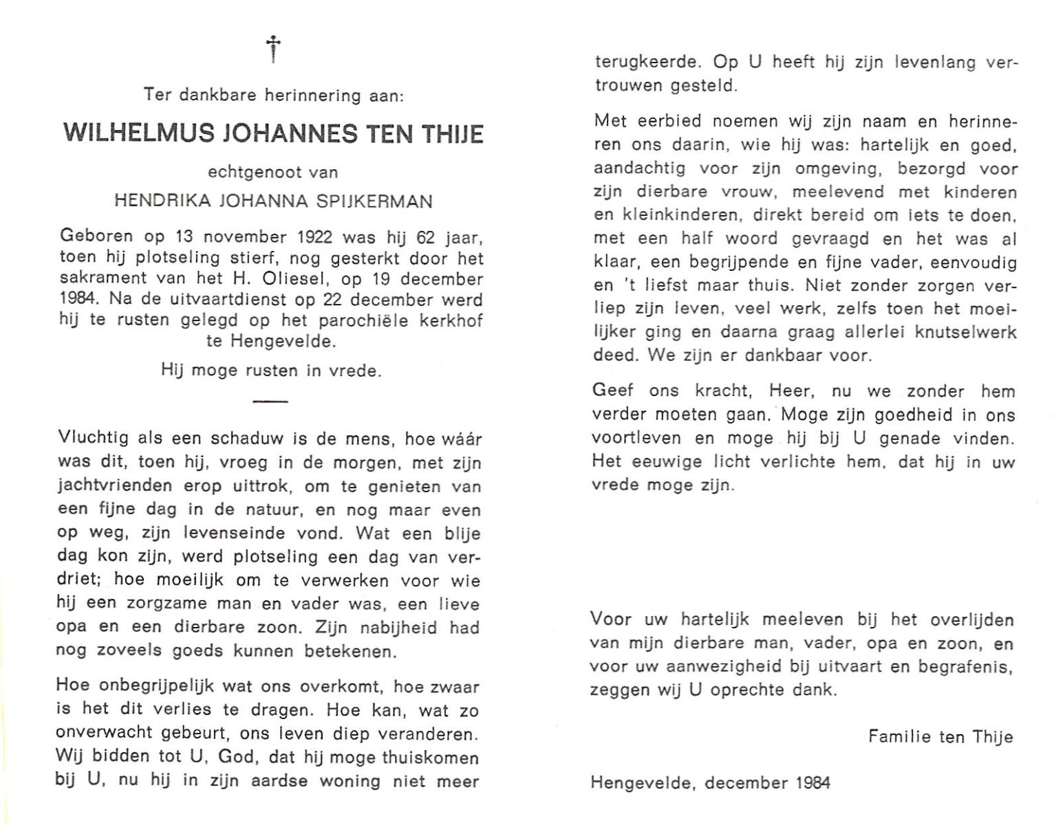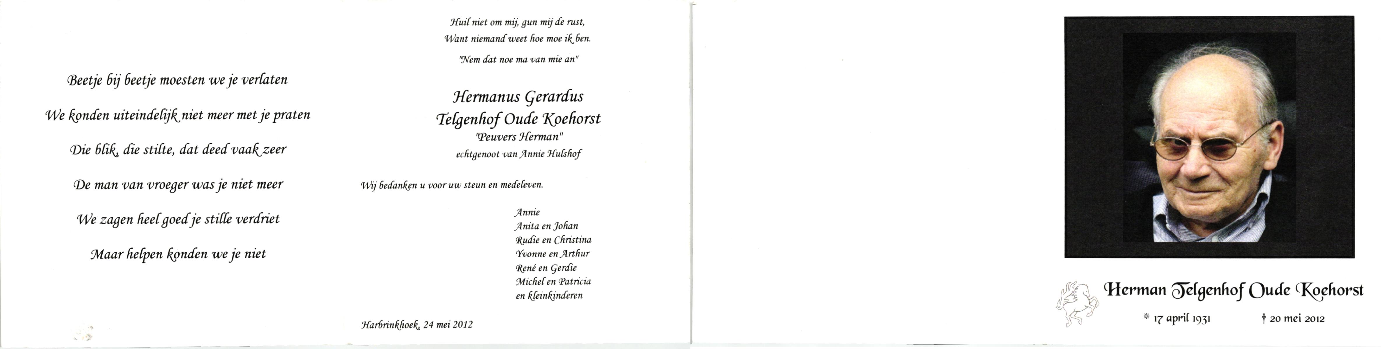 TIEHUIS, Hermanus Johannes, geboren op 5-2-1916 te Denekamp, overleden op 12-1-1990 op 73-jarige leeftijd, gecremeerd op 16-1-1990 te Usselo.