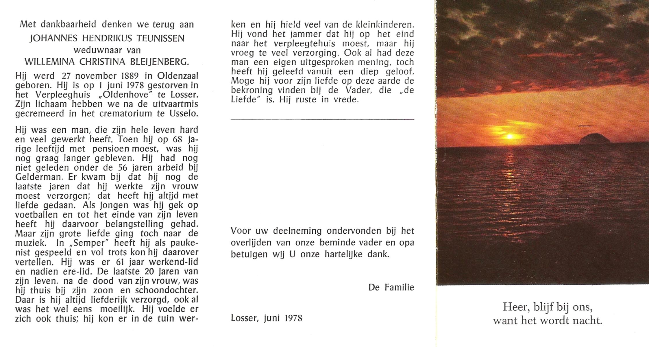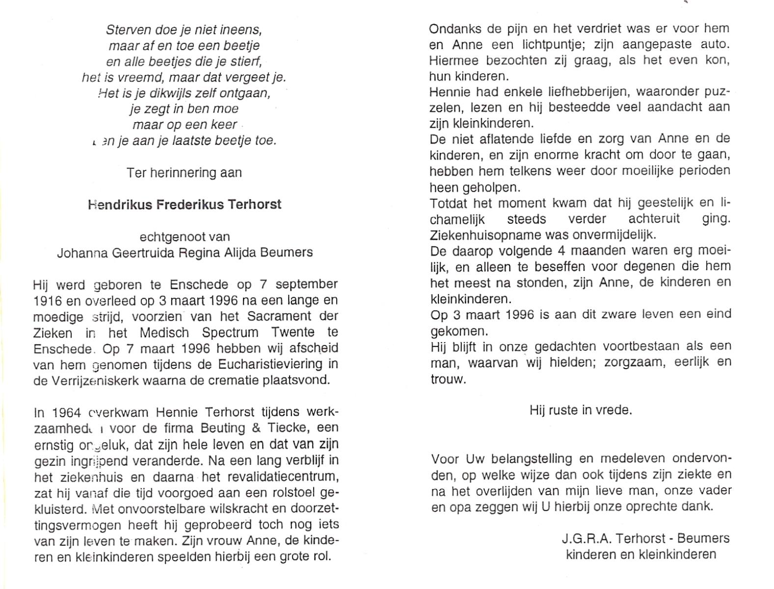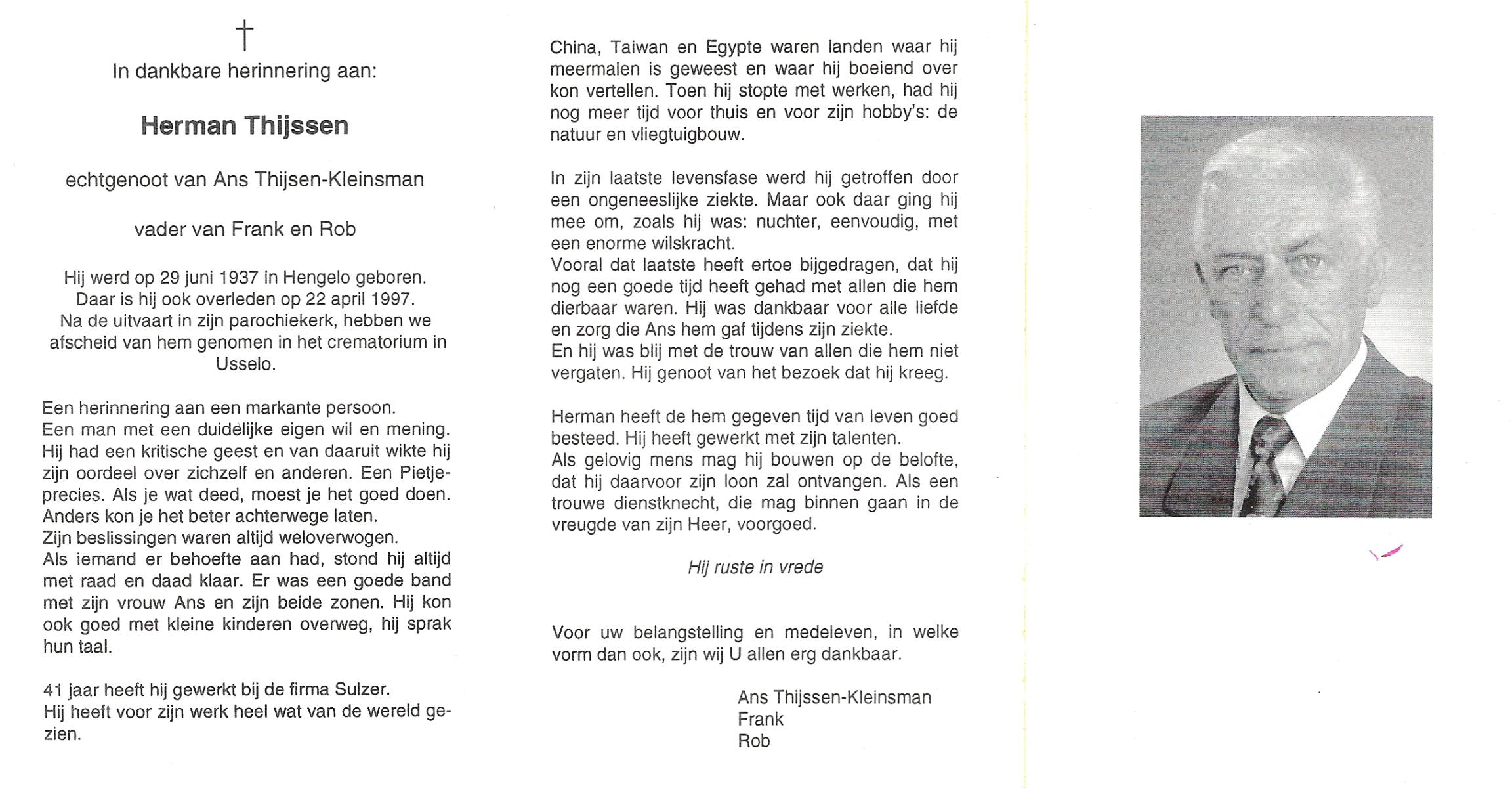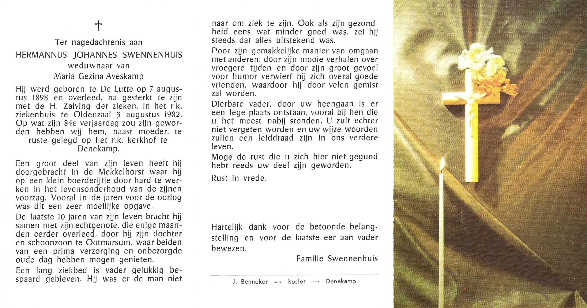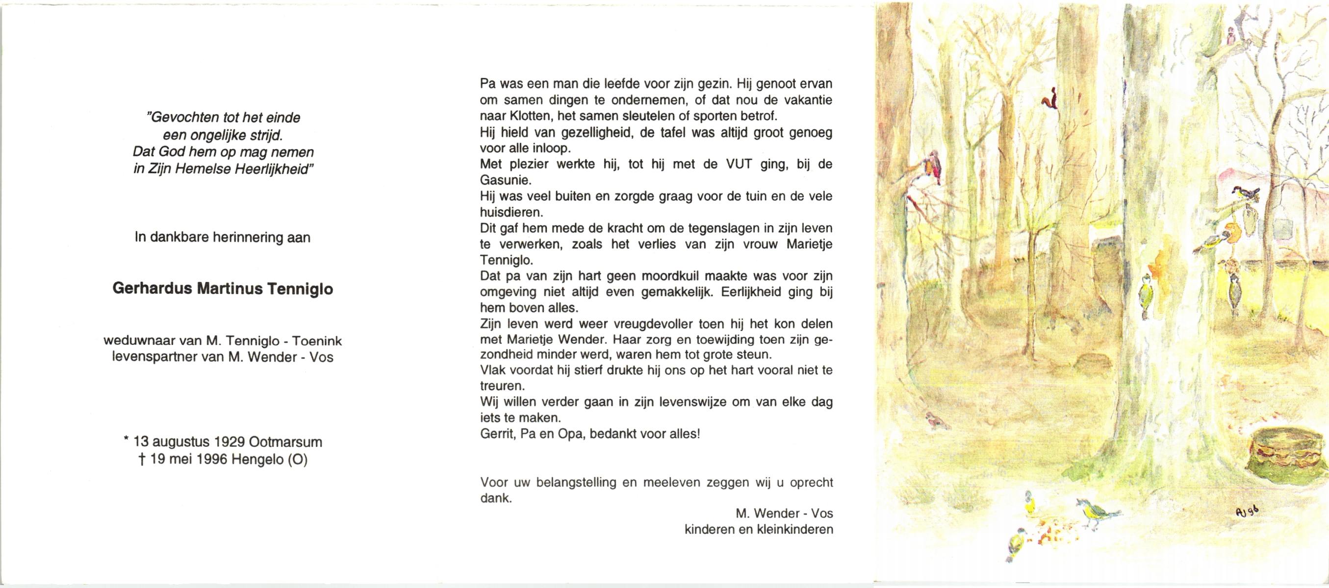 TIEHUIS, Hermanus Johannes, geboren op 5-2-1916 te Denekamp, overleden op 12-1-1990 op 73-jarige leeftijd, gecremeerd op 16-1-1990 te Usselo.