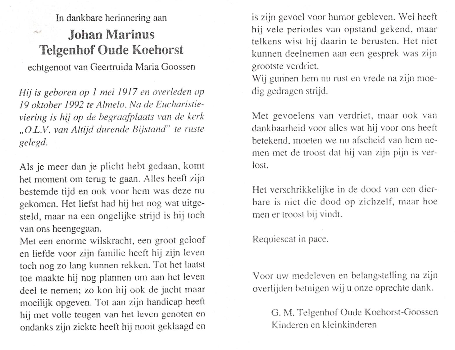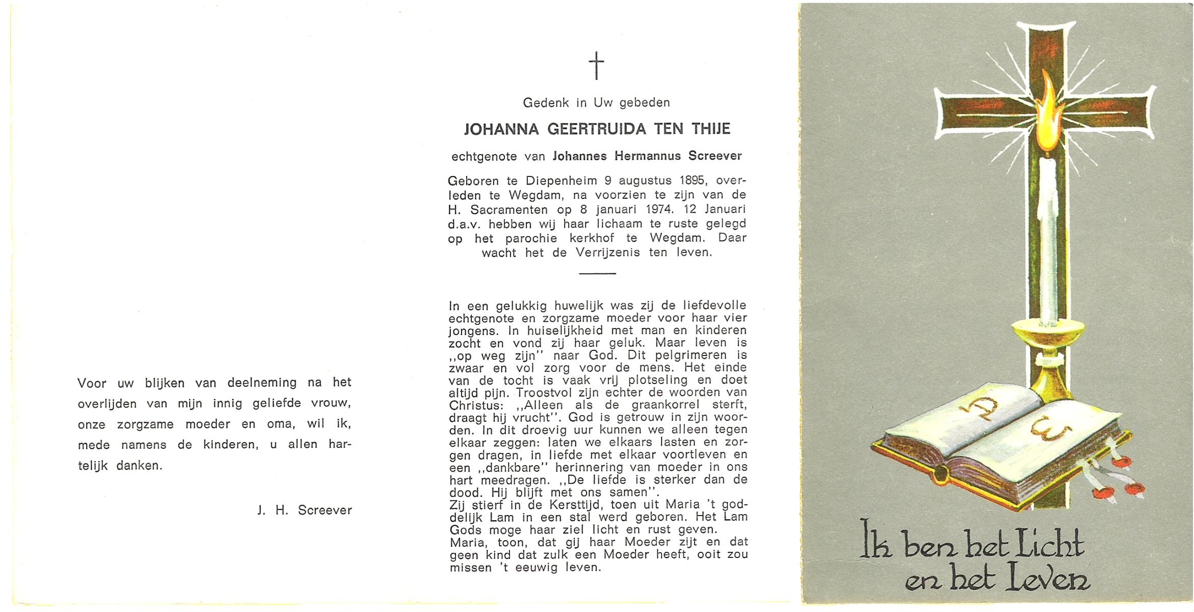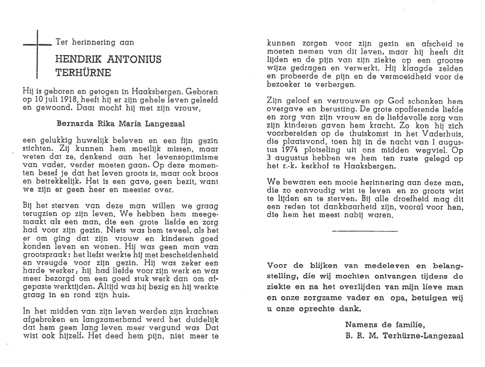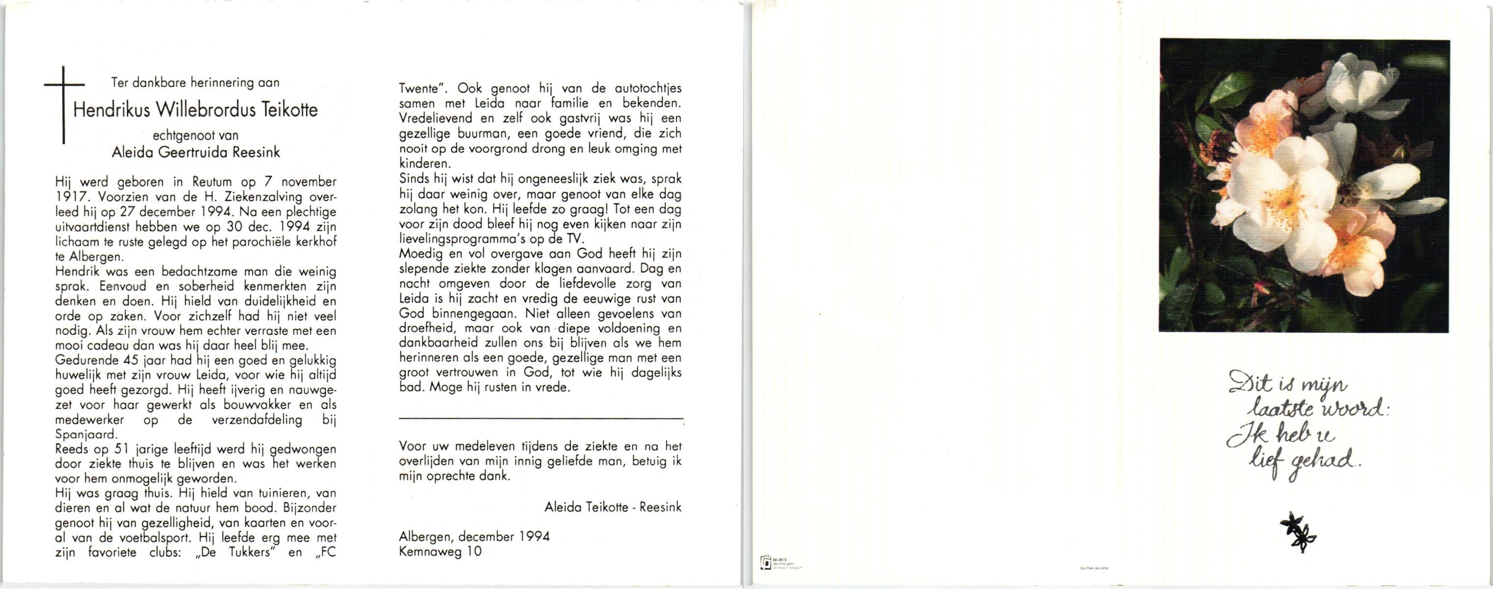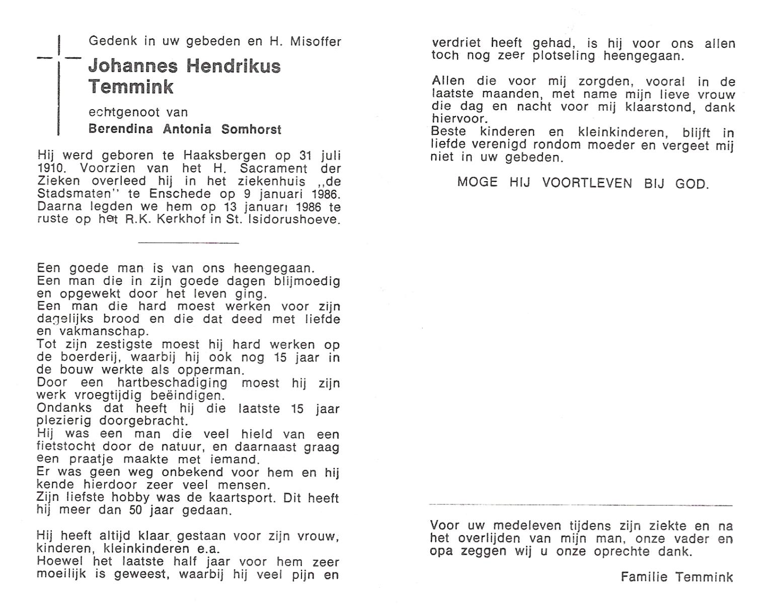 TIEHUIS, Hermanus Johannes, geboren op 5-2-1916 te Denekamp, overleden op 12-1-1990 op 73-jarige leeftijd, gecremeerd op 16-1-1990 te Usselo.
