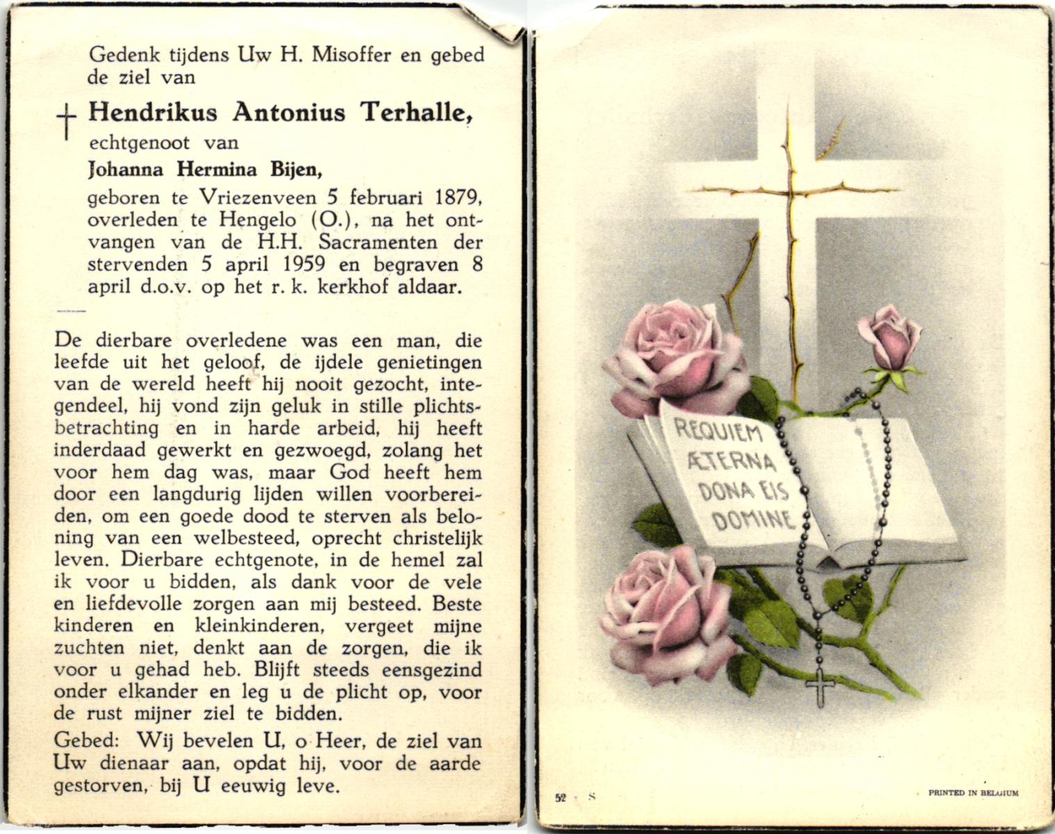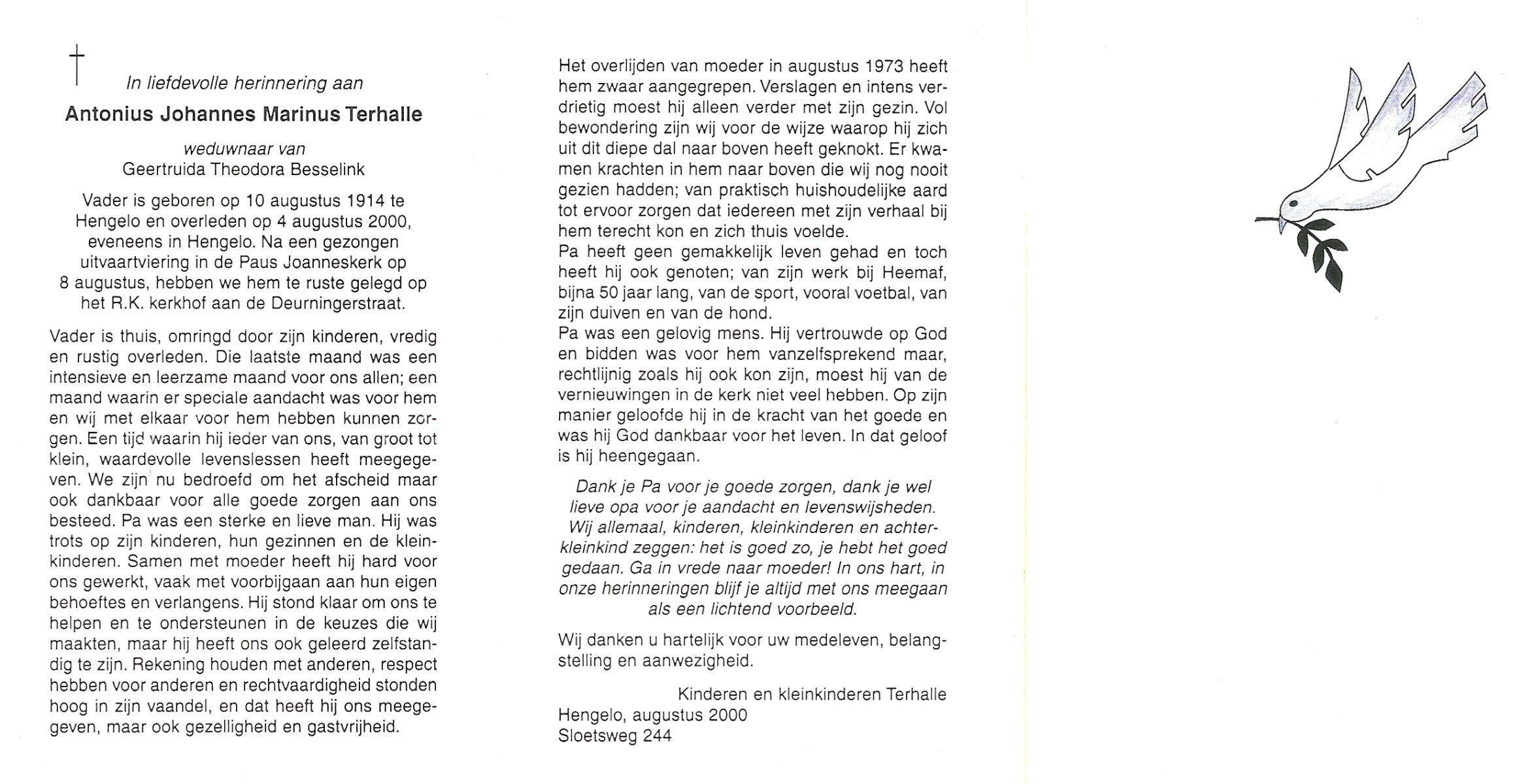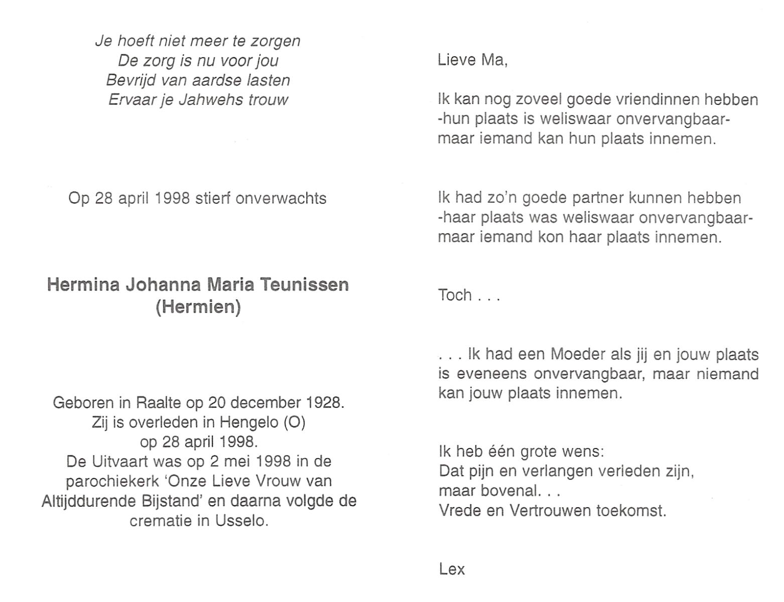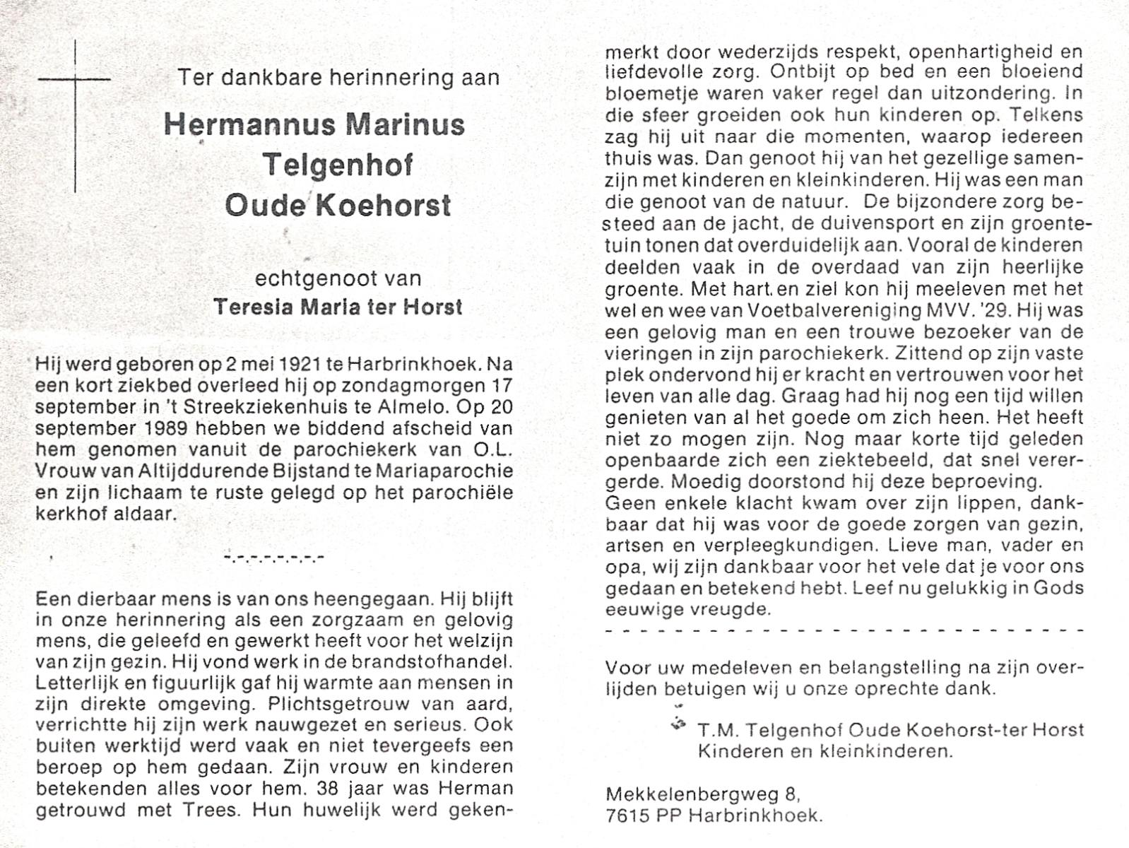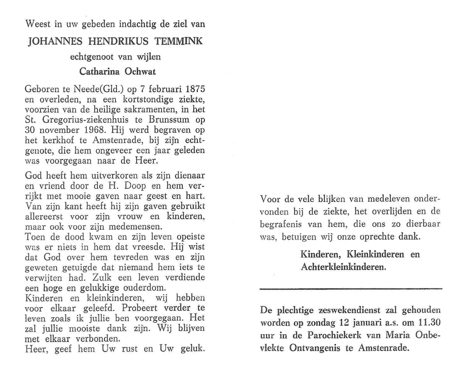 TIEHUIS, Hermanus Johannes, geboren op 5-2-1916 te Denekamp, overleden op 12-1-1990 op 73-jarige leeftijd, gecremeerd op 16-1-1990 te Usselo.