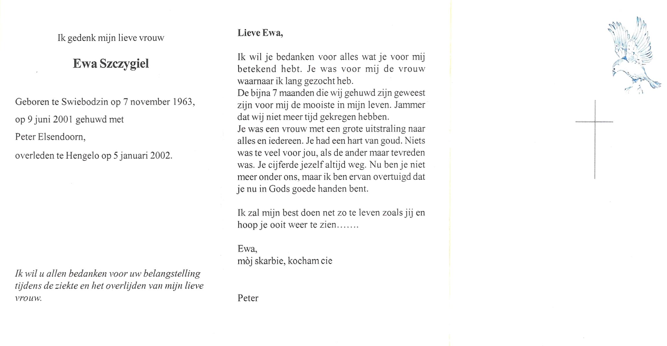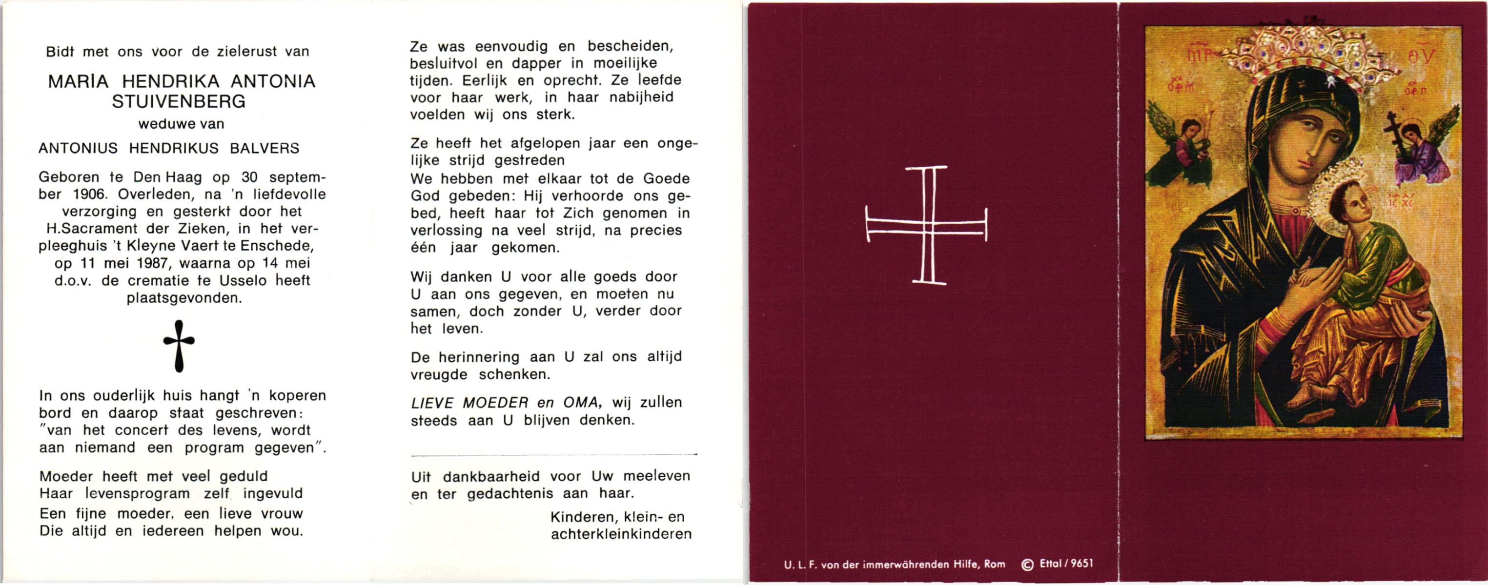 STOKKUM, van, Els, geboren op 14-6-1936 te Vlijmen, overleden op 25-11-1985 te Hengelo op 49-jarige leeftijd, gecremeerd op 28-11-1985 te Usselo.
