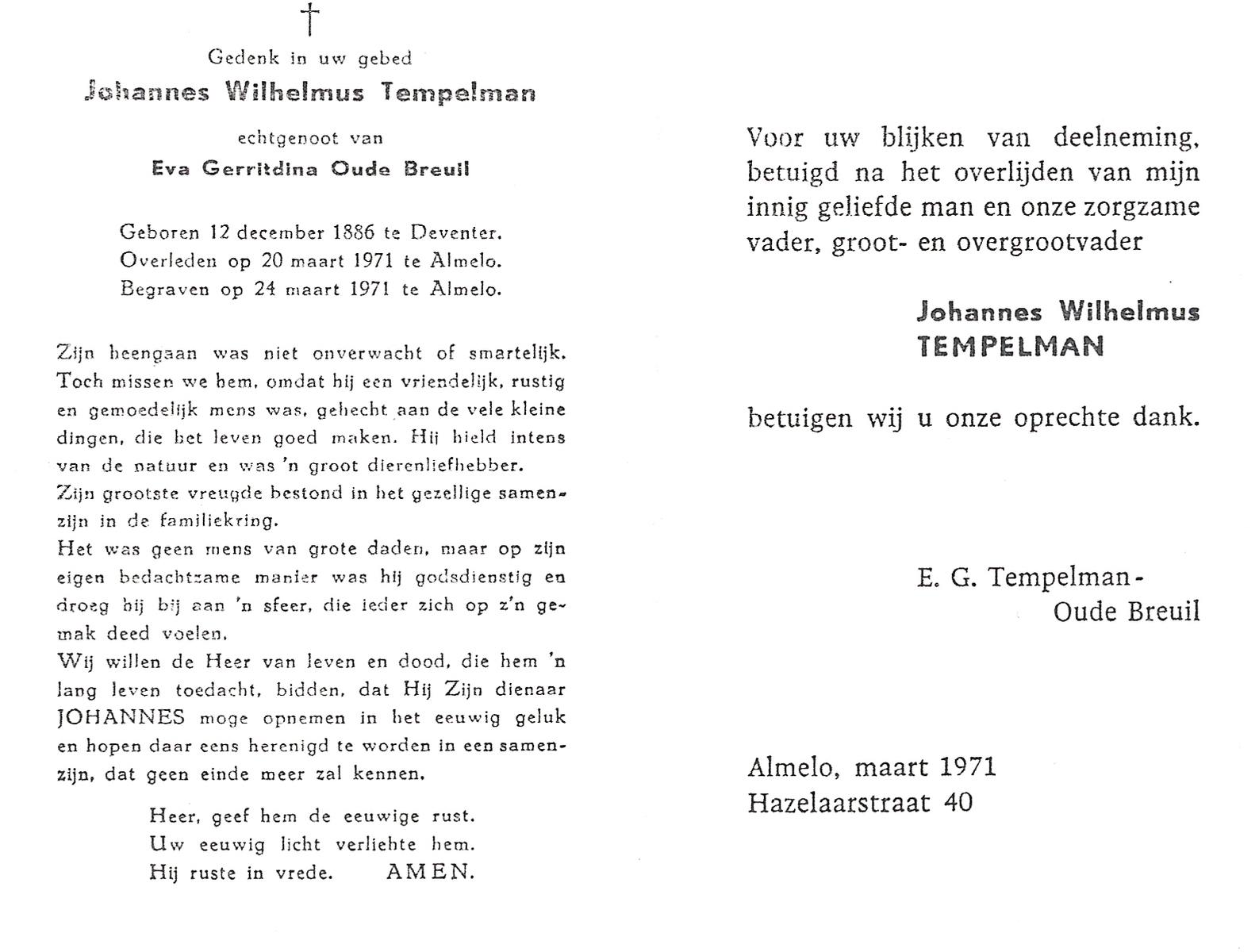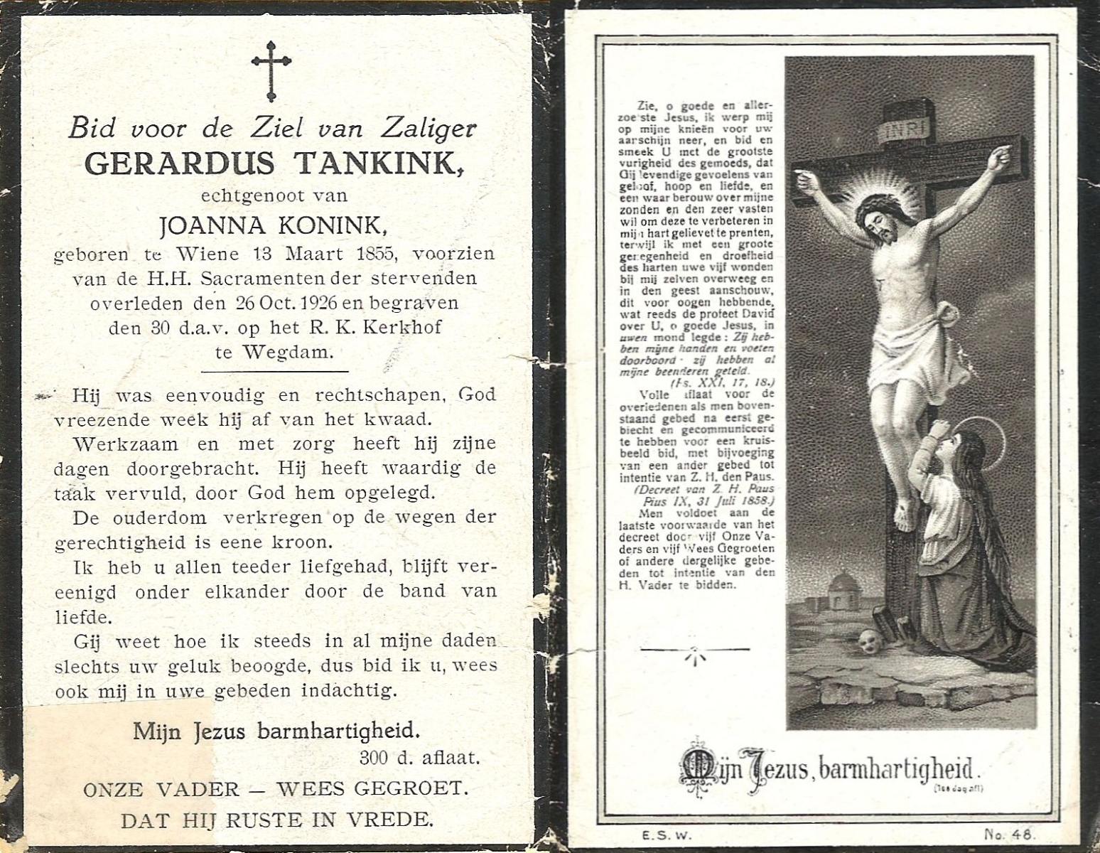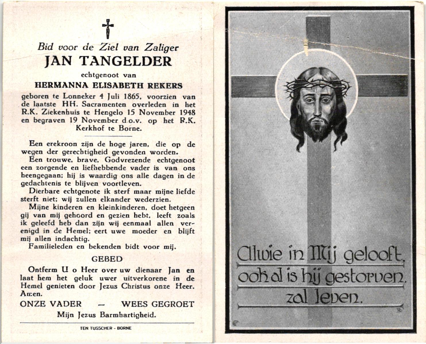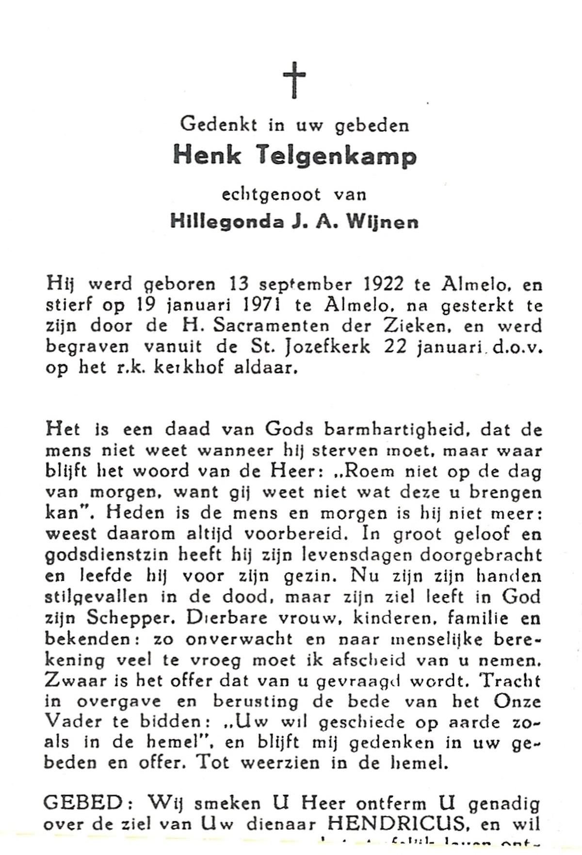 TIEHUIS, Jan Hendrik, geboren op 10-12-1899 te Tubbergen, overleden op 13-12-1976 te Hengelo (Ov.) op 77-jarige leeftijd, begraven op 17-12-1976 te Hengelo (Ov.).