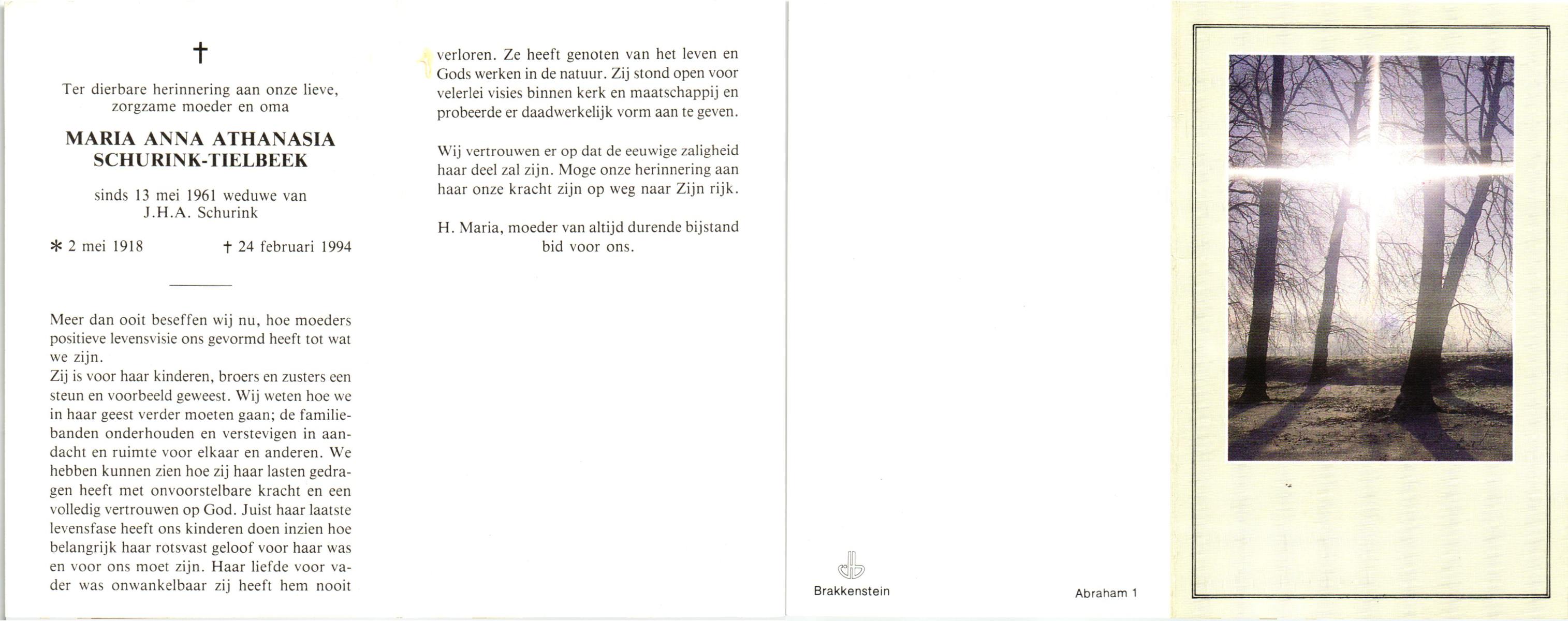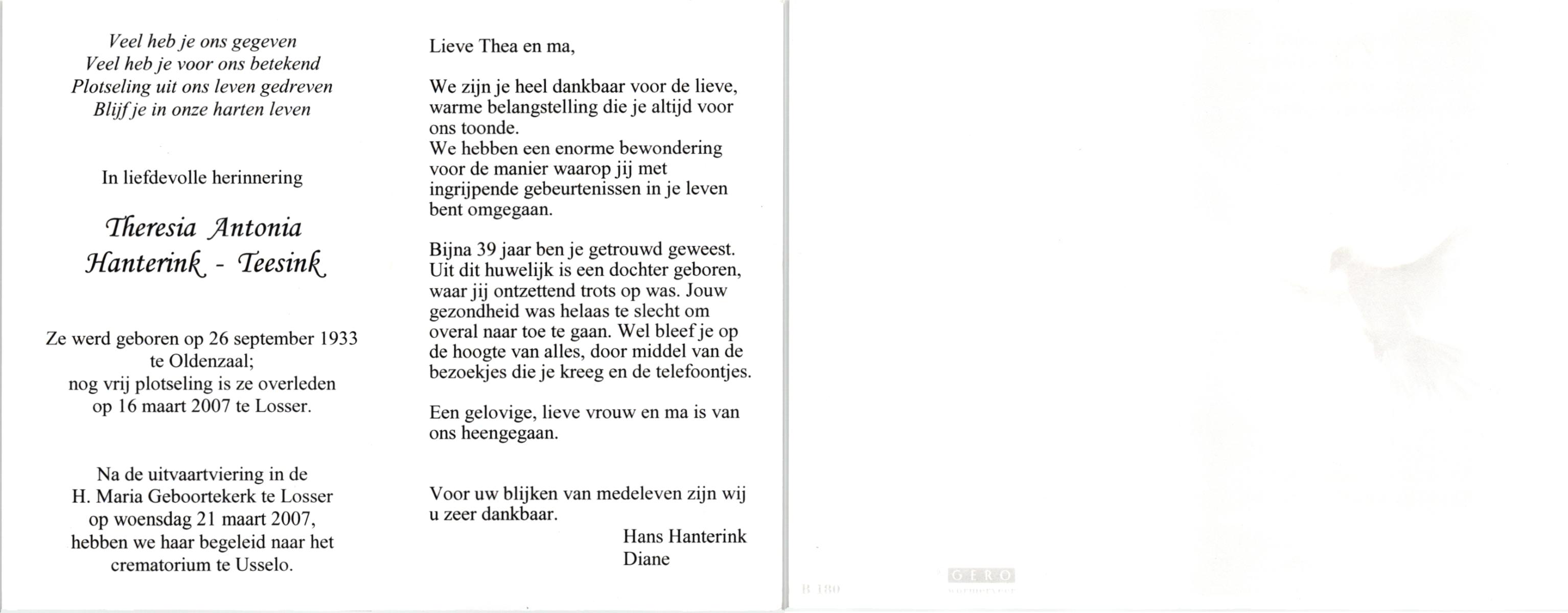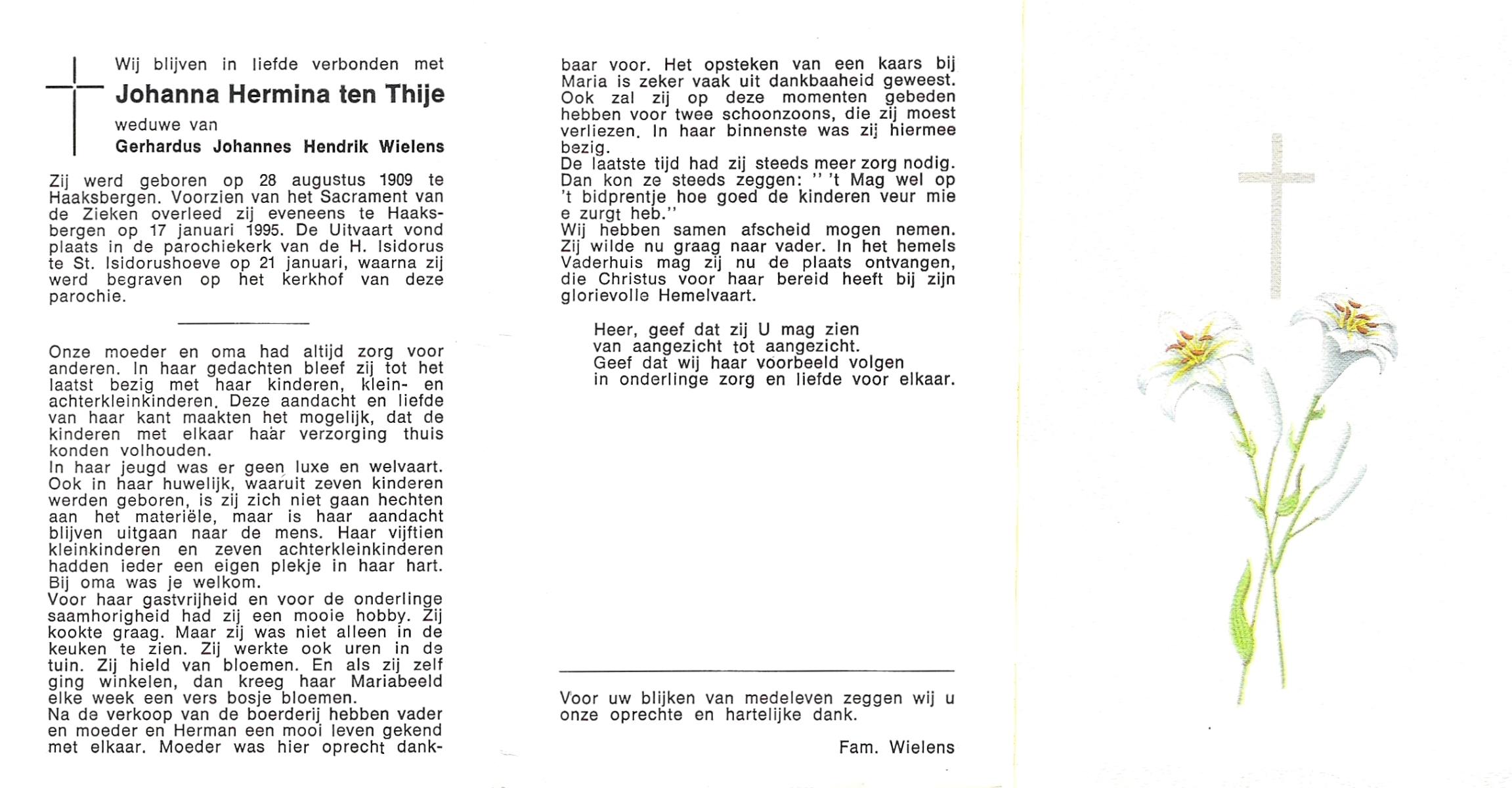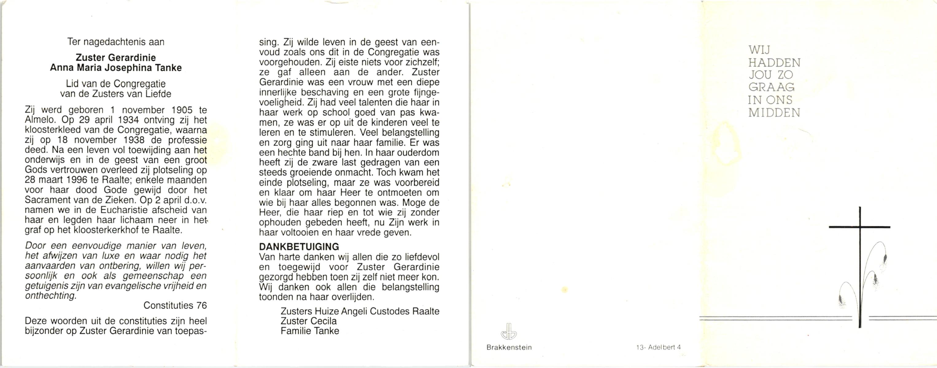 TIETHOF, Anna Geertruida, geboren op 29-8-1909 te Hengelo (O), overleden op 17-11-1989 te Haaksbergen op 80-jarige leeftijd, begraven op 22-11-1989 te Hengelo (Ov.).