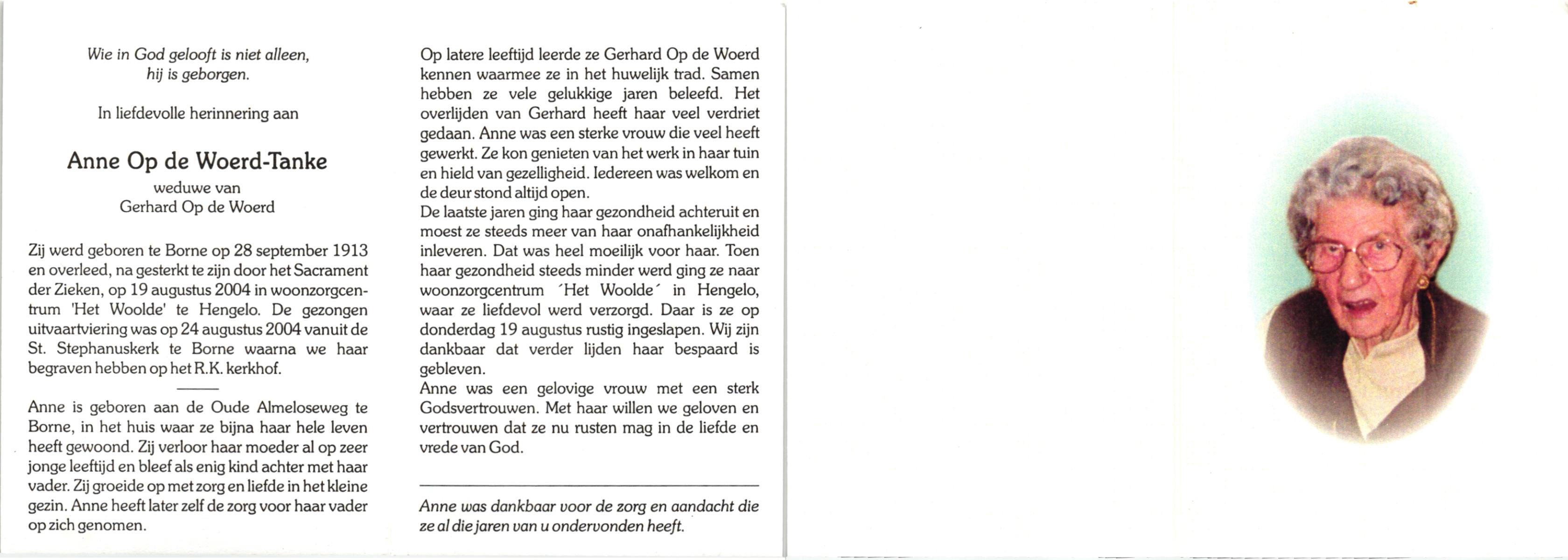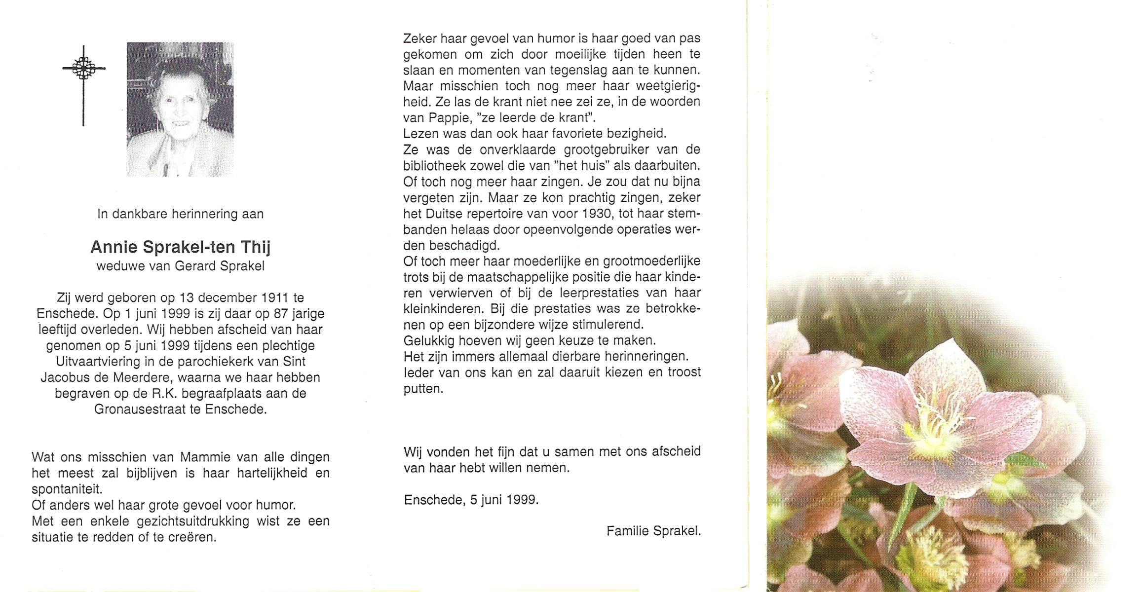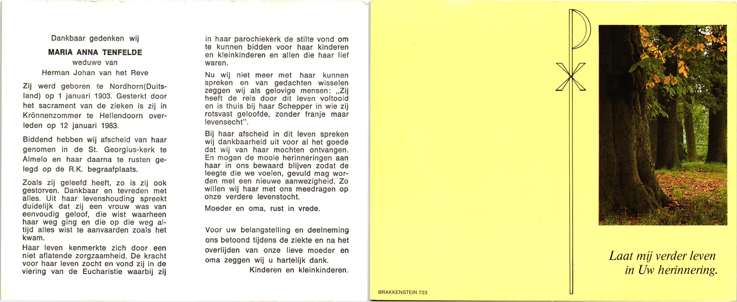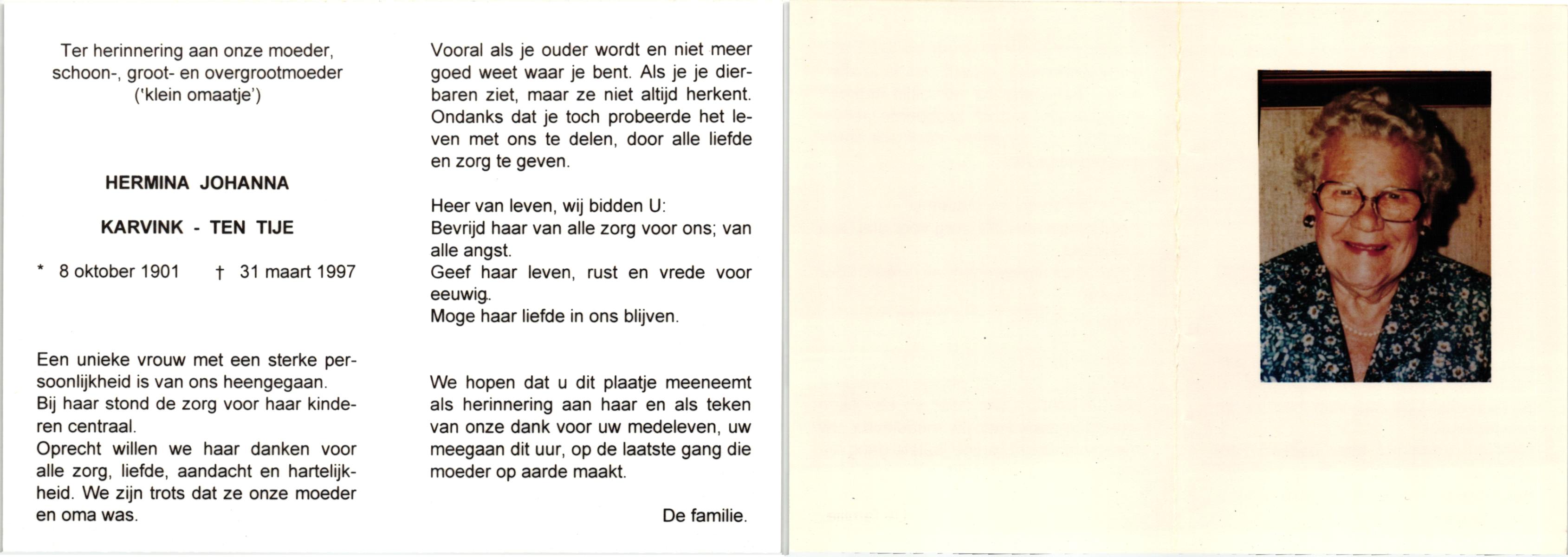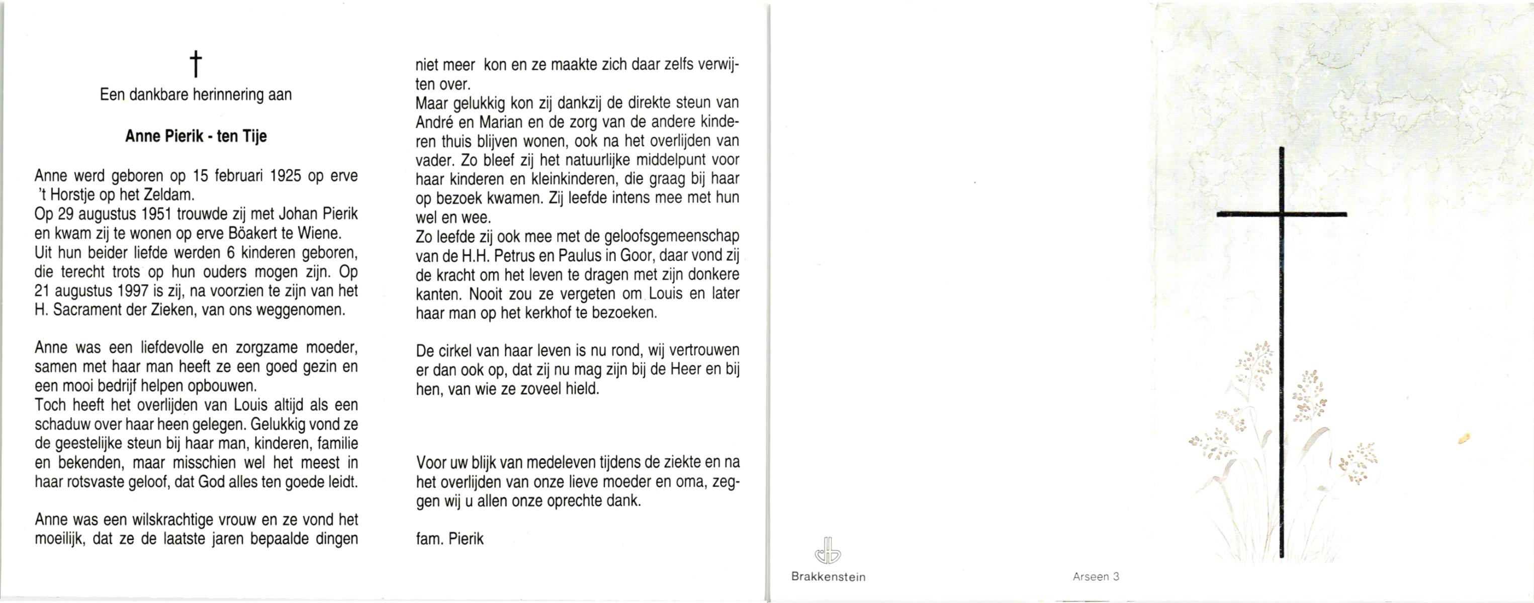 TIJE, ten, Anne, geboren op 15-2-1925 te Zeldam, overleden op 21-8-1997 op 72-jarige leeftijd.