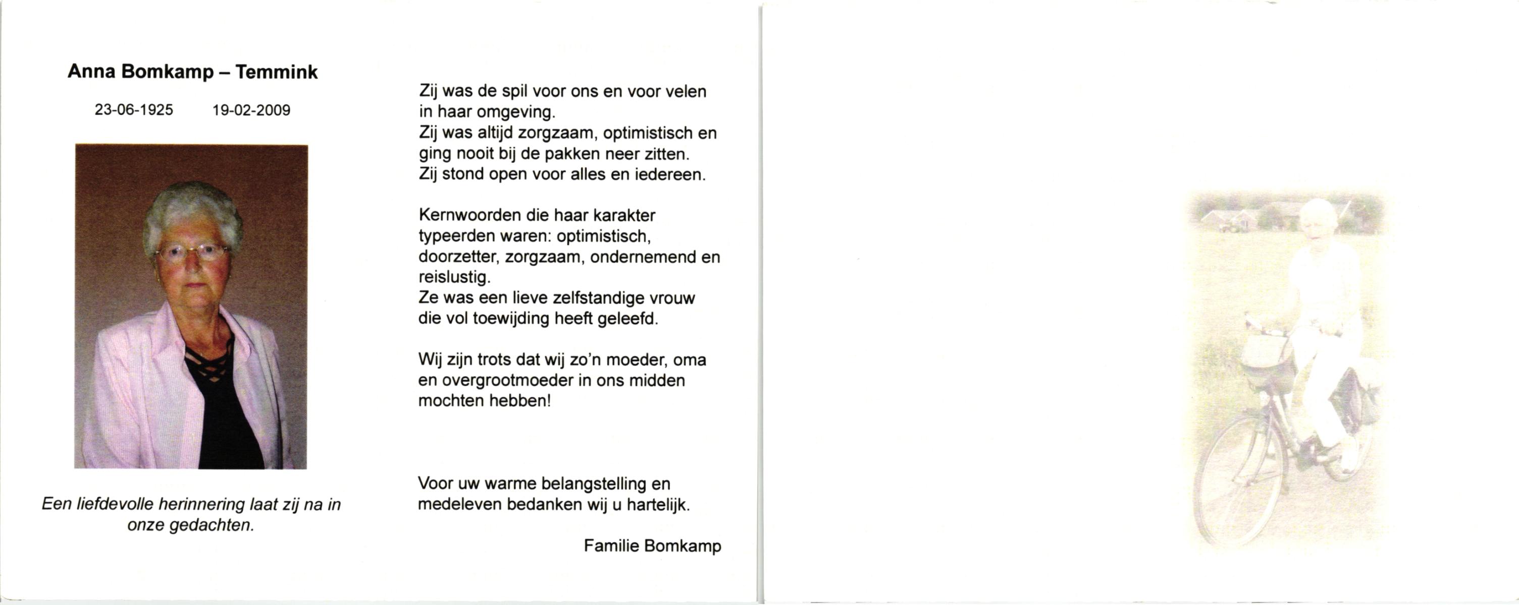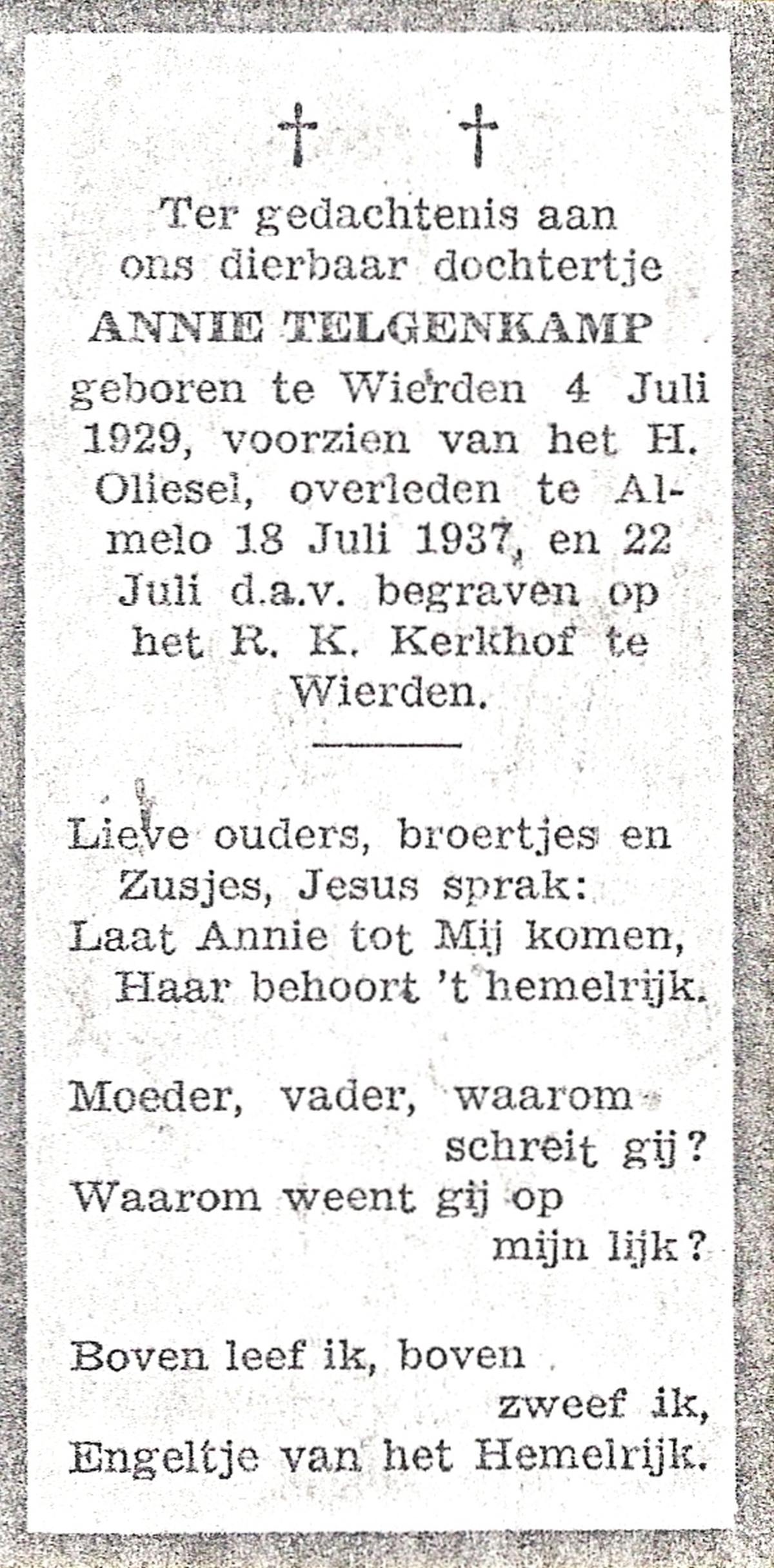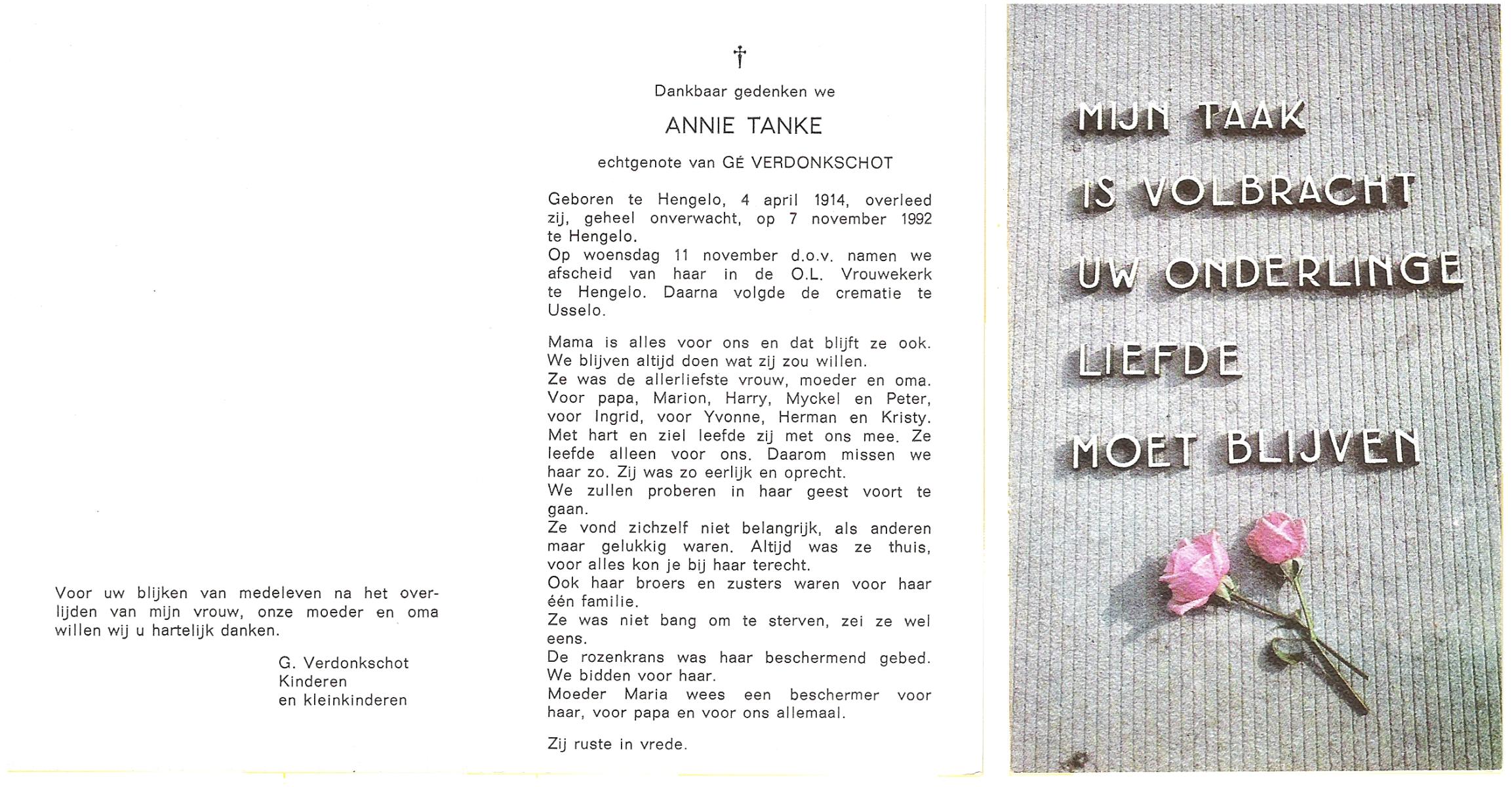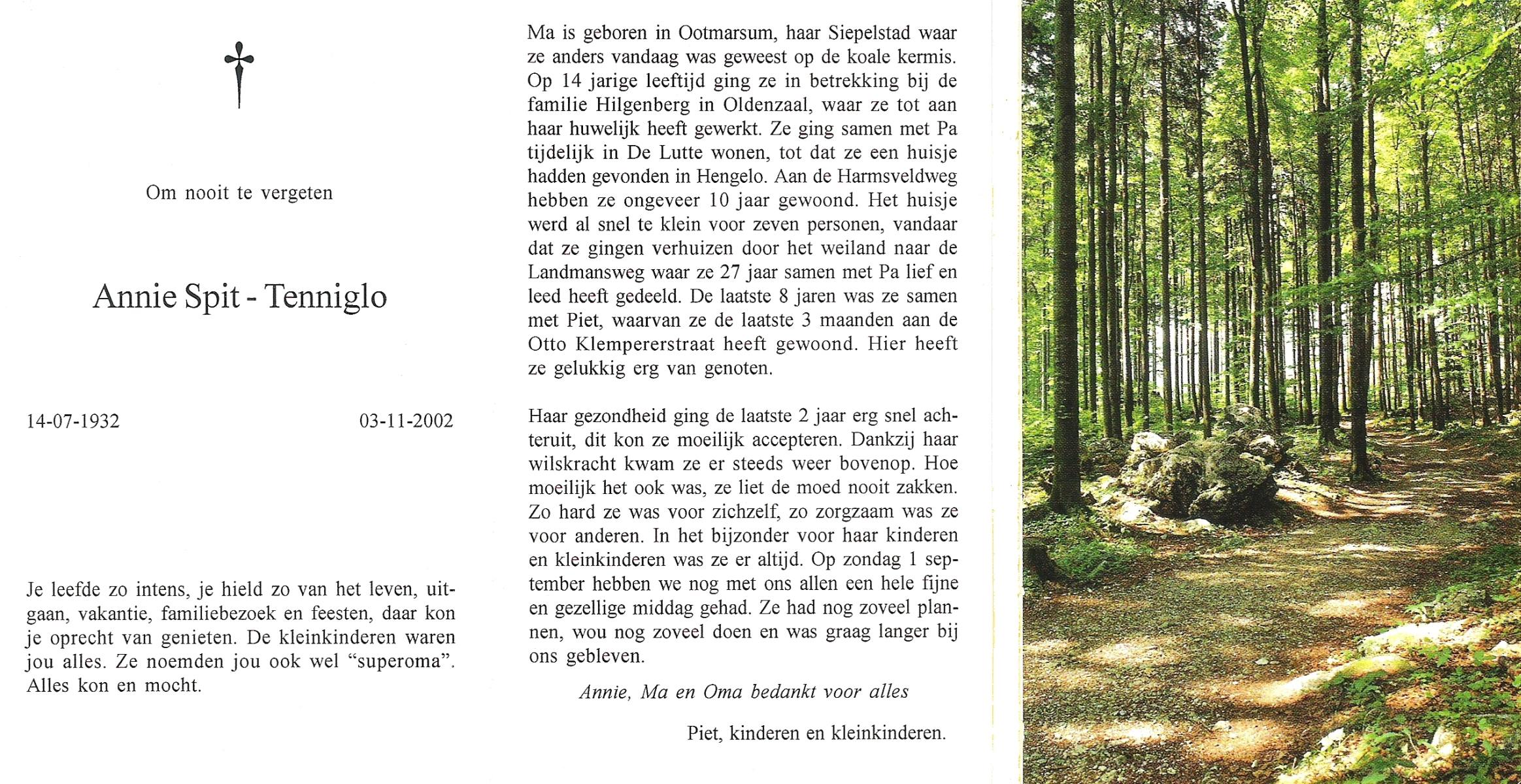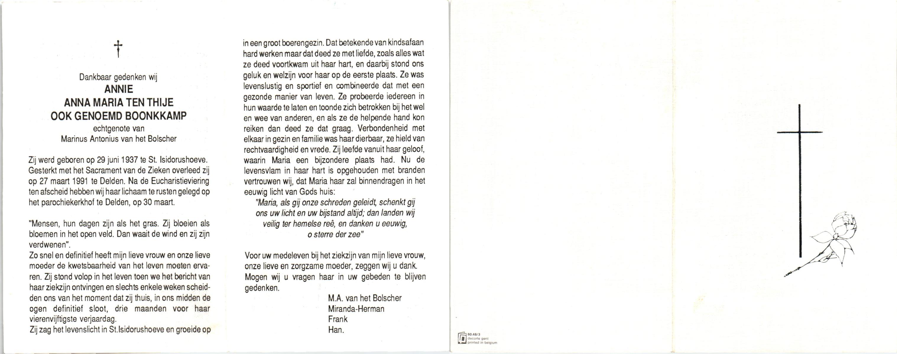 TIJE, ten, Anne, geboren op 15-2-1925 te Zeldam, overleden op 21-8-1997 op 72-jarige leeftijd.
