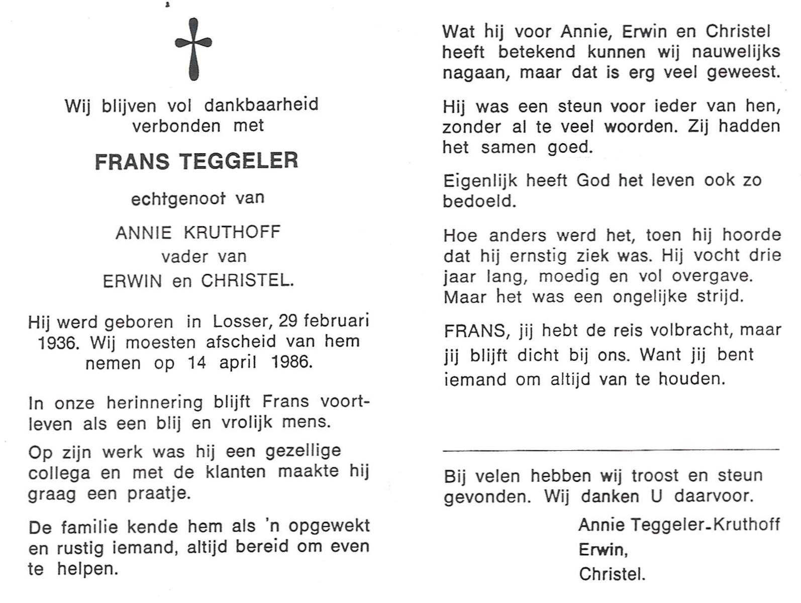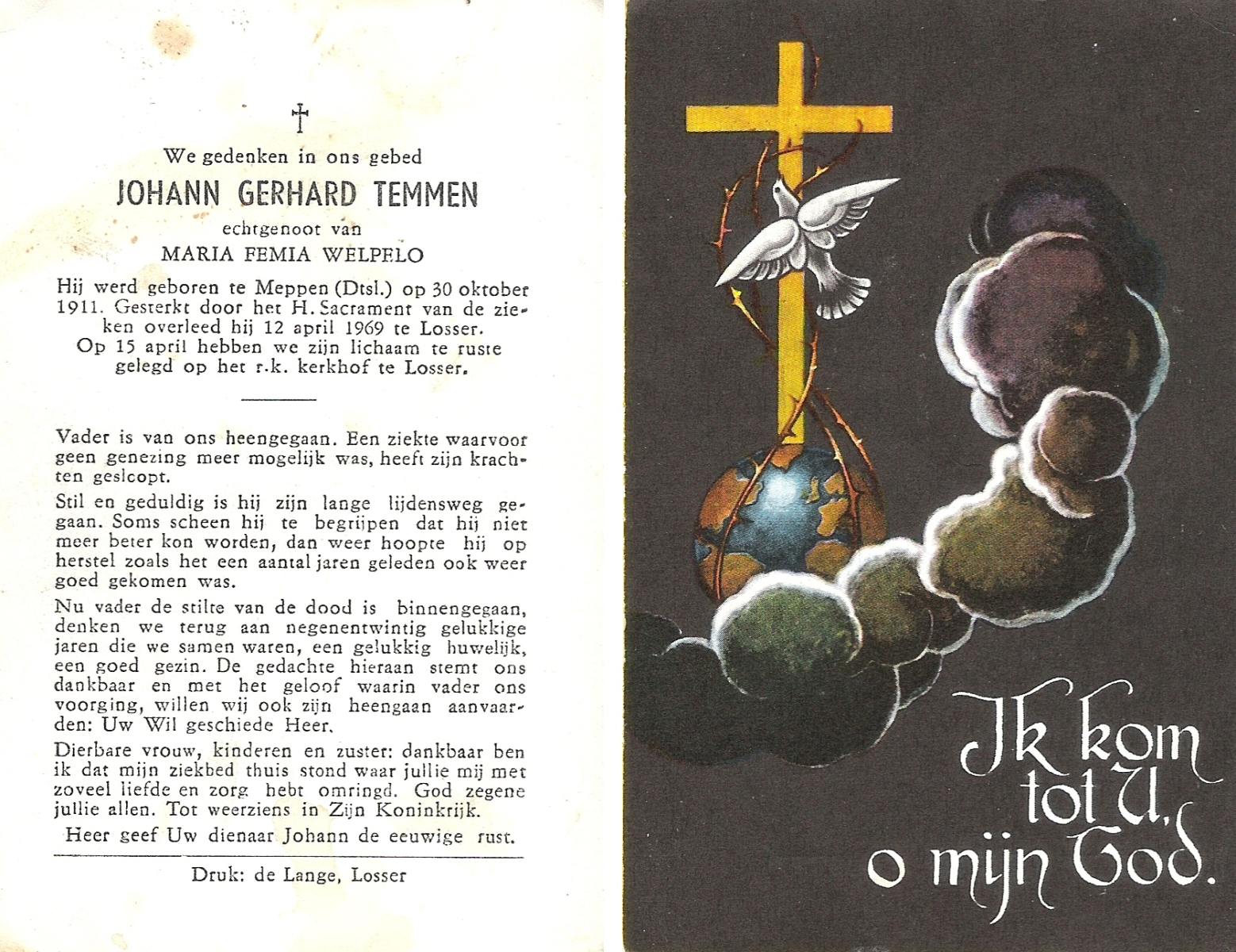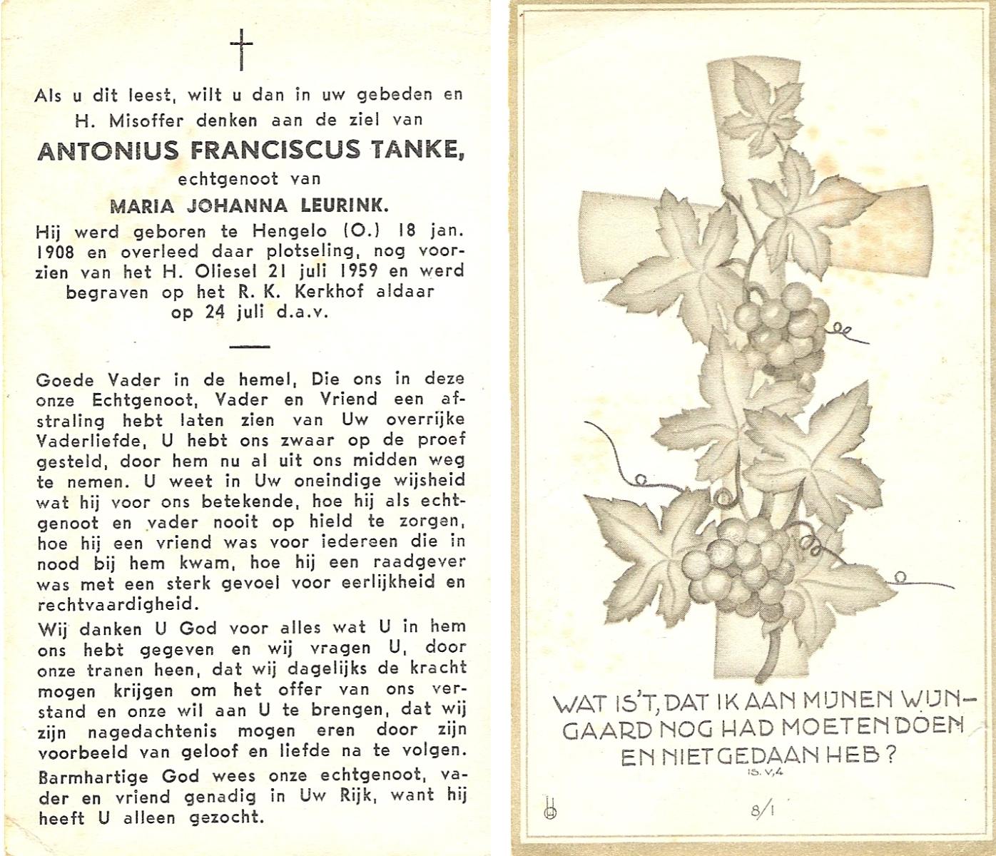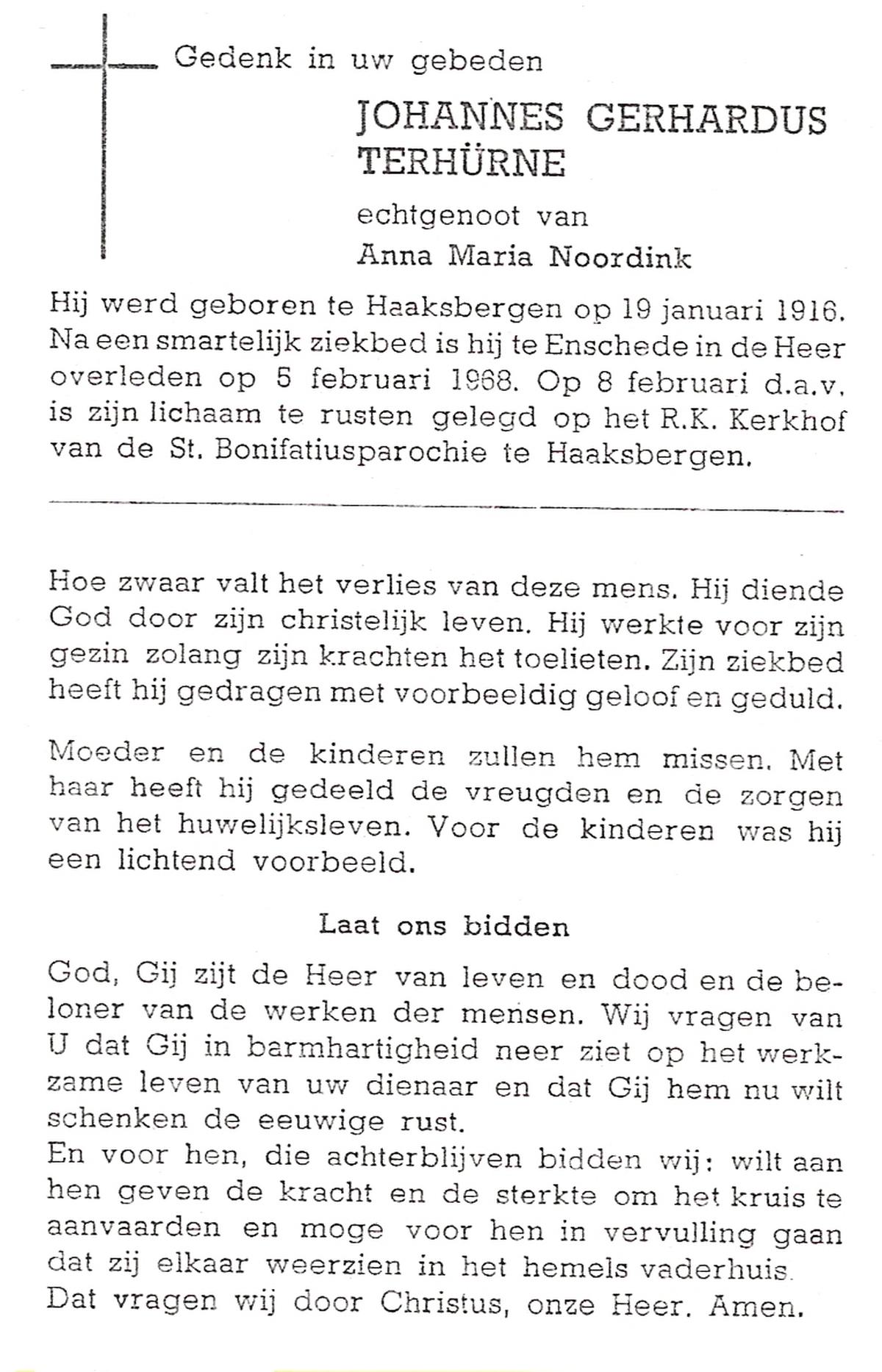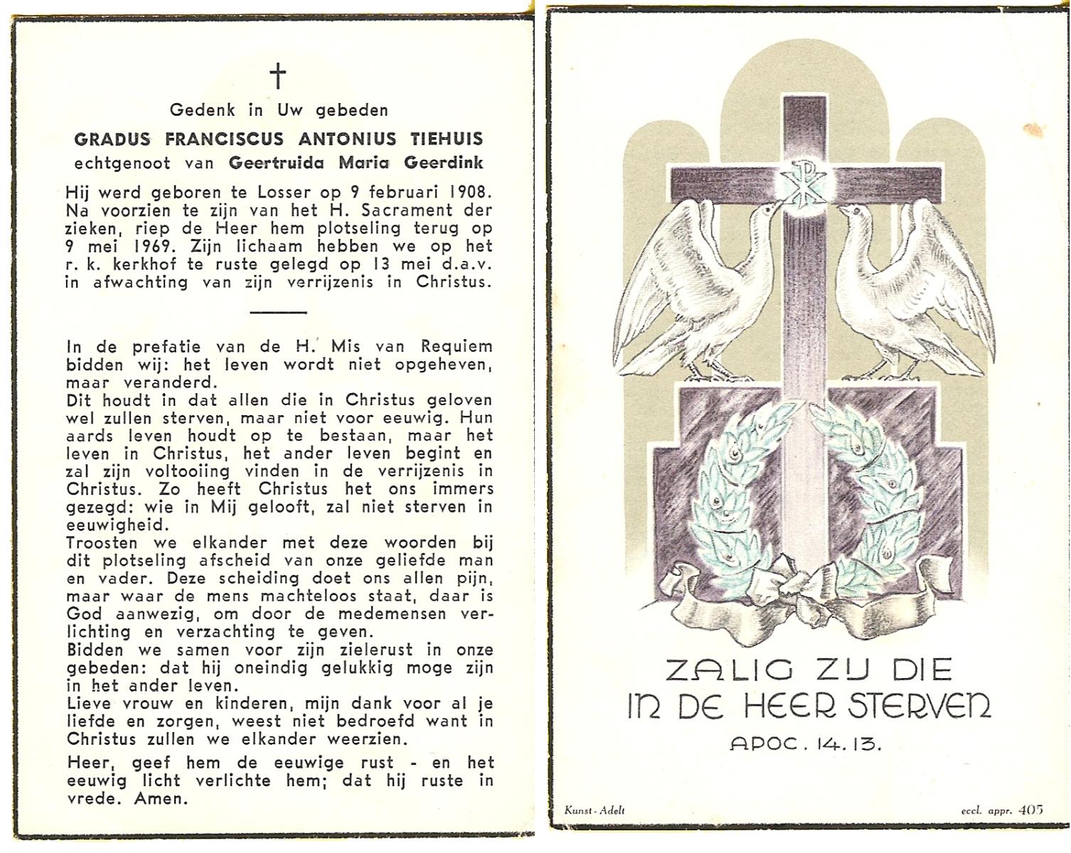 TIEHUIS, Gradus Franciscus Antonius, geboren op 9-2-1908 te Losser, overleden op 9-5-1969 op 61-jarige leeftijd, begraven op 13-5-1969 te Losser.
