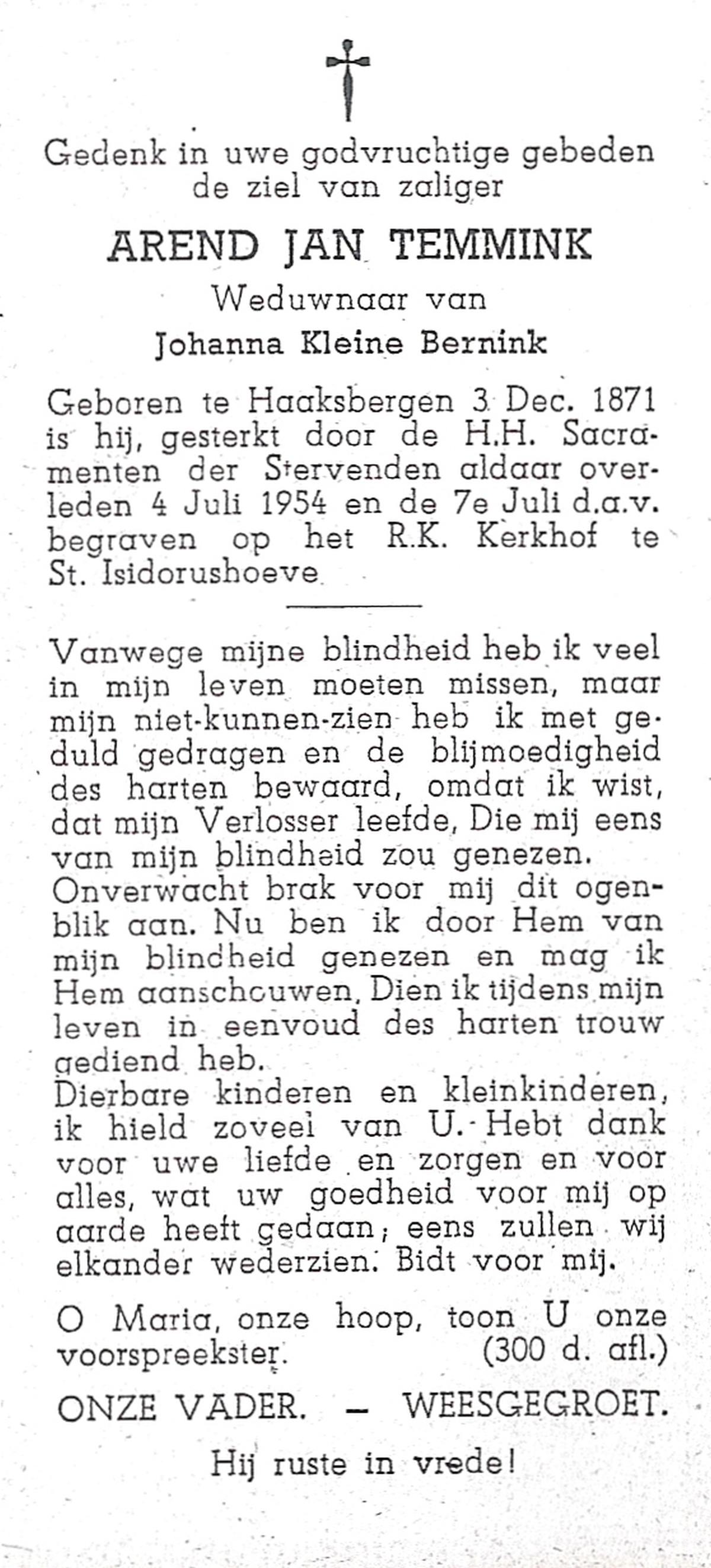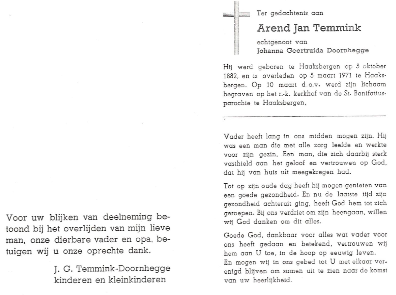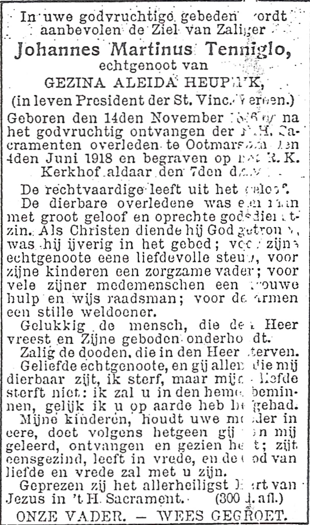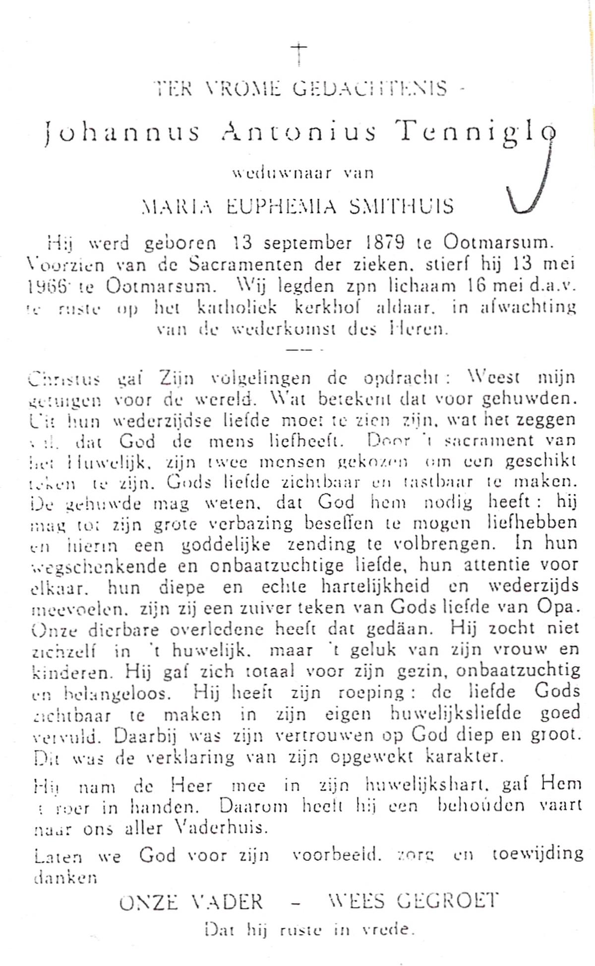 TIJE, ten, Hendrik Jan, geboren op 21-07-1890 te Markelo, overleden op 17-9-1967 te Delden, Ambt op 77-jarige leeftijd, begraven op 21-9-1967 te Goor.