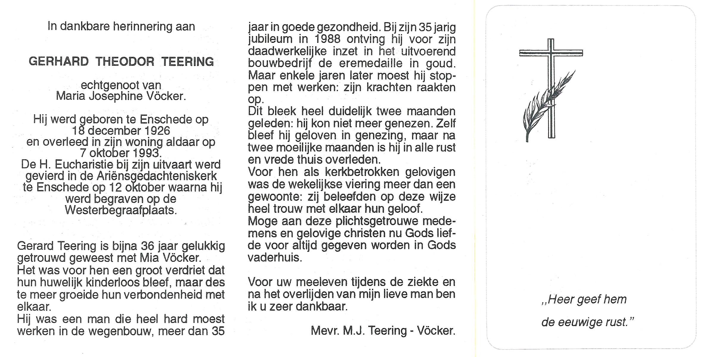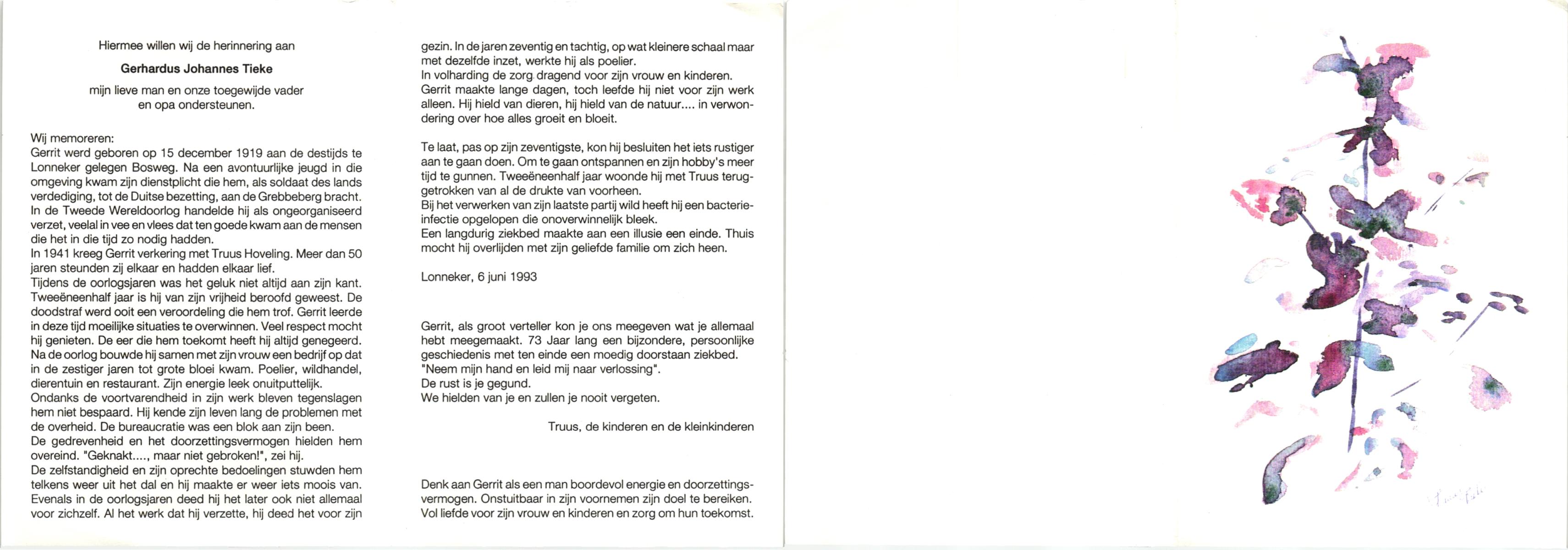 TIEKE, , Gerhardus Johannes, geboren op 15-12-1919 te Lonneker, overleden op 6-6-1993 te Lonneker op 73-jarige leeftijd.