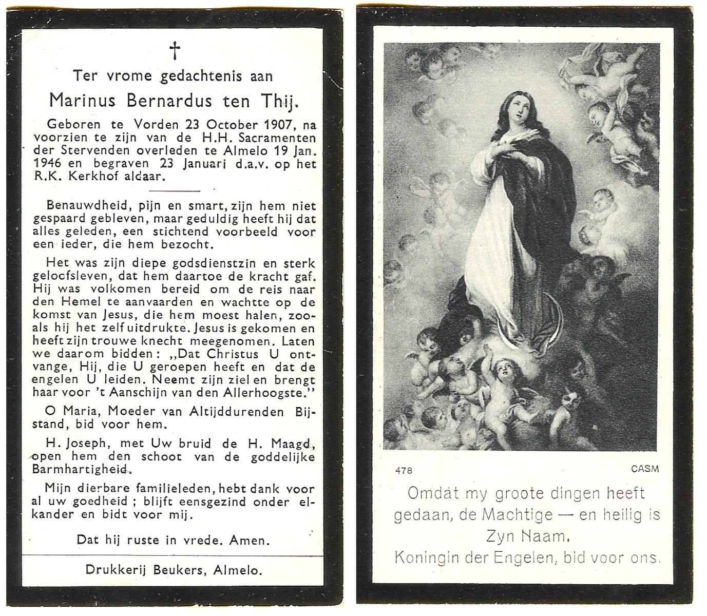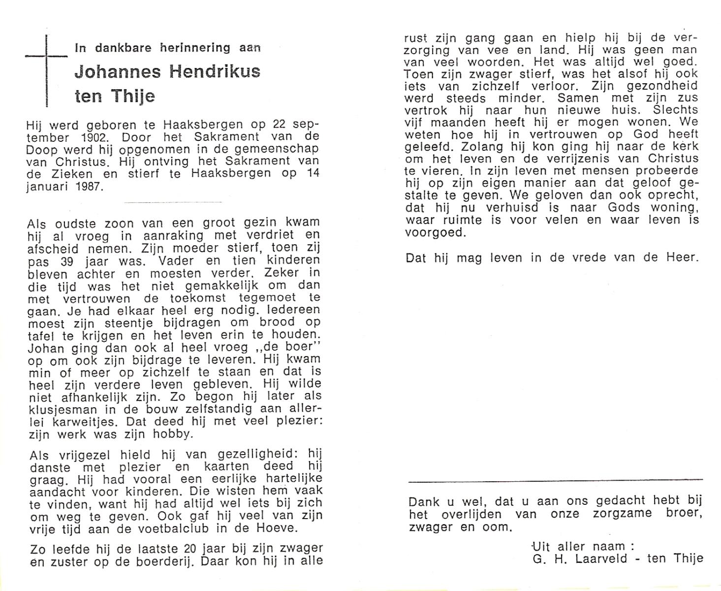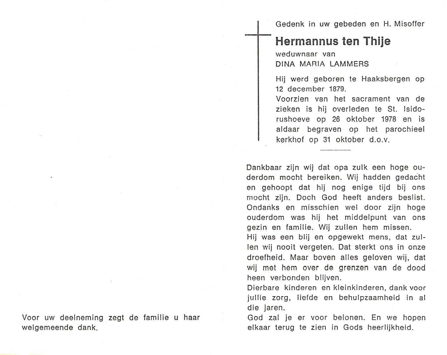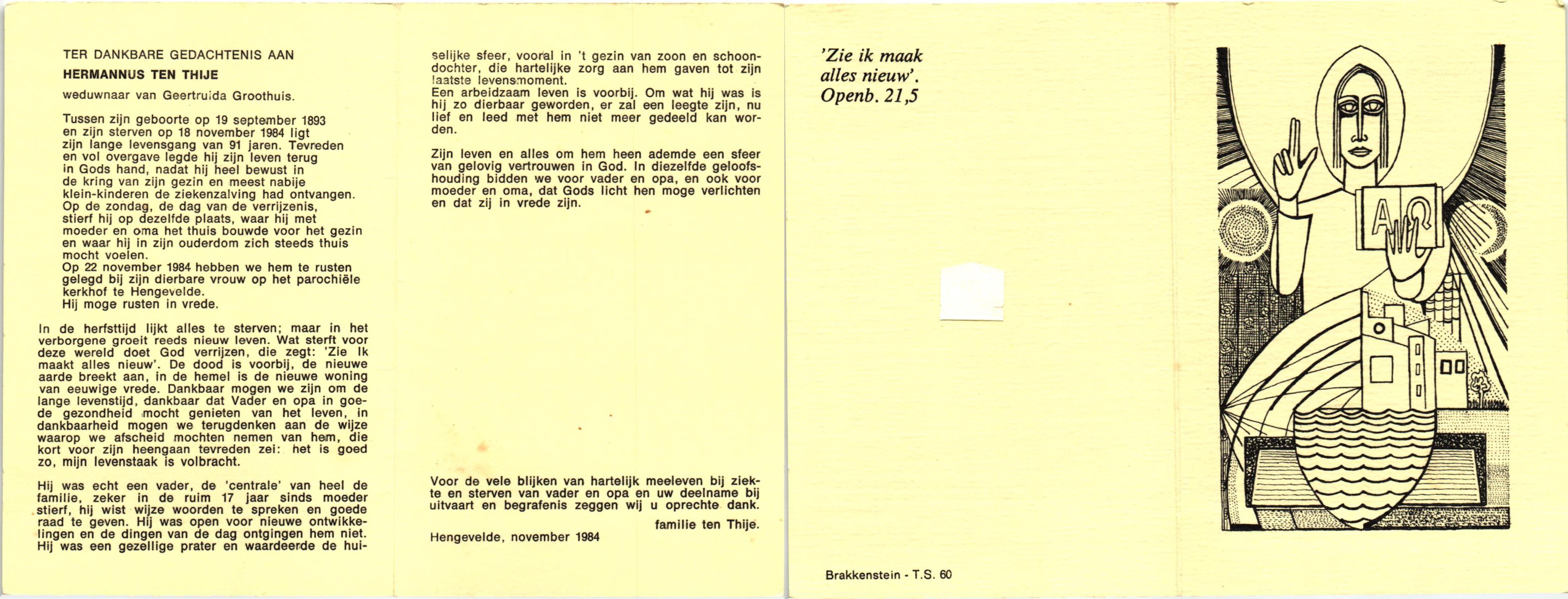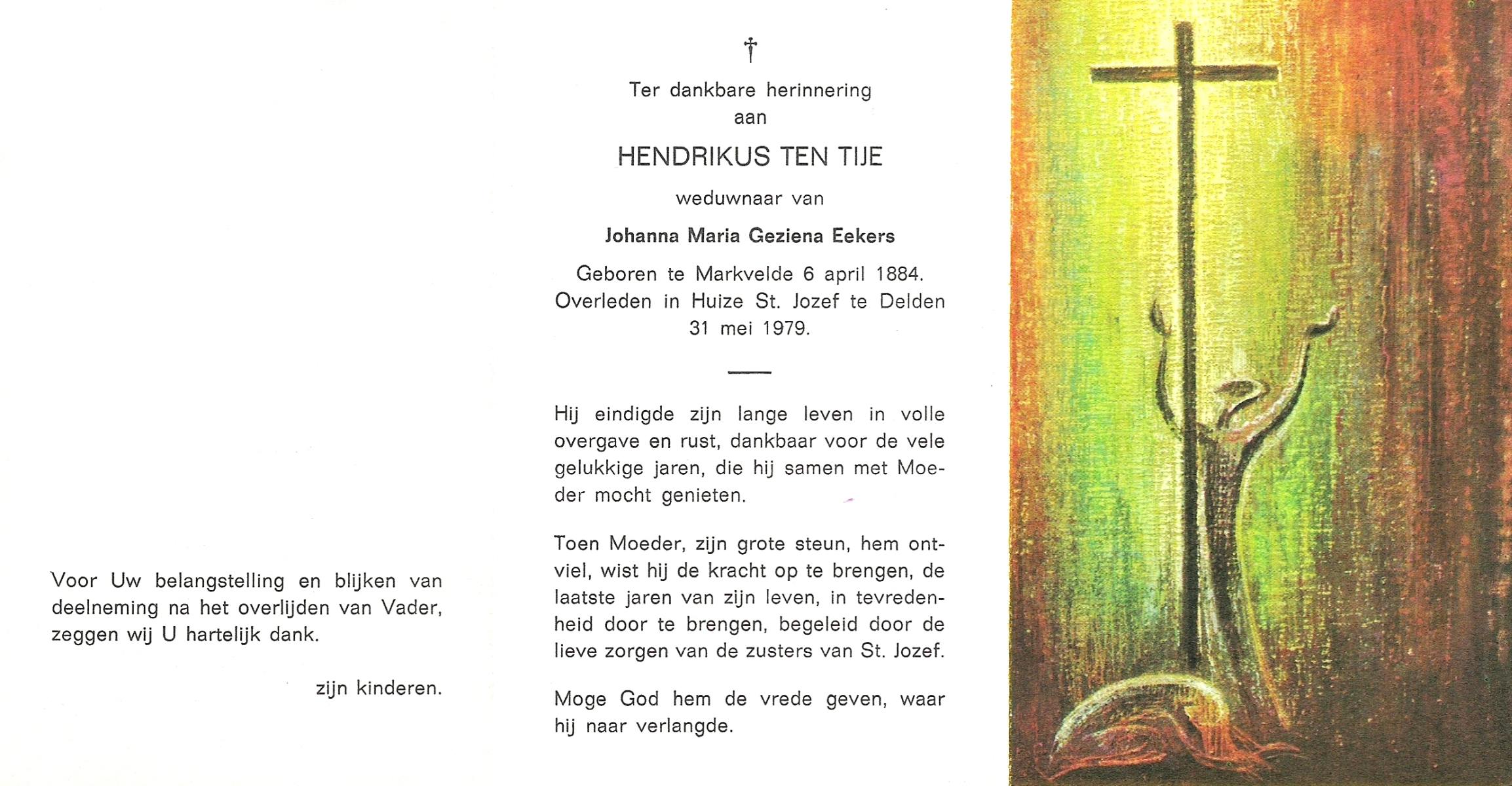TIJE, ten, Hendrikus, geboren op 06-04-1884 te Markvelde, overleden op 31-5-1979 te Delden op 95-jarige leeftijd.