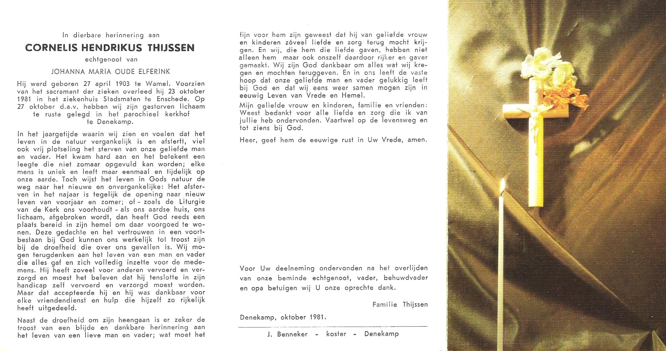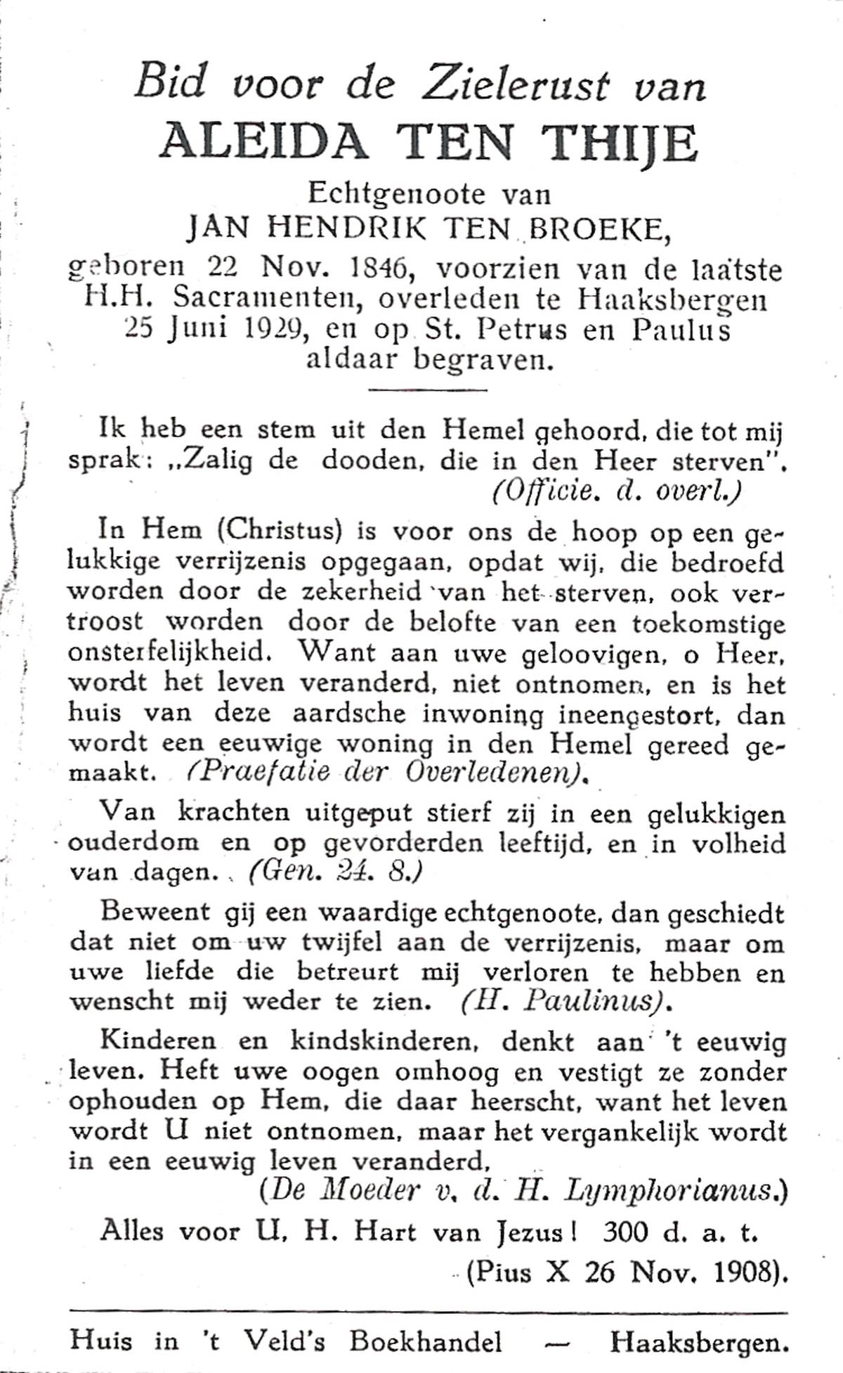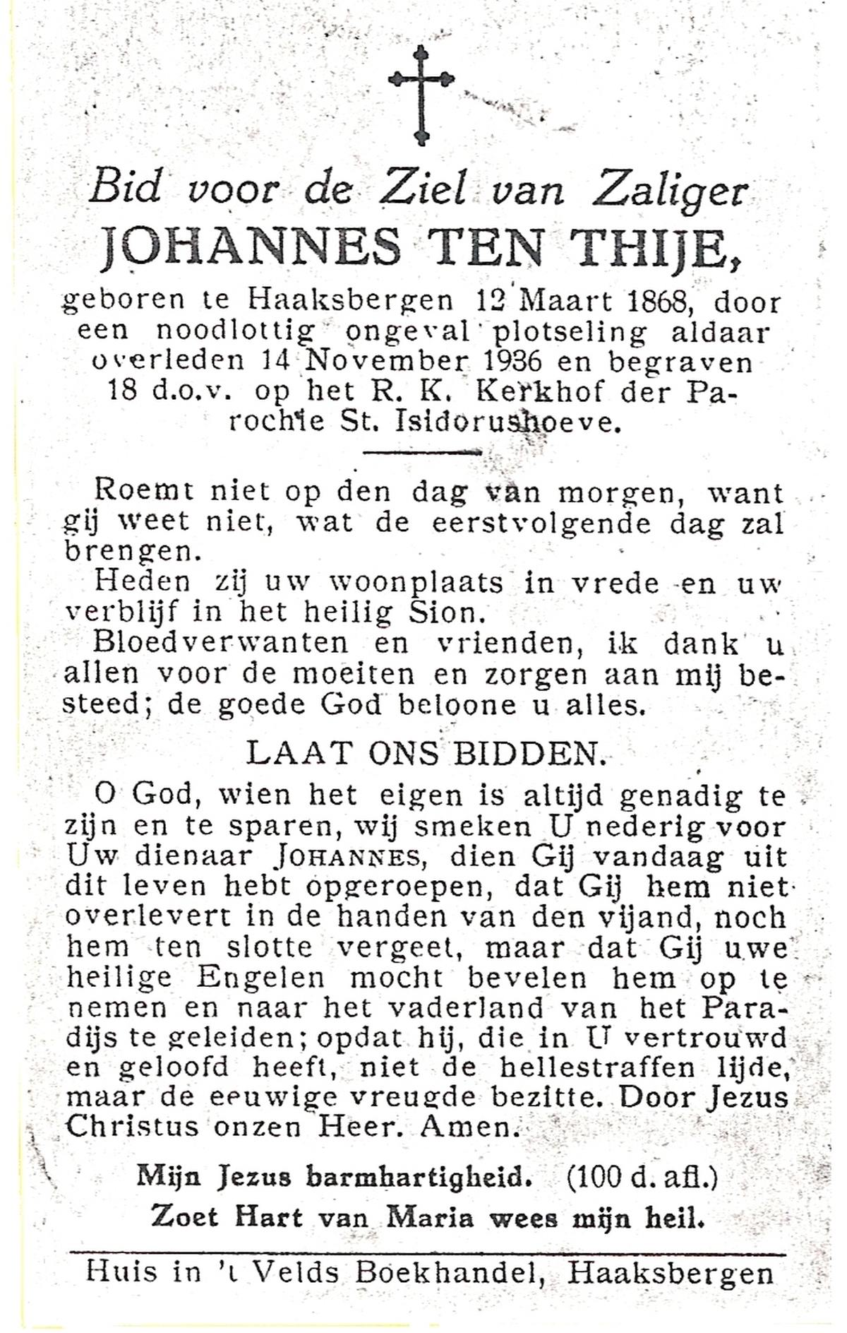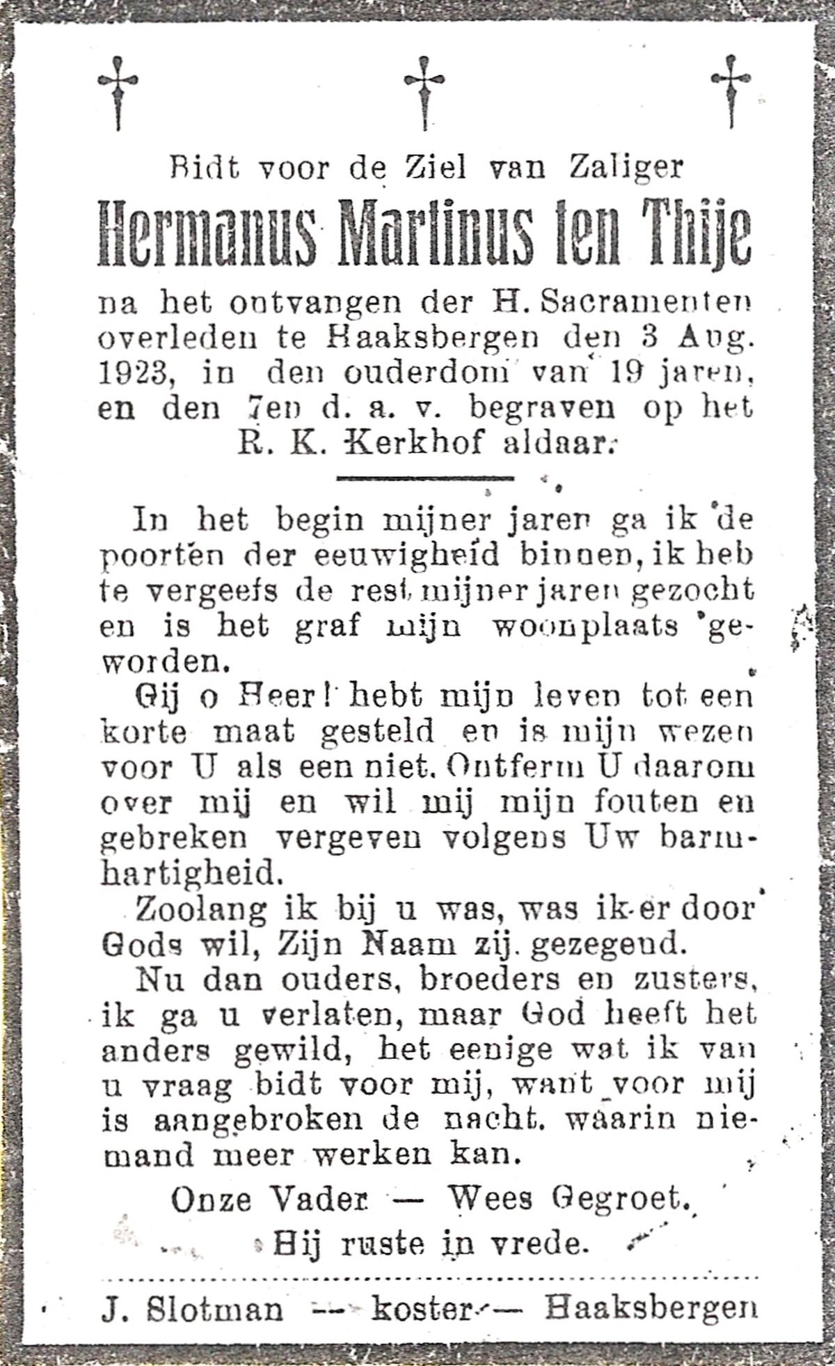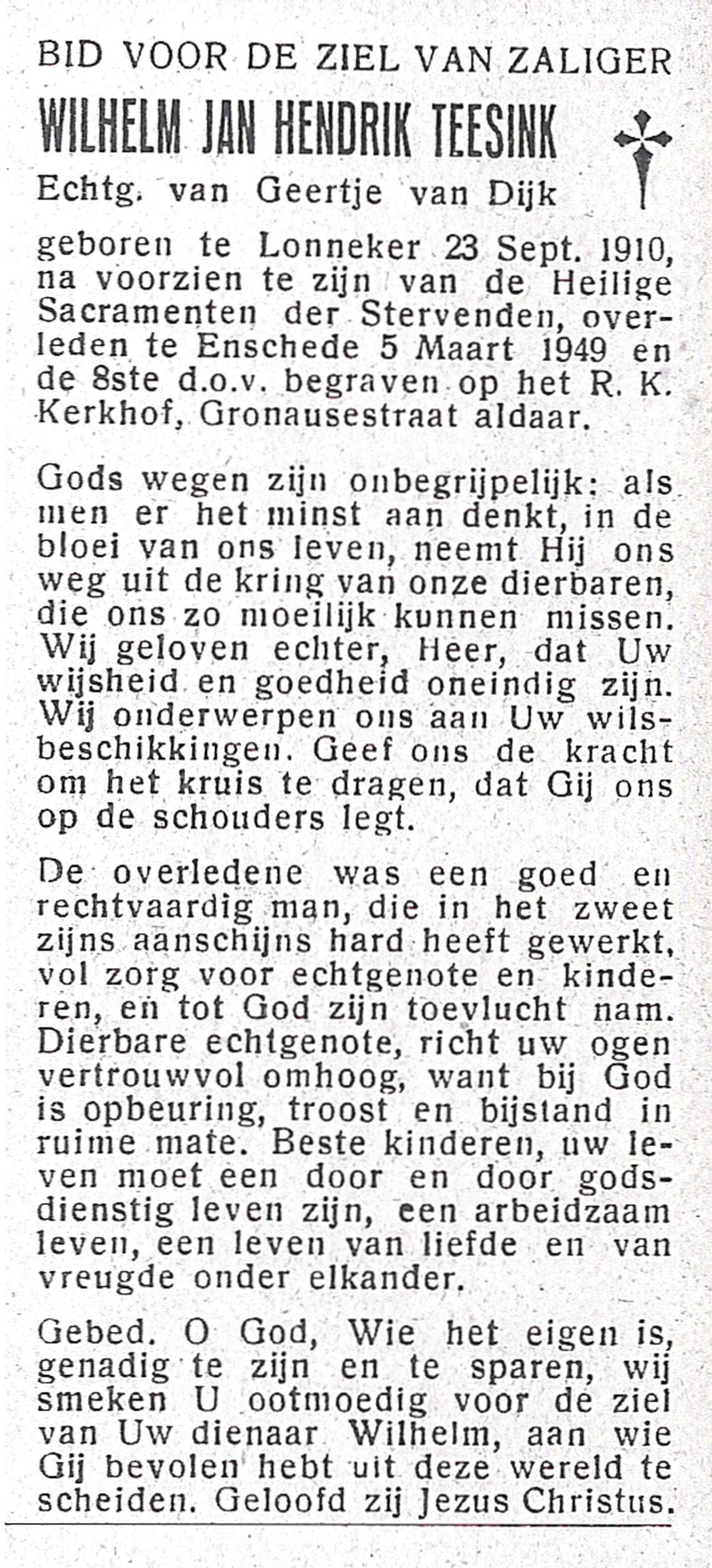 TIJE, ten, Hendrikus, geboren op 06-04-1884 te Markvelde, overleden op 31-5-1979 te Delden op 95-jarige leeftijd.