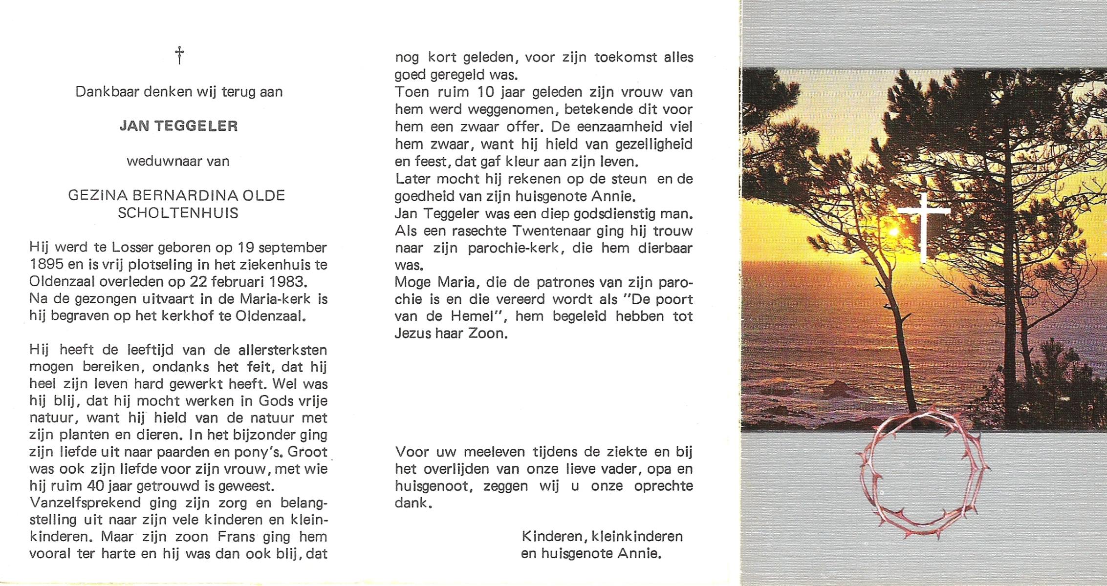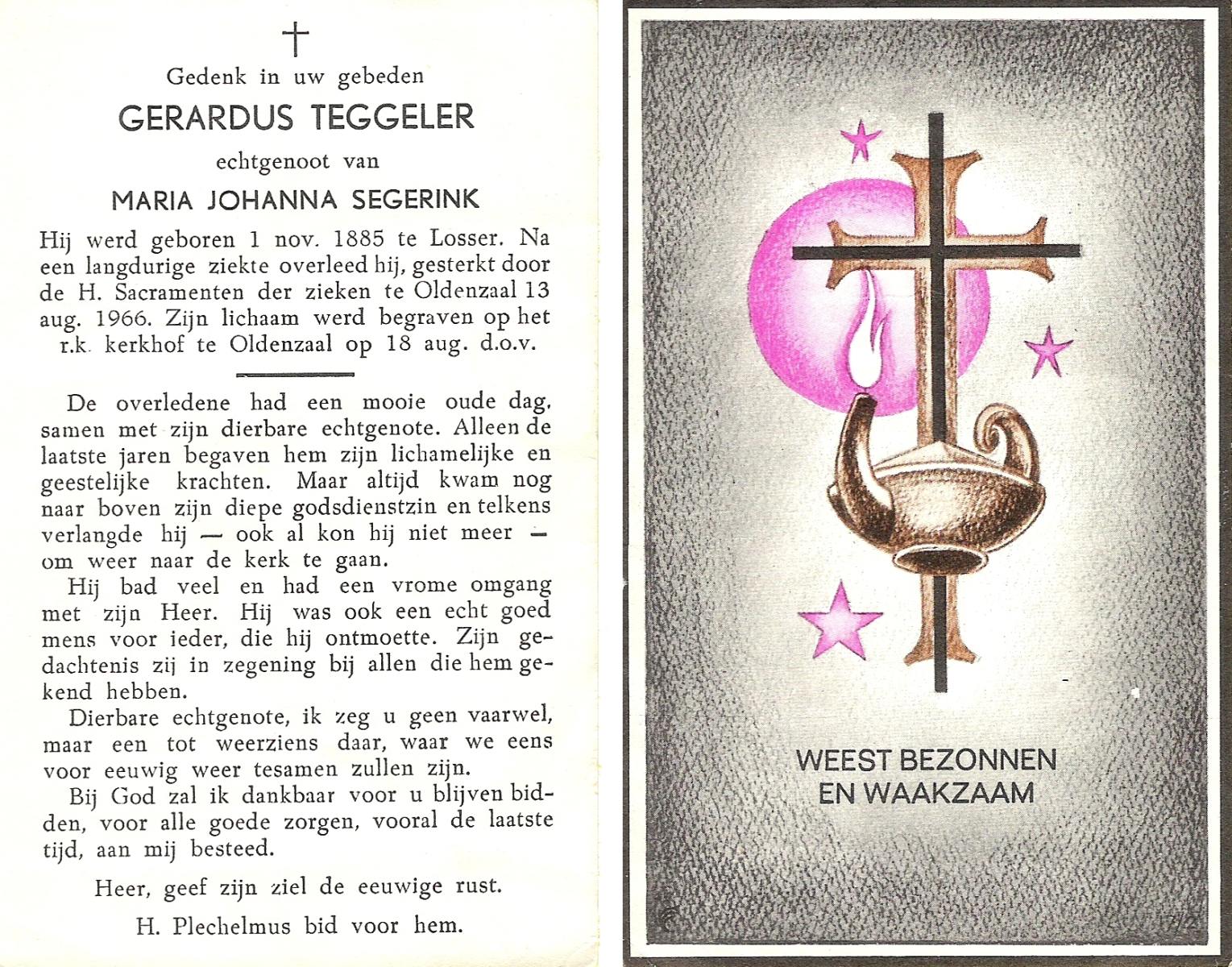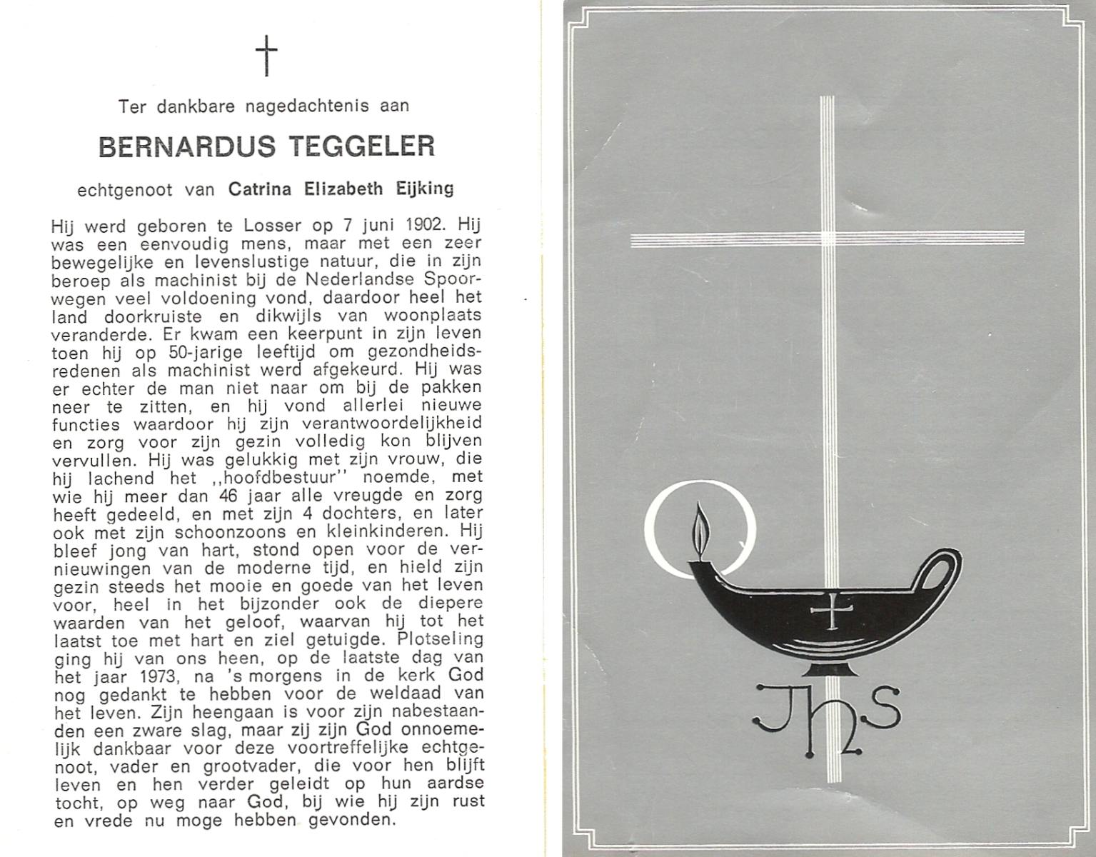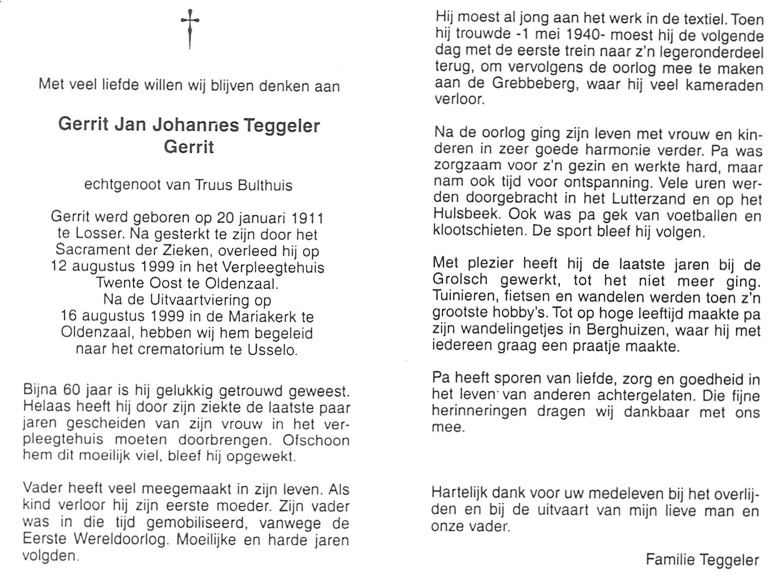 TIGGELER, Gerhardus Hermannus Johannes, geboren op 25-11-1904 te Enschede, overleden op 8-6-1980 te Enschede op 75-jarige leeftijd, begraven op 12-6-1980 te Enschede.