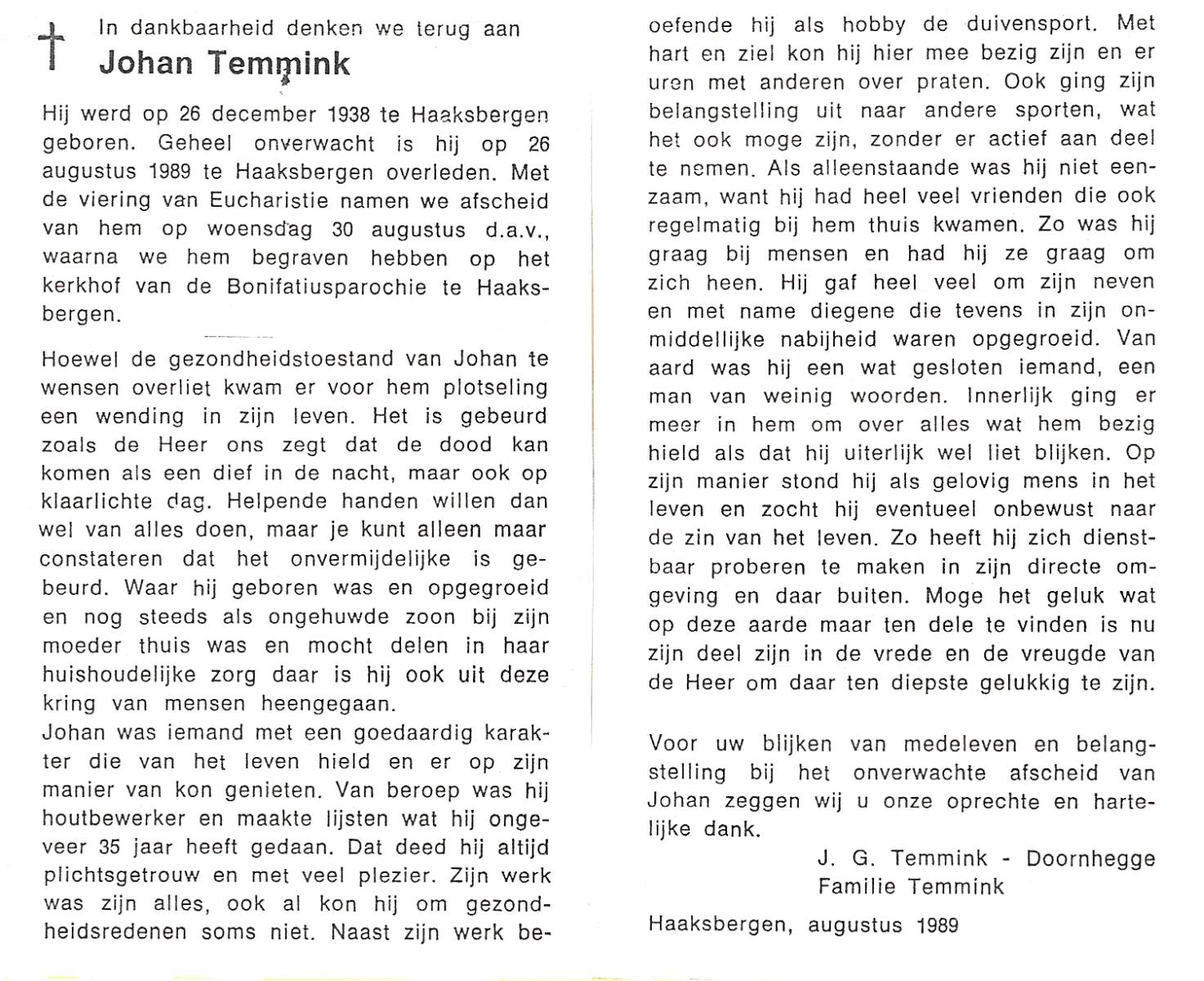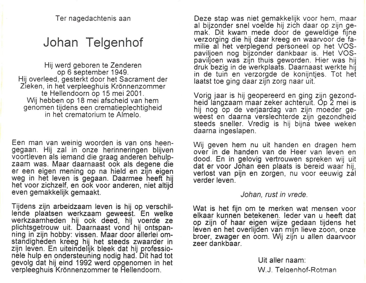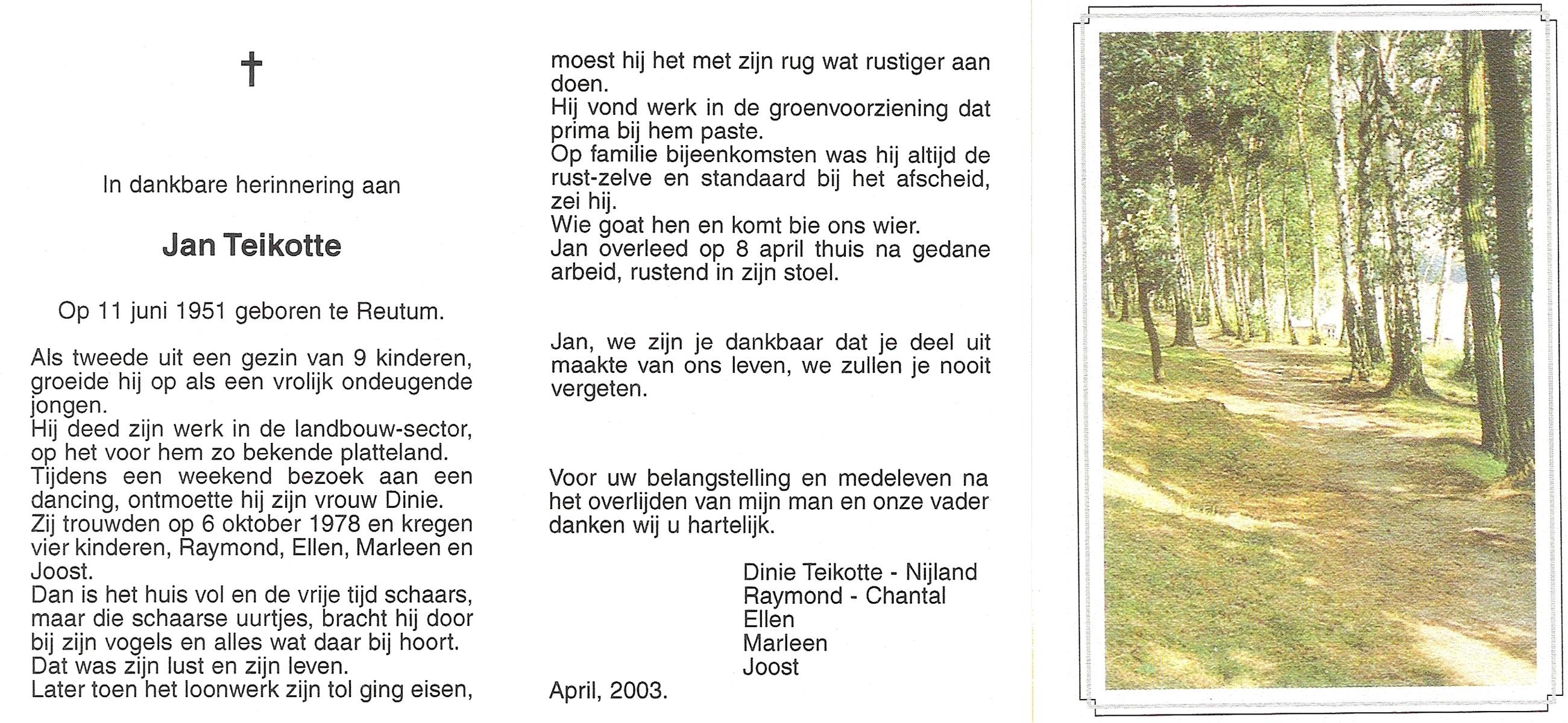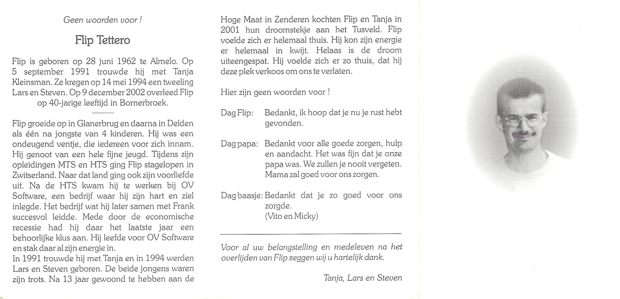 TIBBEN, Ton, geboren op 21-2-1946 te Wierden, overleden op 14-10-2001 te Almelo, ziekenhuis op 55-jarige leeftijd.
