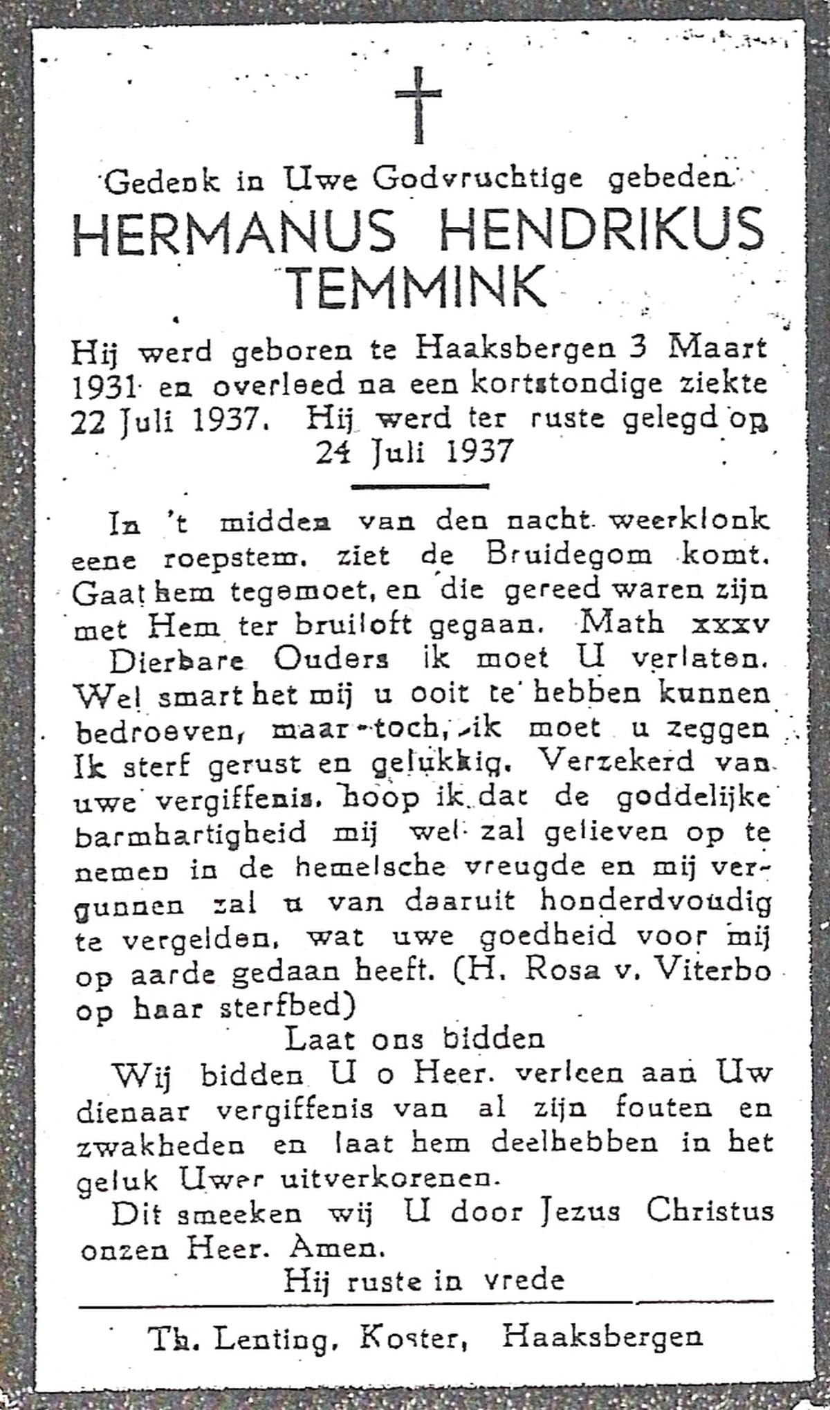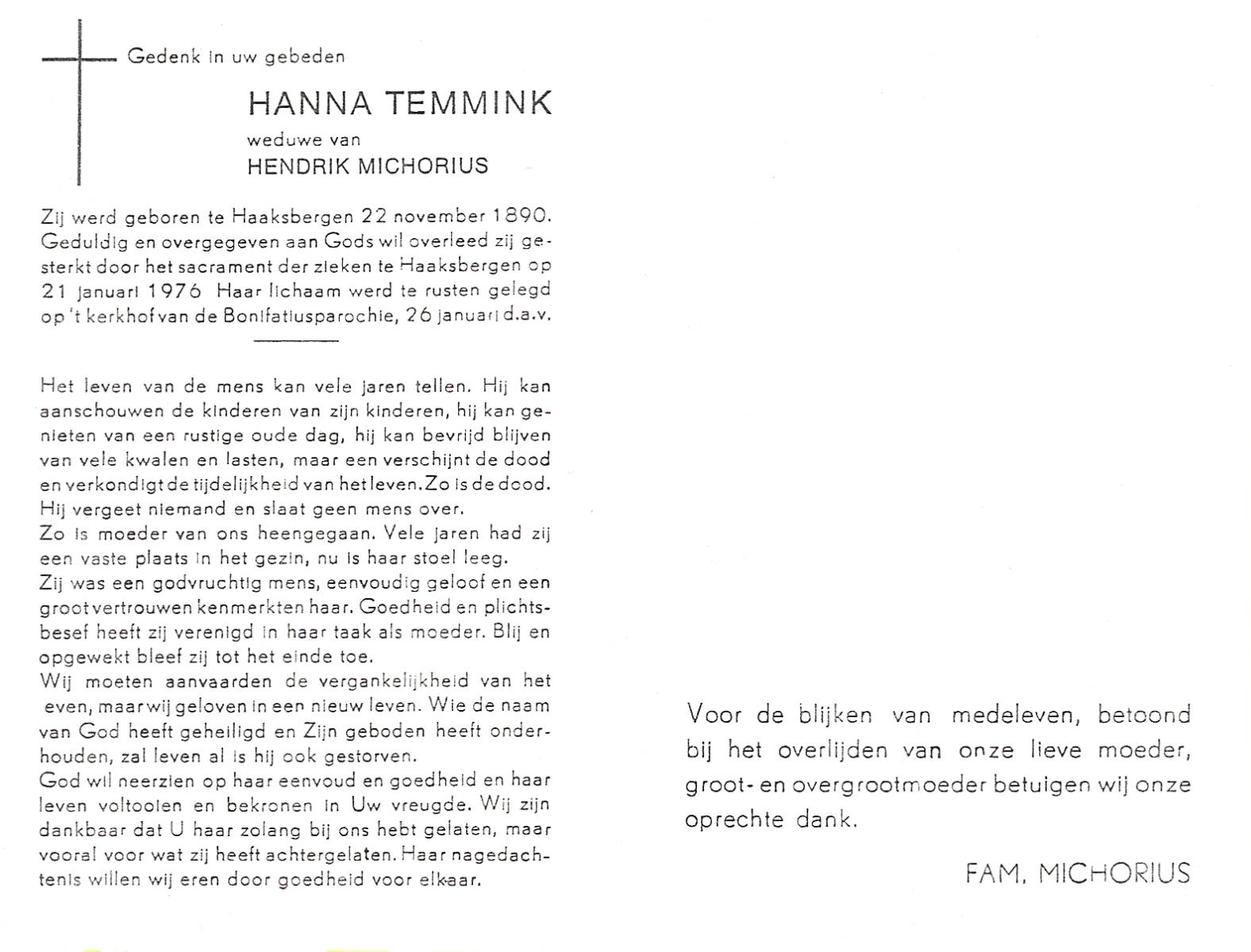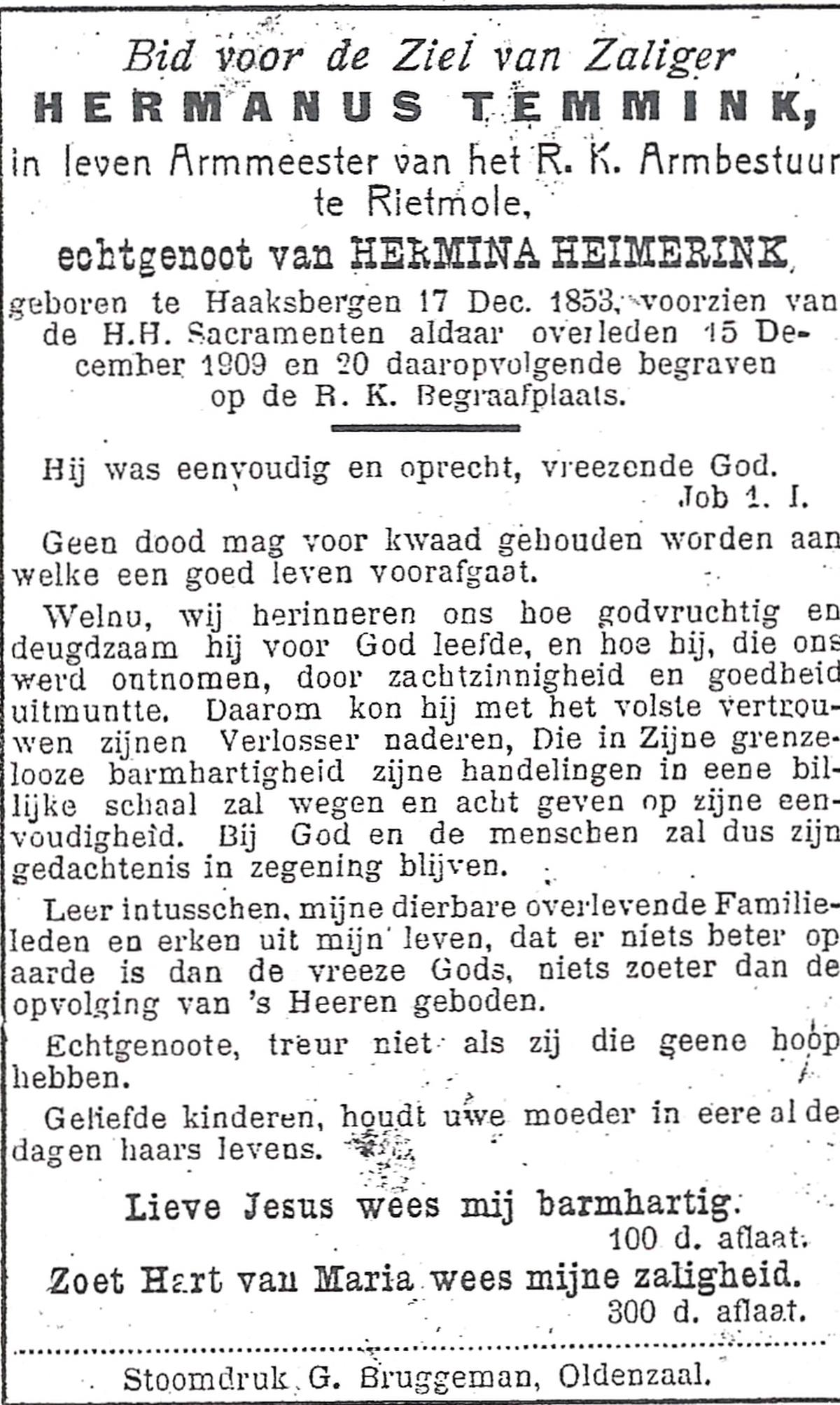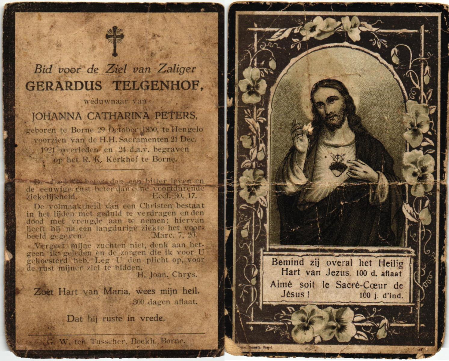 TIJANS, Hendrika, geboren op 08-05-1877 te Beuningen (Ov.), overleden op 31-7-1932 te Noord Deurningen op 55-jarige leeftijd, begraven op 3-8-1932 te Denekamp R.K.kerkhof.