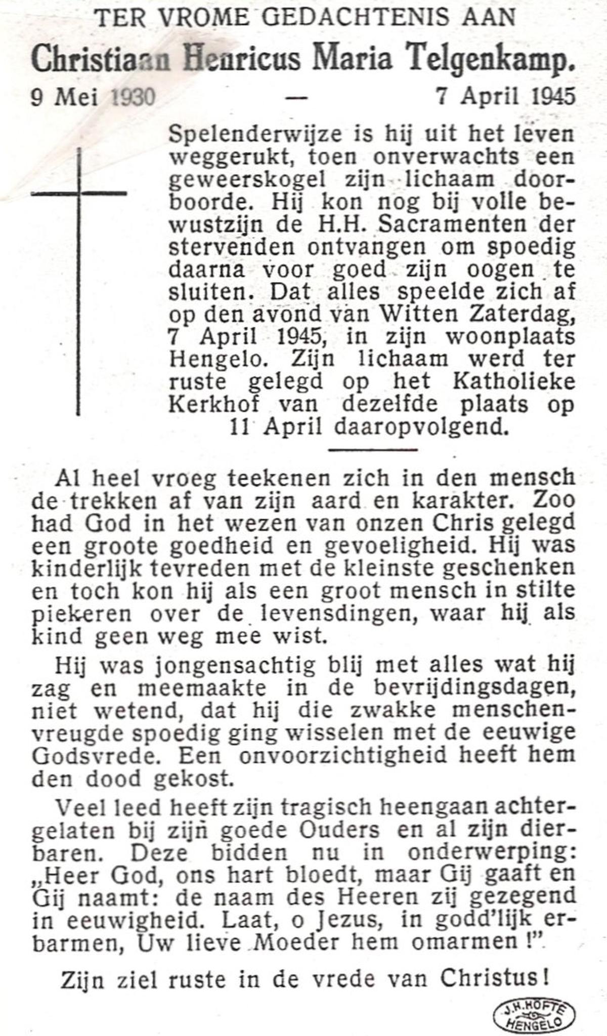 STOPEL, Henricus Marinus Gregorius, geboren op 25-5-1915 te Zenderen, overleden op 23-3-1945 te Zenderen op 29-jarige leeftijd, begraven op 27-3-1945 te Zenderen.