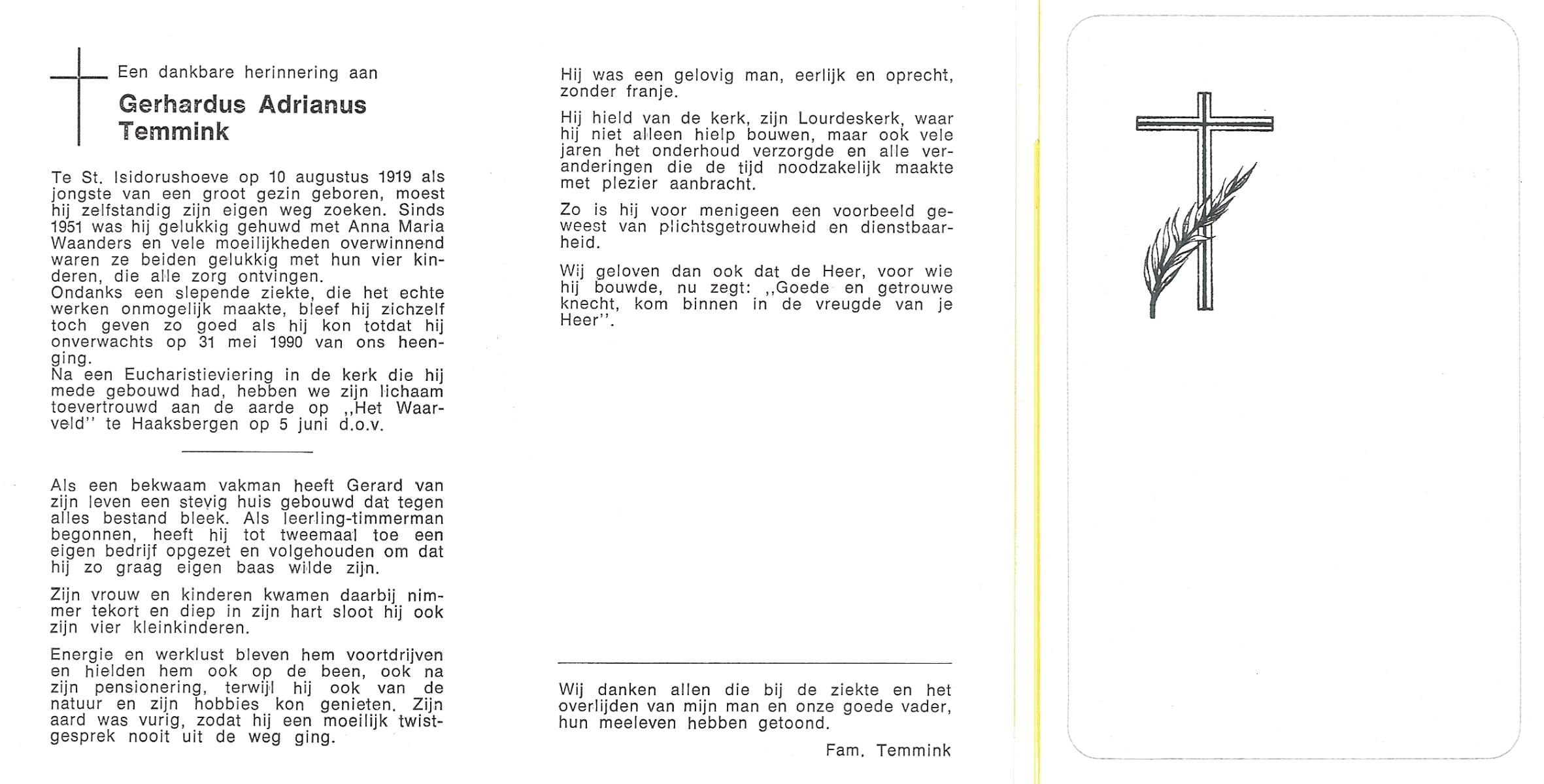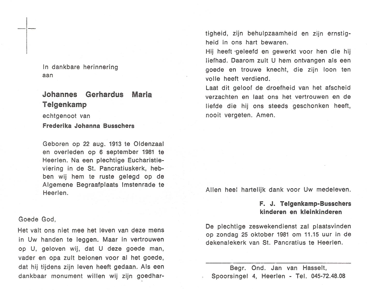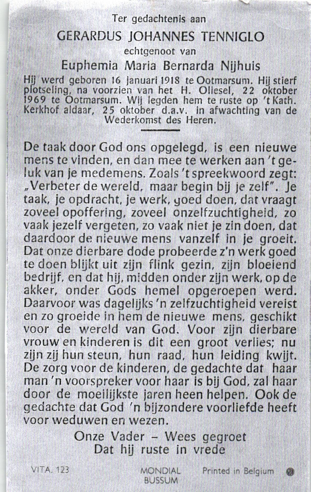 TIJANS, Gerardus Johannes, geboren op 18-6-1923 te Beuningen (Ov.), overleden op 3-8-1990 op 67-jarige leeftijd, begraven op 7-8-1990 te Beuningen (Ov) R.K.kerkhof.