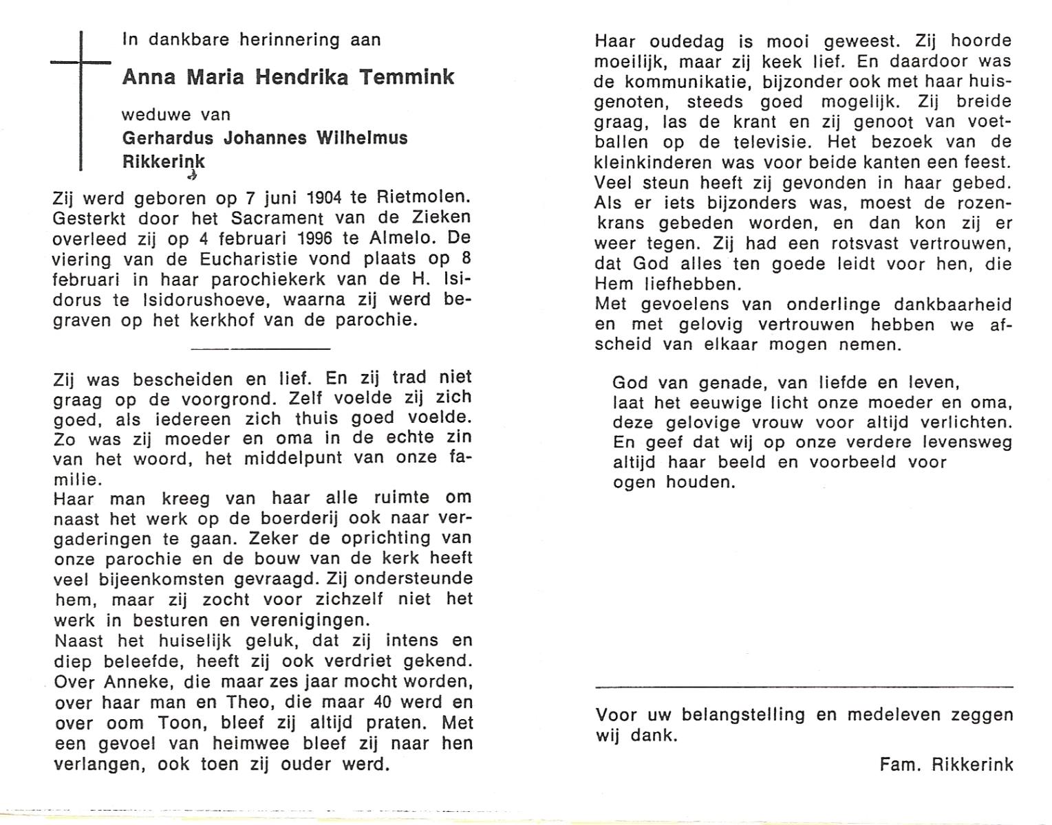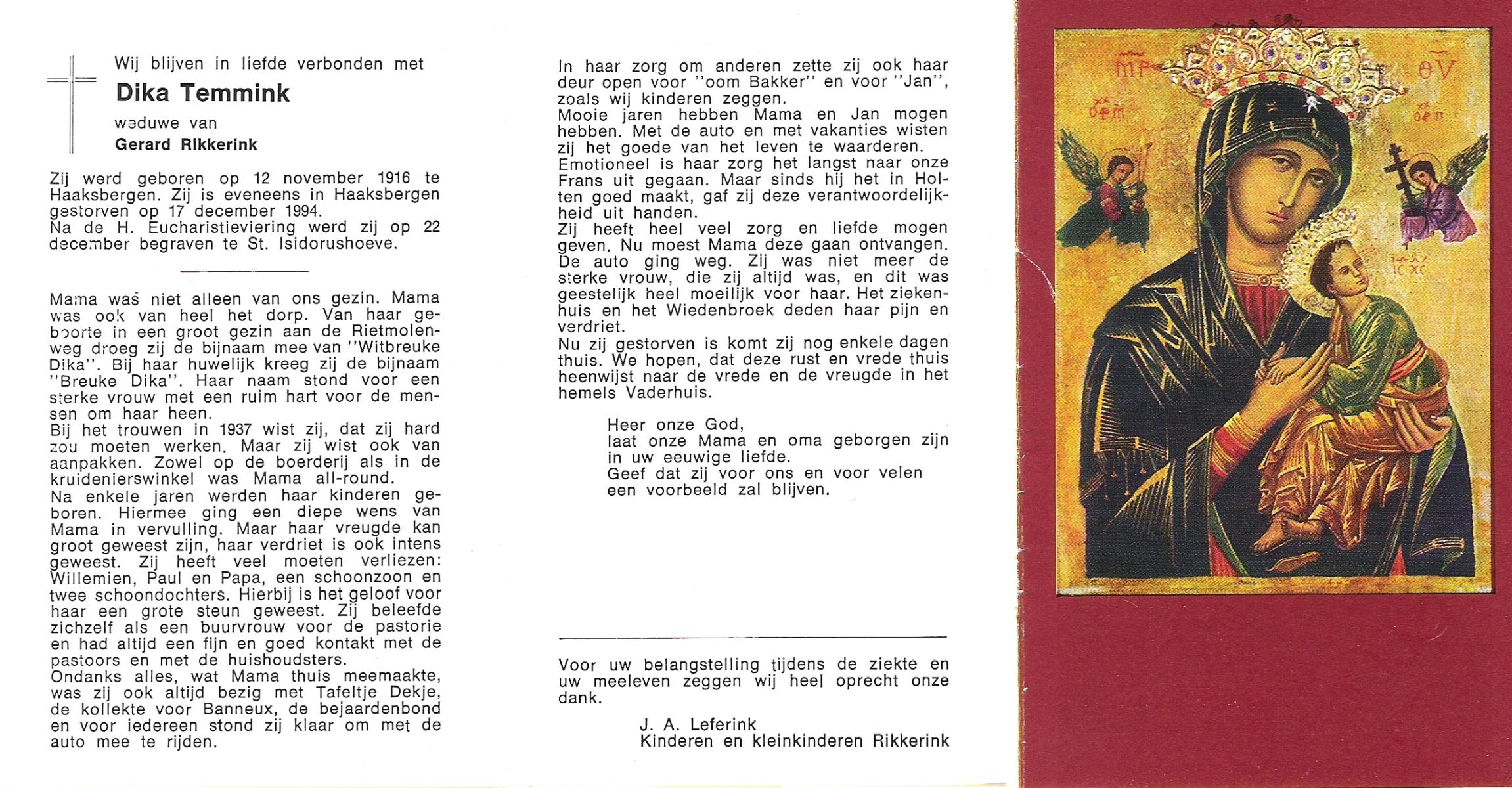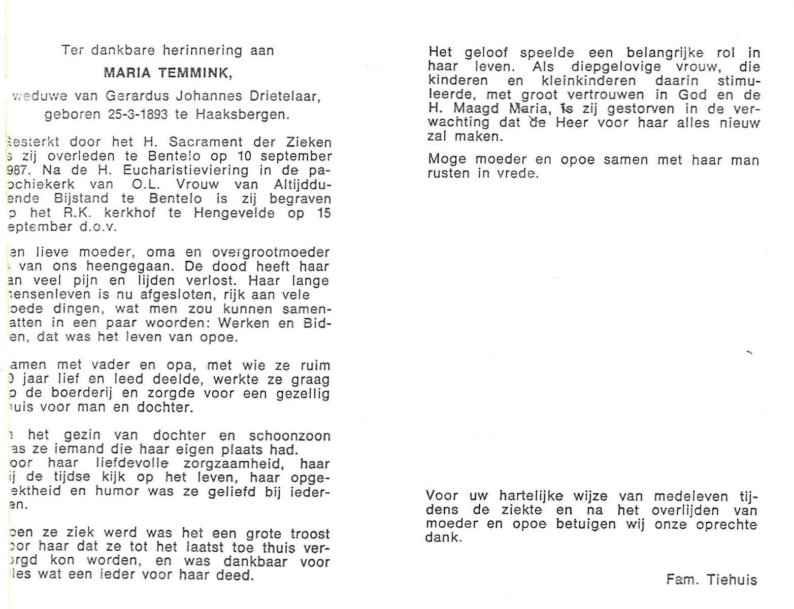 TIEKE, Maria Euphemia, geboren op 04-07-1892 te Losser, overleden op 19-3-1974 te Losser op 81-jarige leeftijd, begraven op 23-3-1974 te Overdinkel.