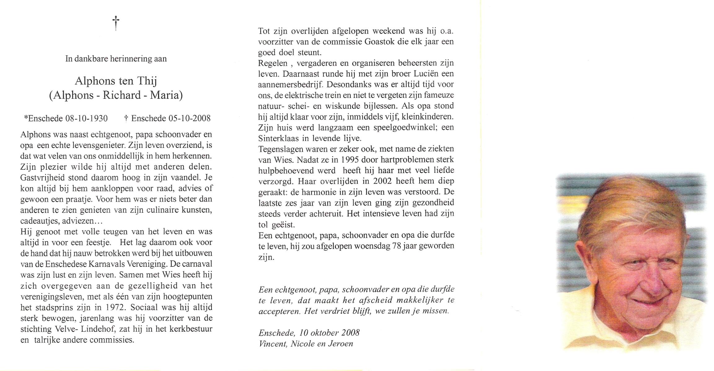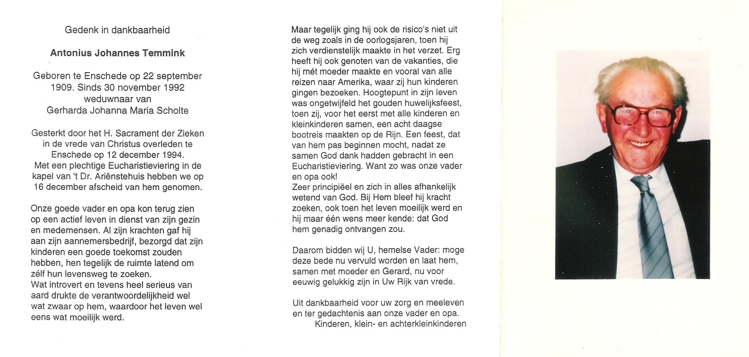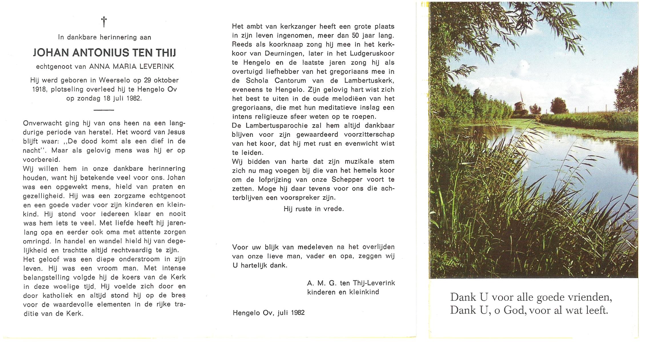 TIJE, ten, Antonius Gerhardus (Antoon), geboren op 14-7-1913 te Hengelo (O), overleden op 29-8-1995 te Hengelo (Ov.) op 82-jarige leeftijd, begraven op 2-9-1995 te Hengelo (Ov.).