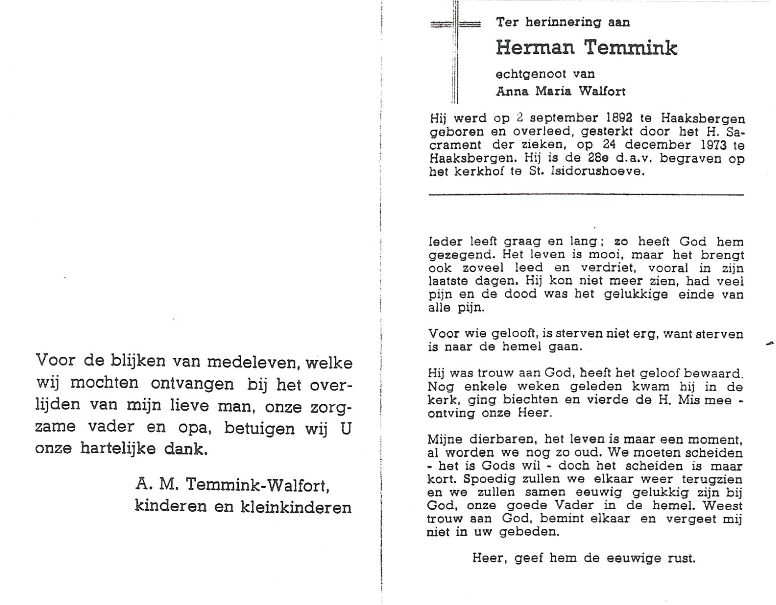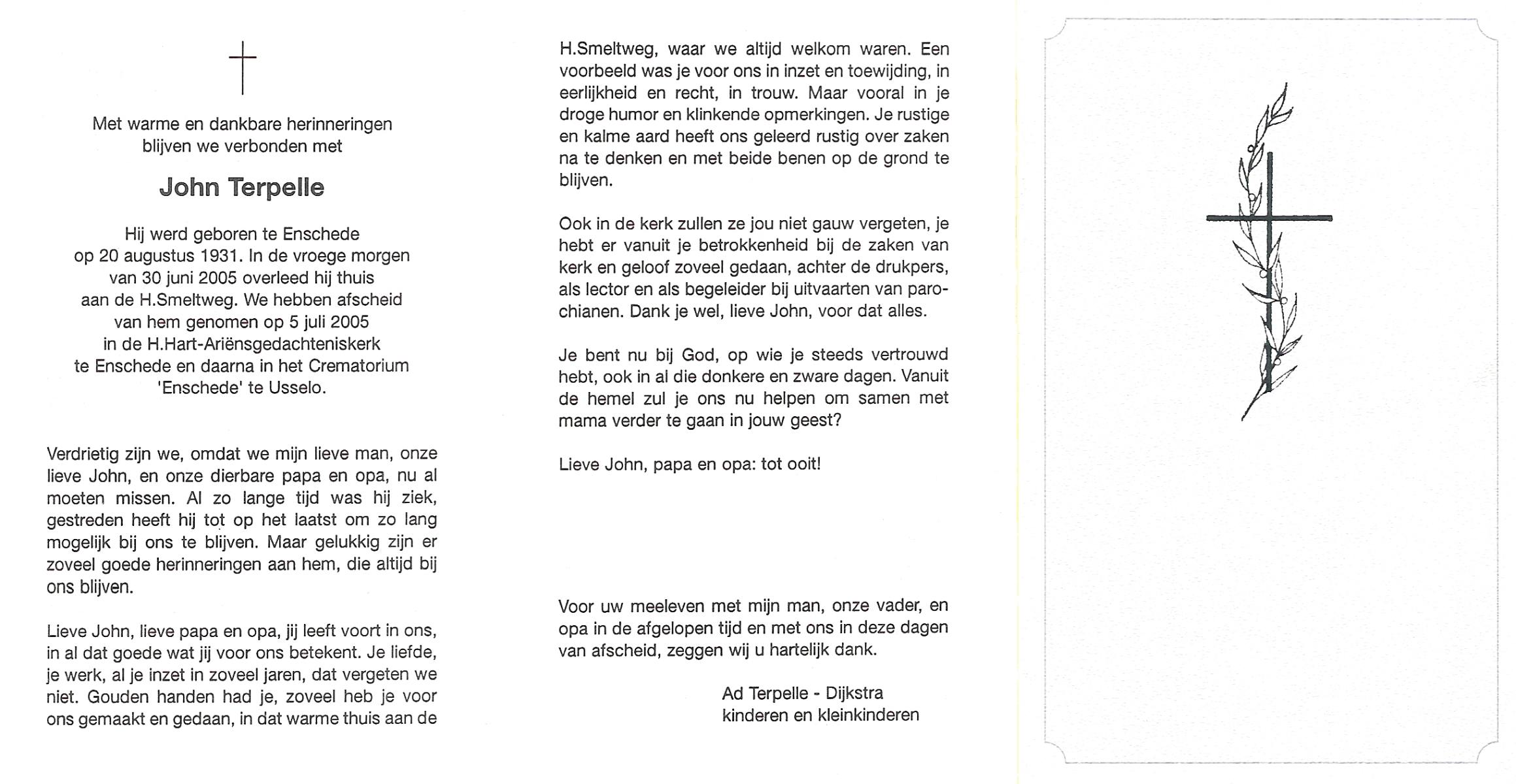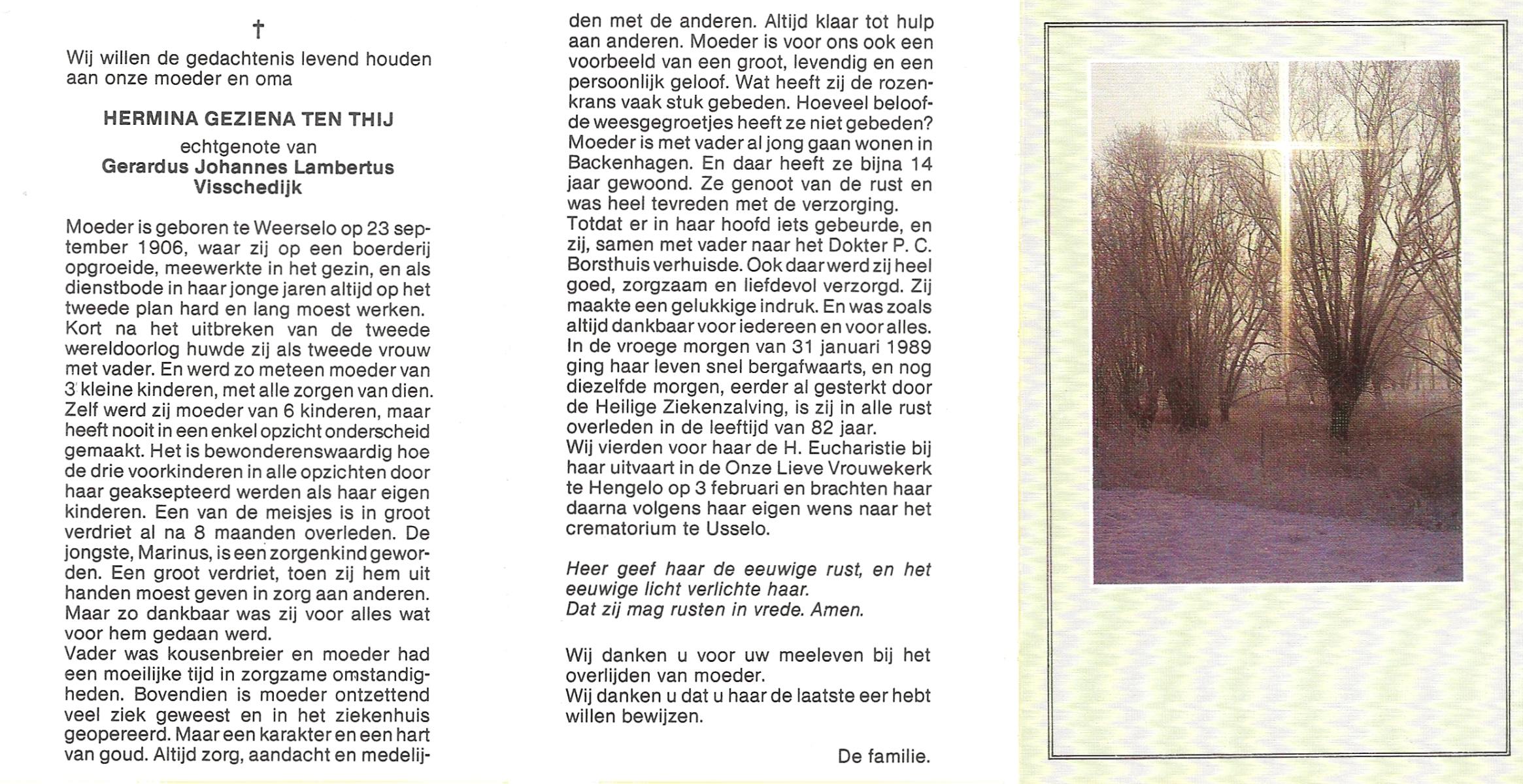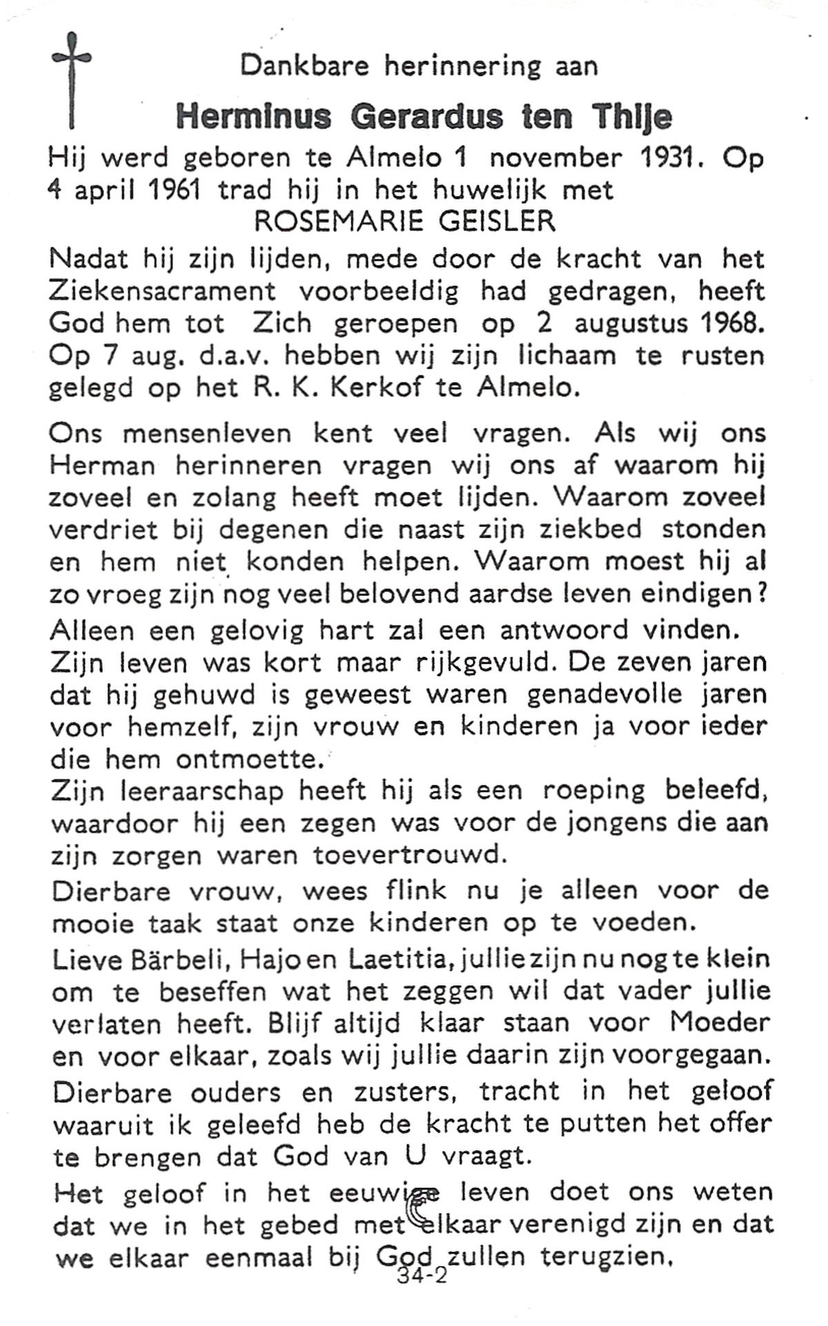TIJE, ten, Herman, geboren op 10-12-1915 te Enschede, overleden op 14-3-1989 te Enschede op 73-jarige leeftijd, gecremeerd op 17-3-1989 te Usselo.