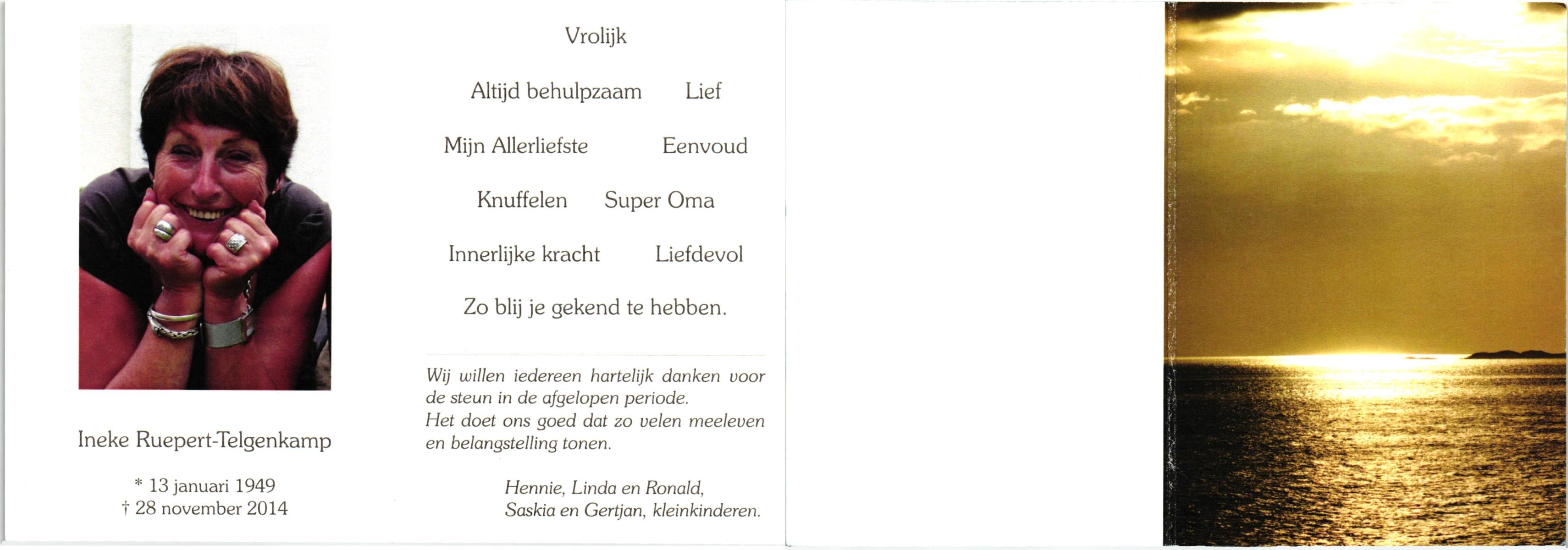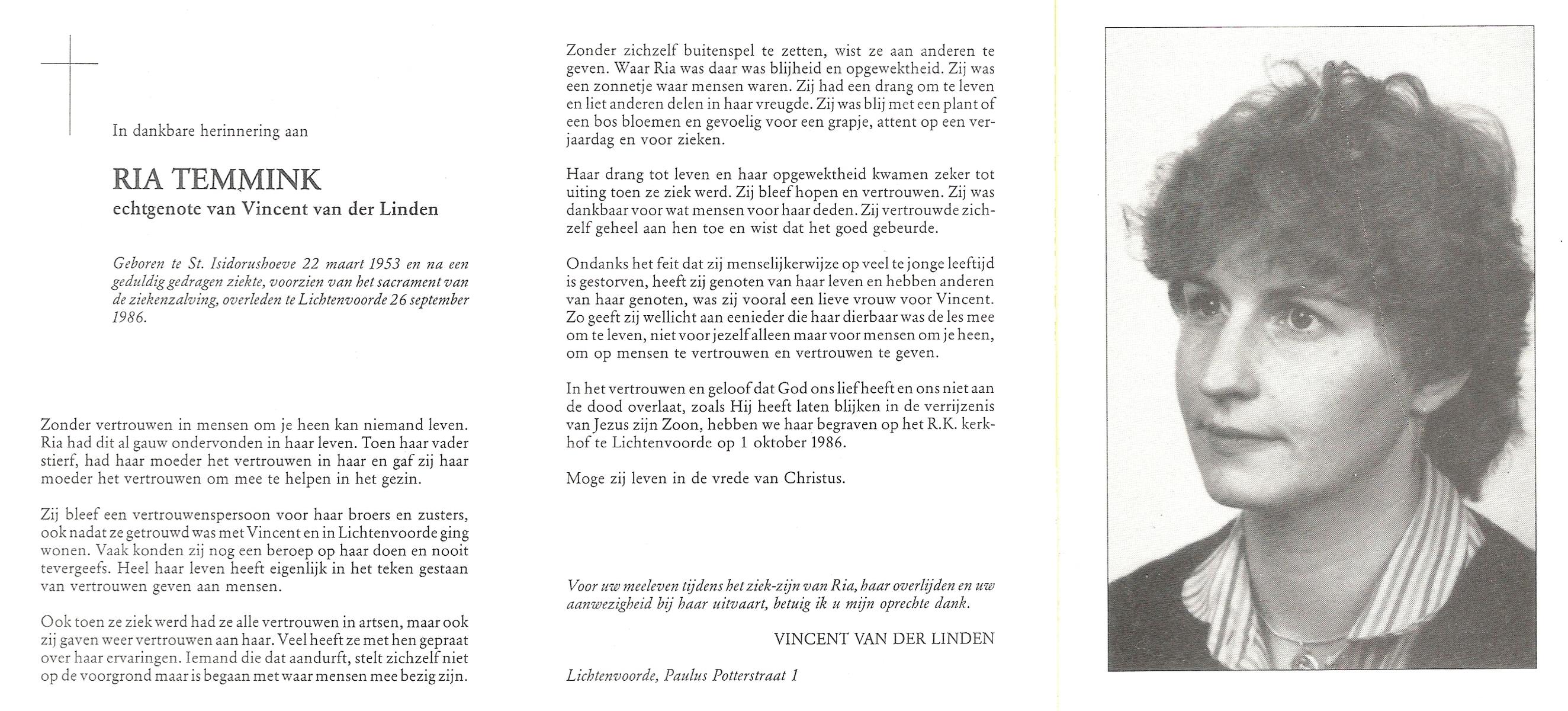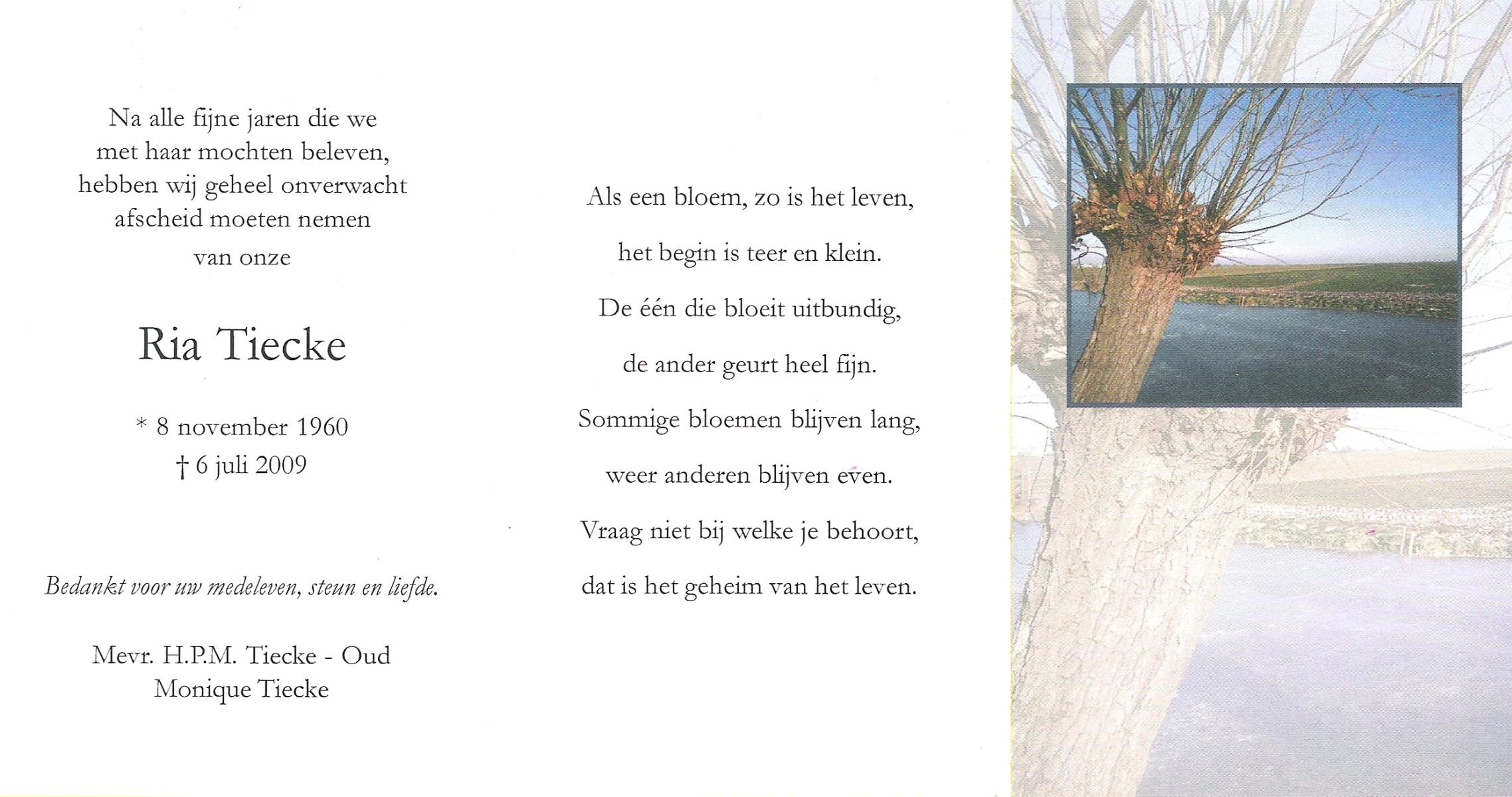 TIECKE, Ria, geboren op 8-11-1960, overleden op 6-7-2009 op 48-jarige leeftijd.