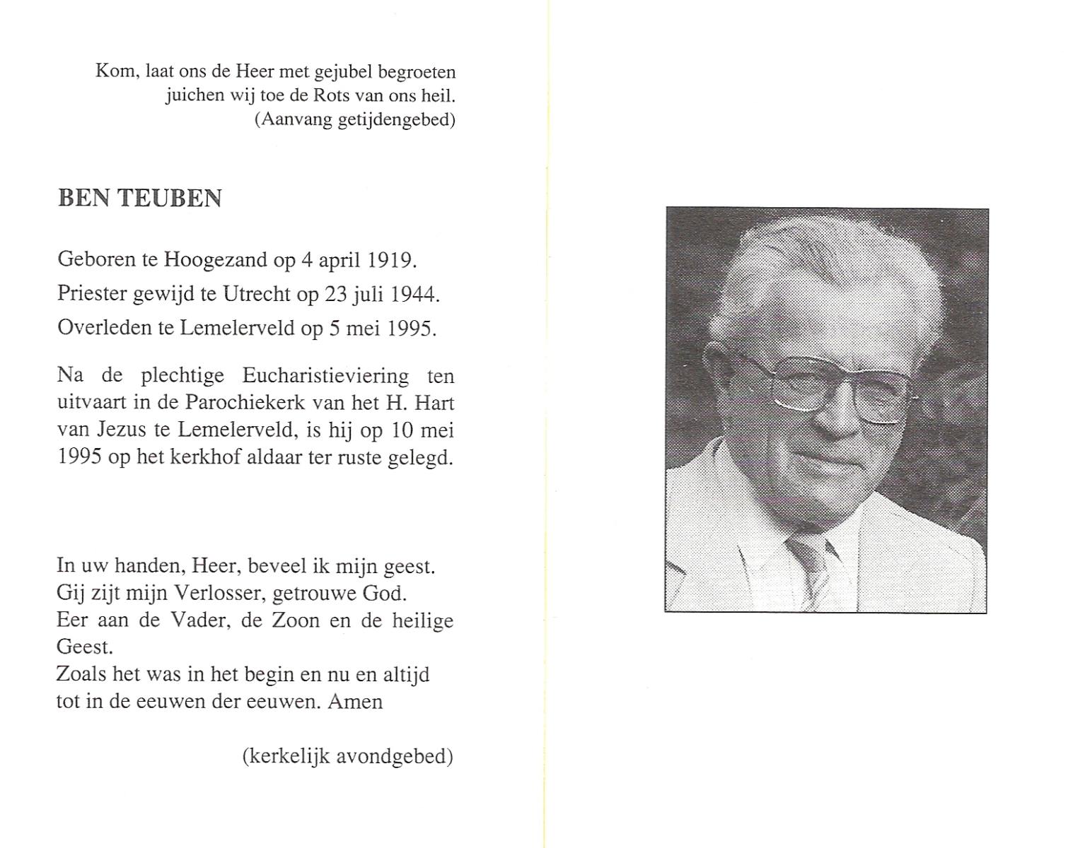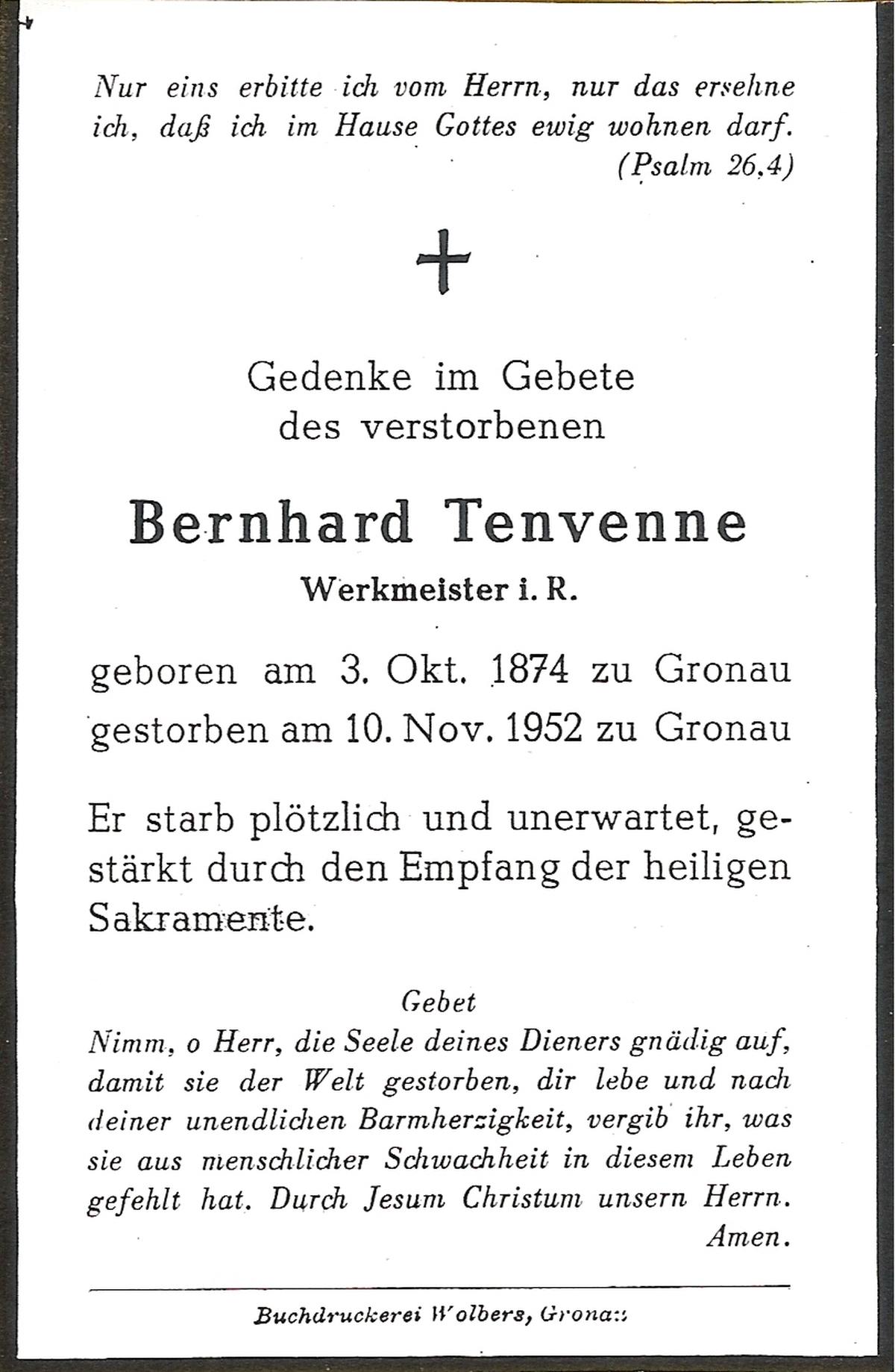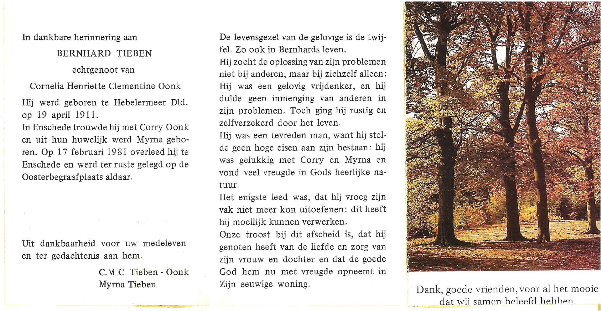 TIEBEN, Bernhard, geboren op 19-4-1911 te Hebelermeer (Dld), overleden op 17-2-1981 te Enschede op 69-jarige leeftijd.