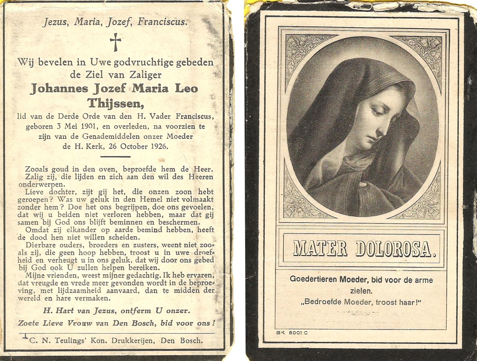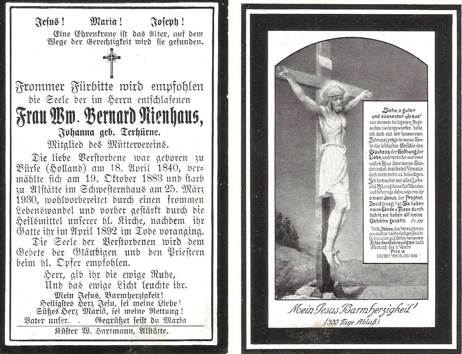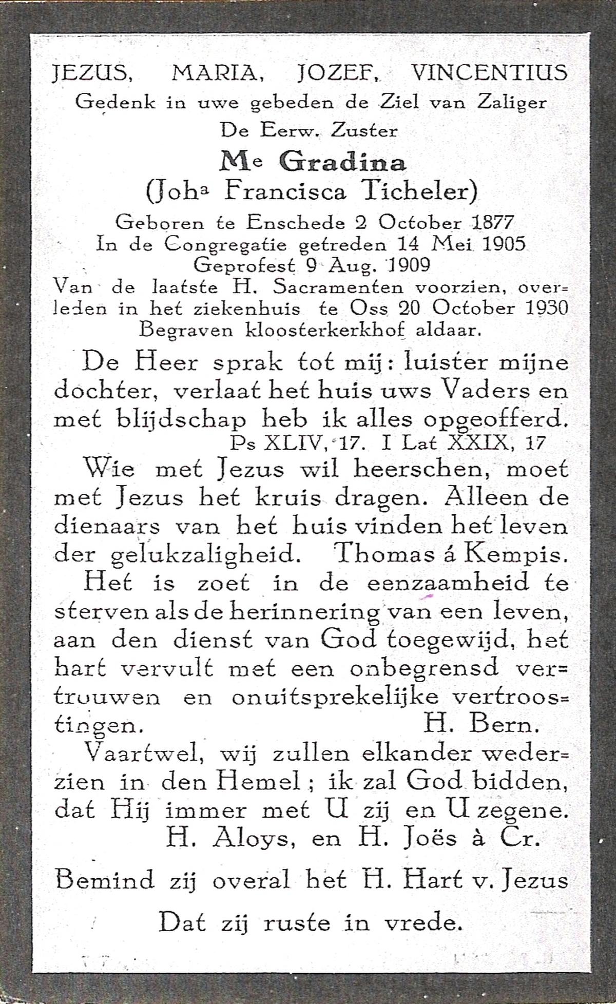 TICHELER, Johanna Francisca, geboren op 02-10-1877 te Enschede, overleden op 20-10-1930 te Oss op 53-jarige leeftijd, begraven te Oss.