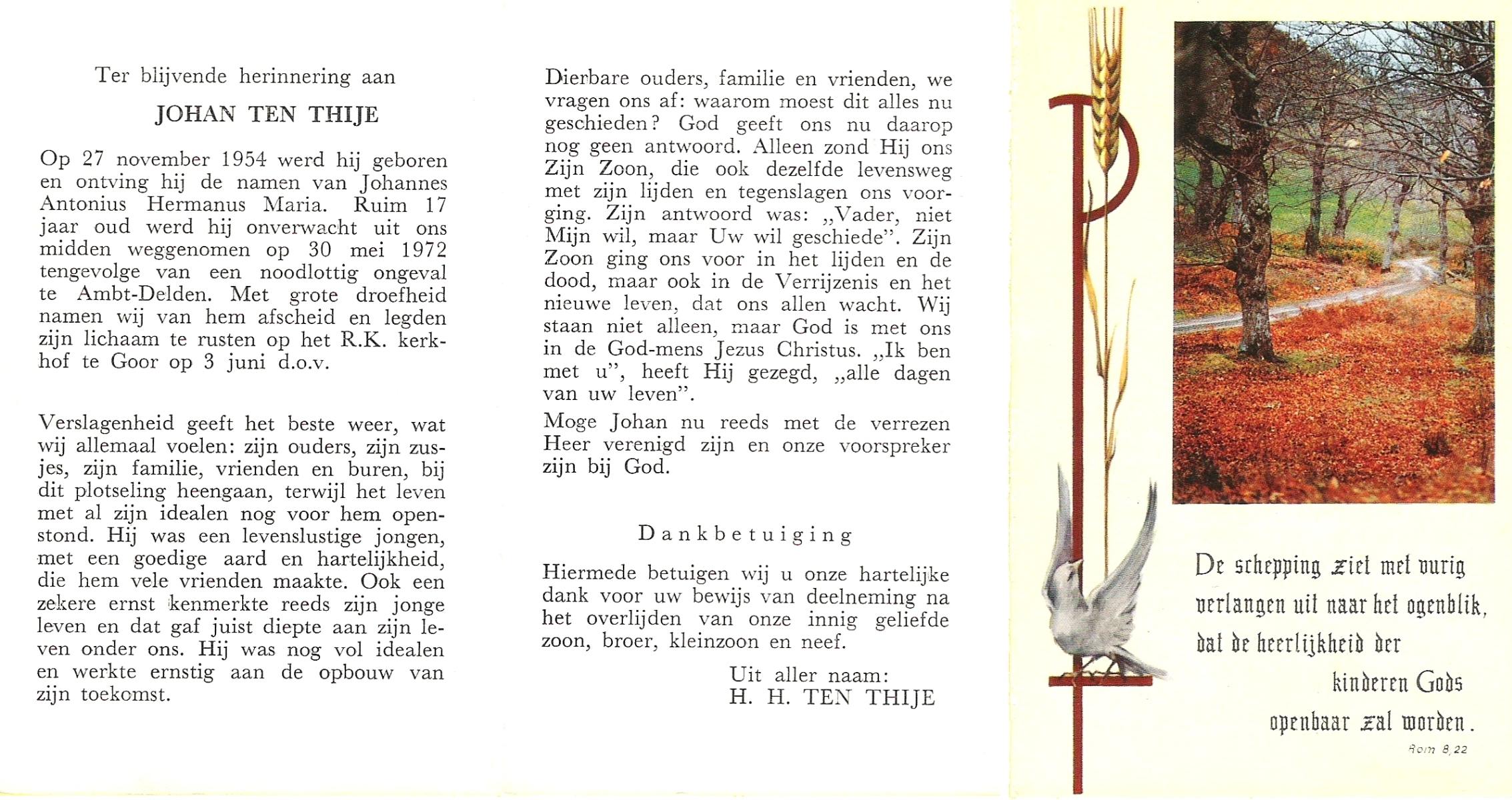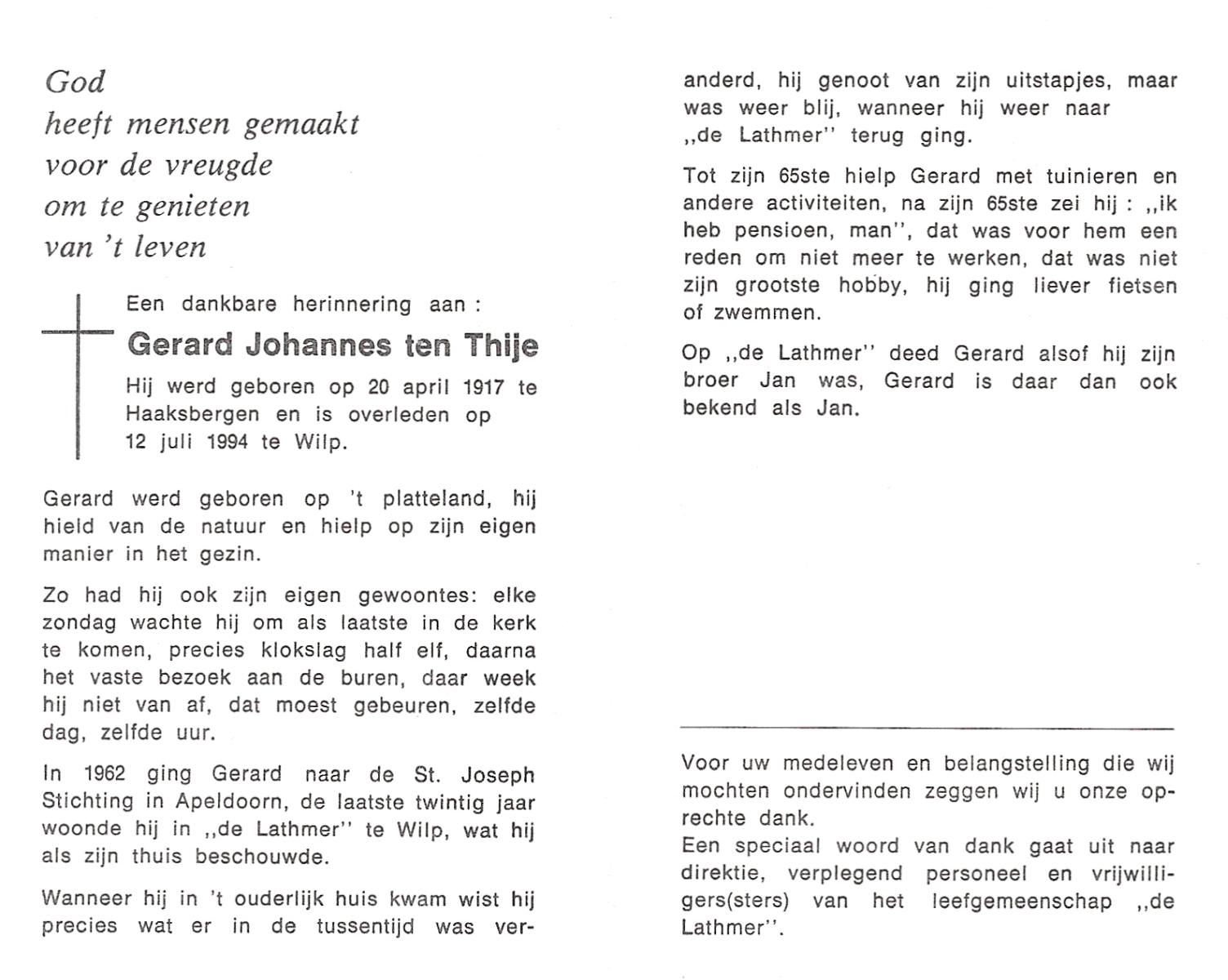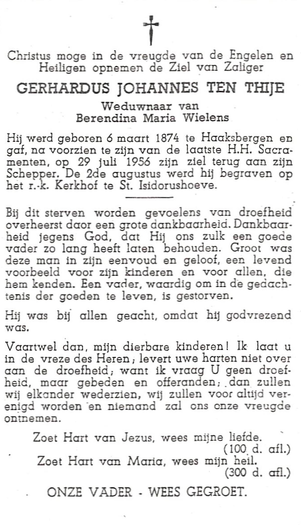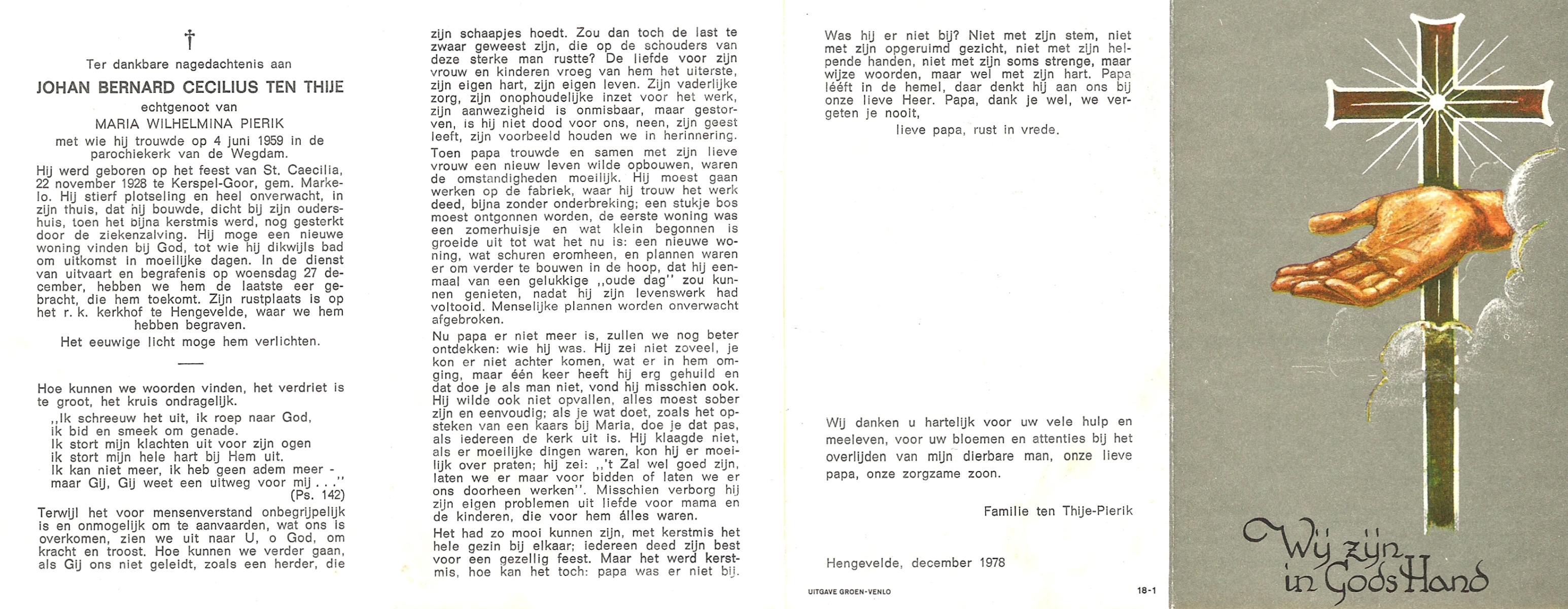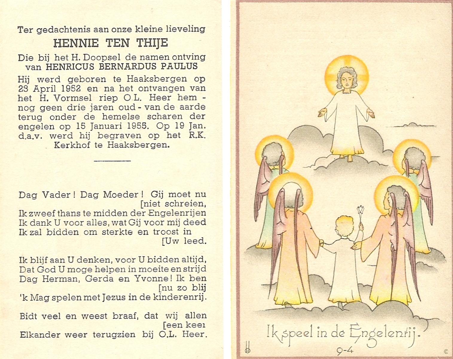 TIJE, ten, Henricus Gerhardus, geboren op 20-1-1927 te Delden, Ambt, overleden op 10-12-1993 te Hengelo (O) op 66-jarige leeftijd, begraven te Goor.