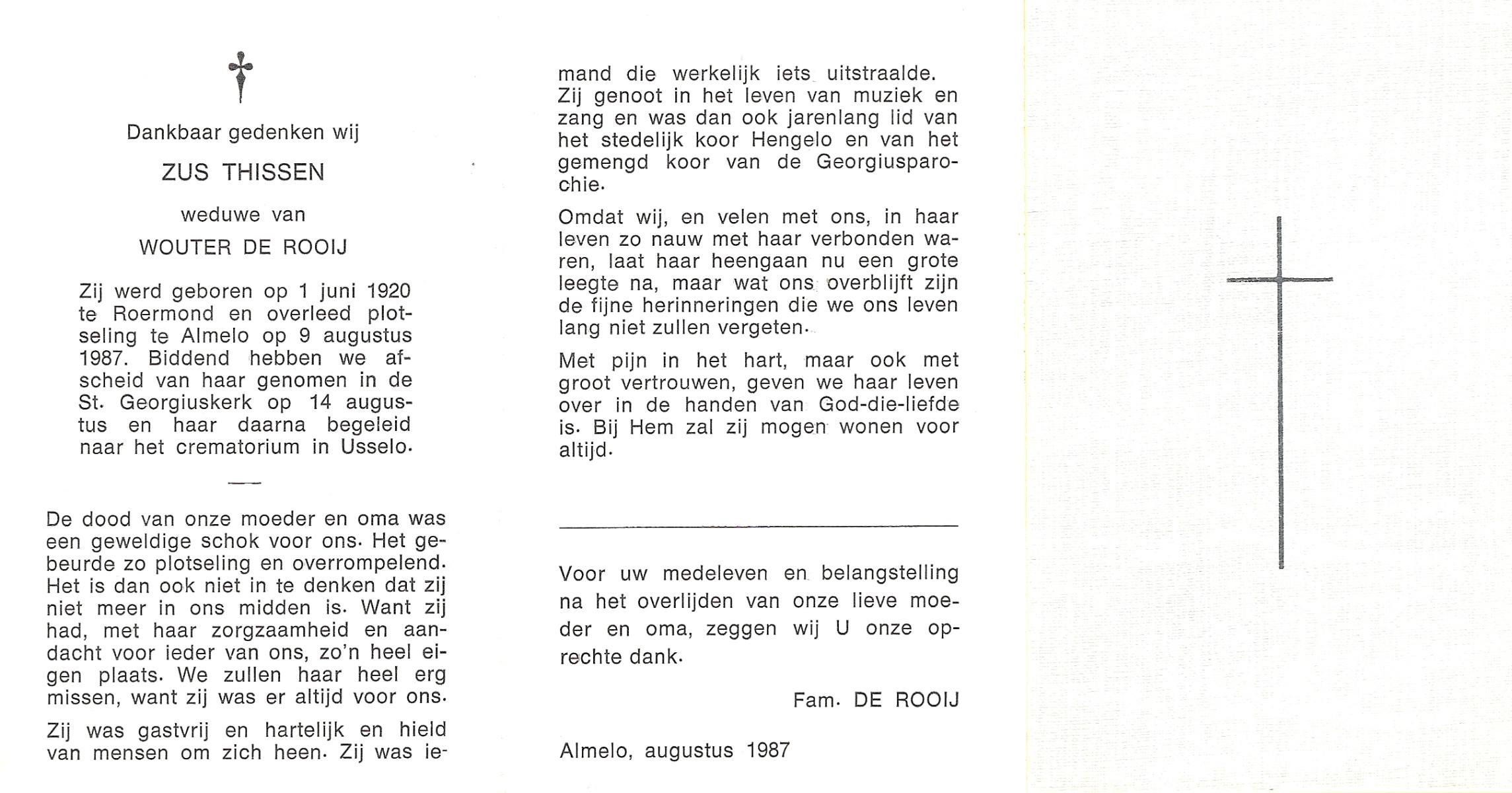 STRUIK, Grada Johanna Maria, geboren op 1-12-1913 te Rijssen, overleden op 22-8-1987 te Almelo, ziekenhuis op 73-jarige leeftijd, begraven op 26-8-1987 te Rijssen.