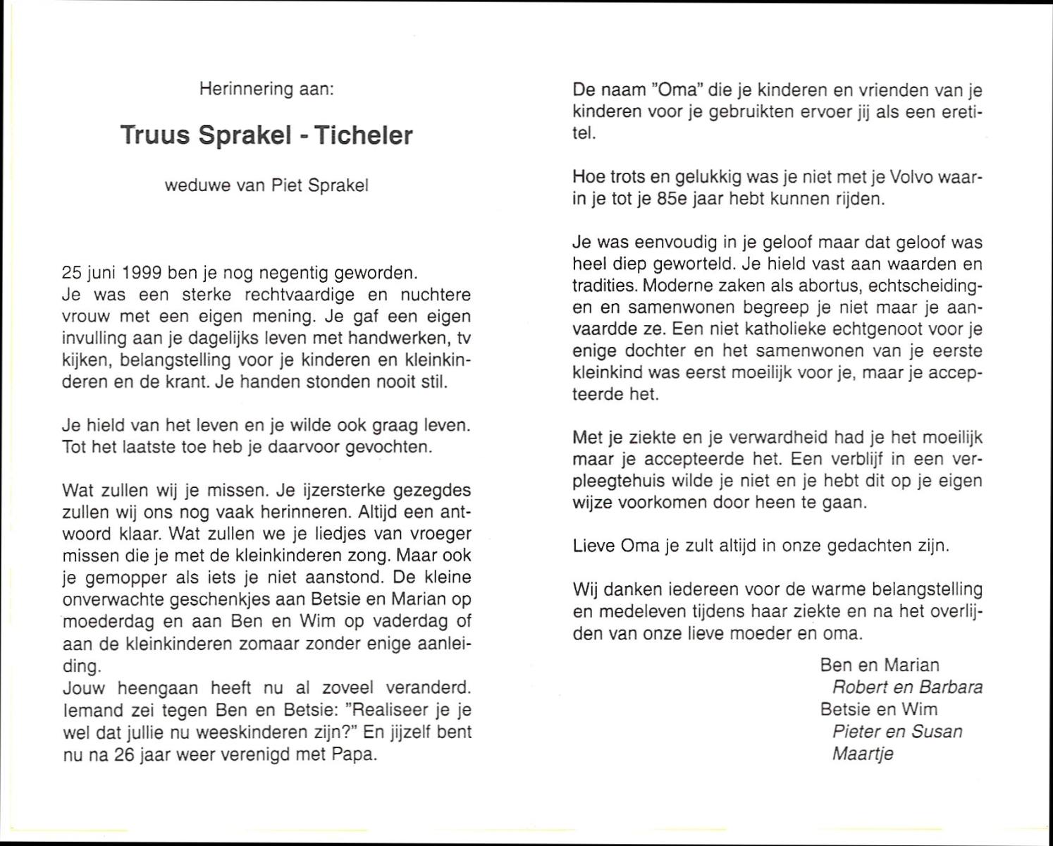 TICHELER, Truus, geboren op 25-6-1909 op 90-jarige leeftijd.