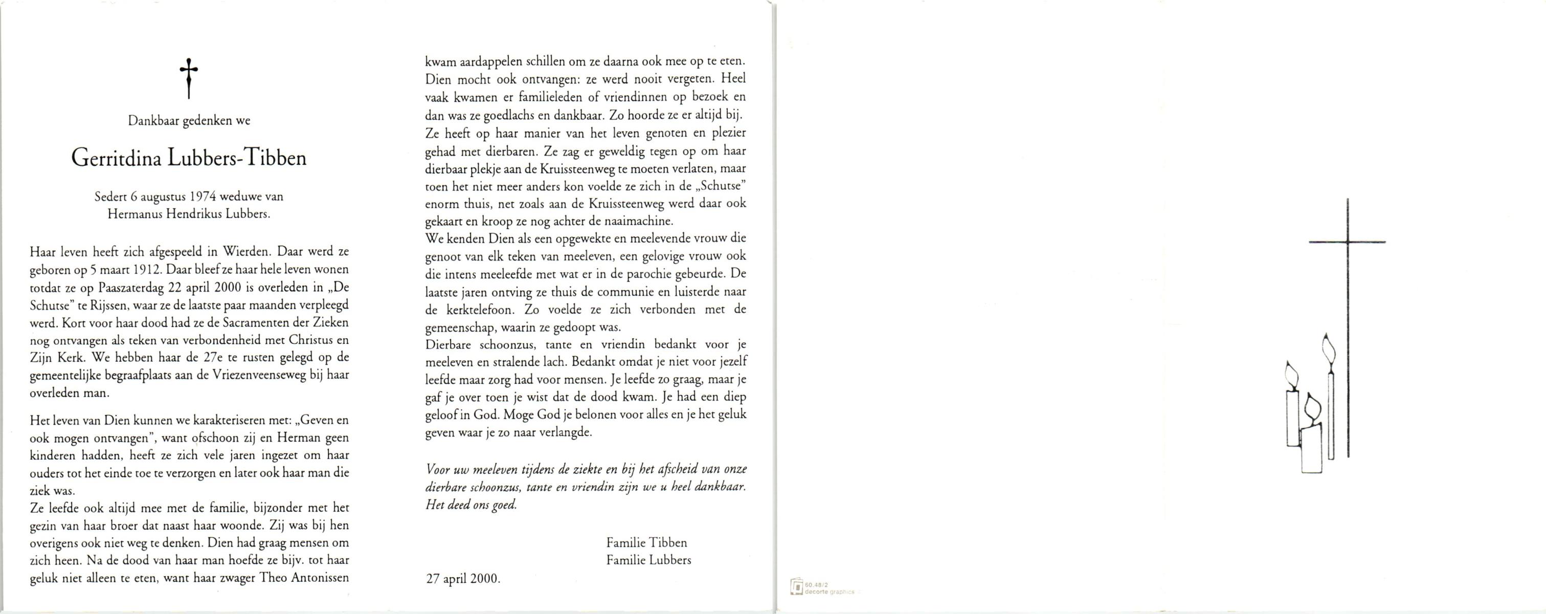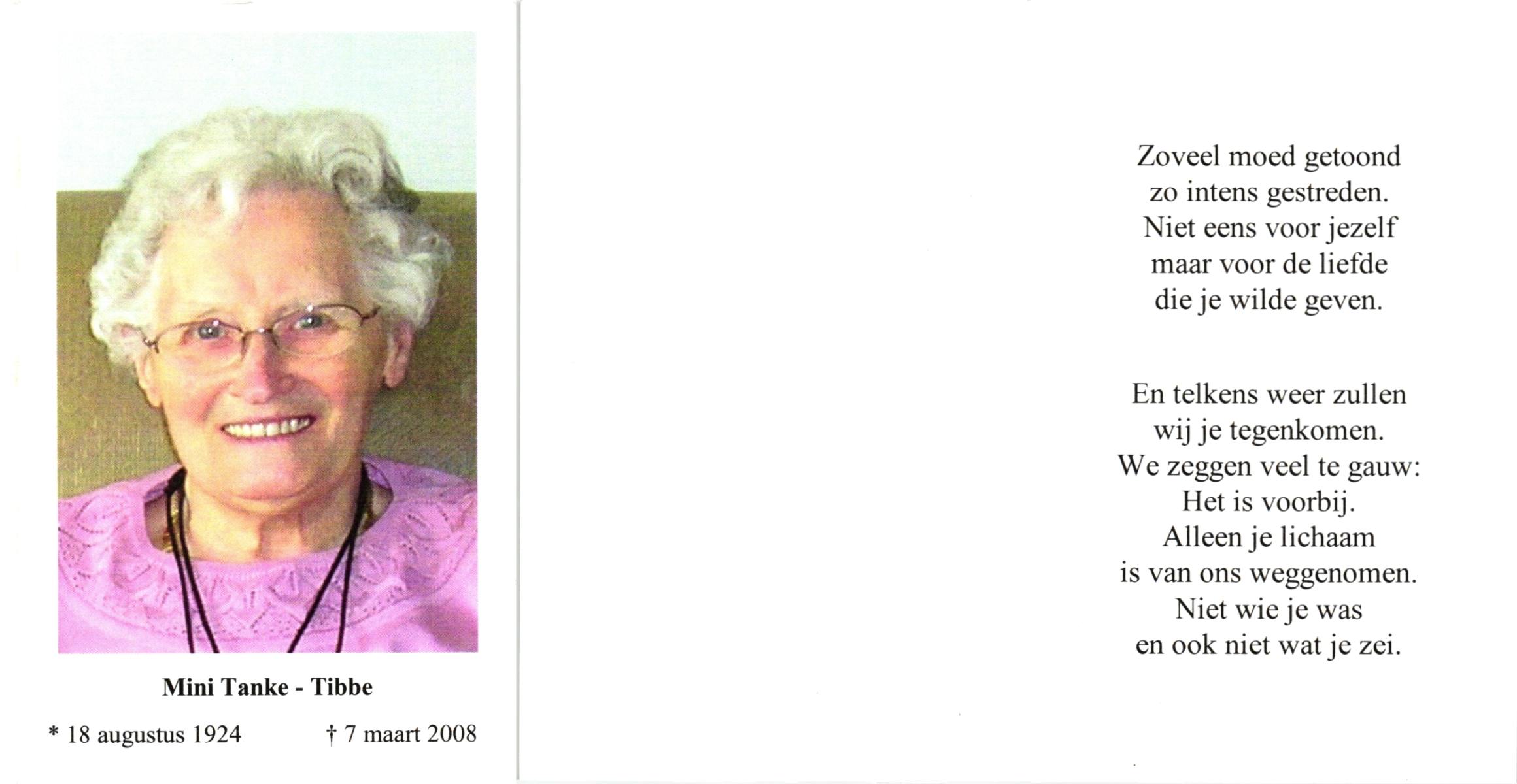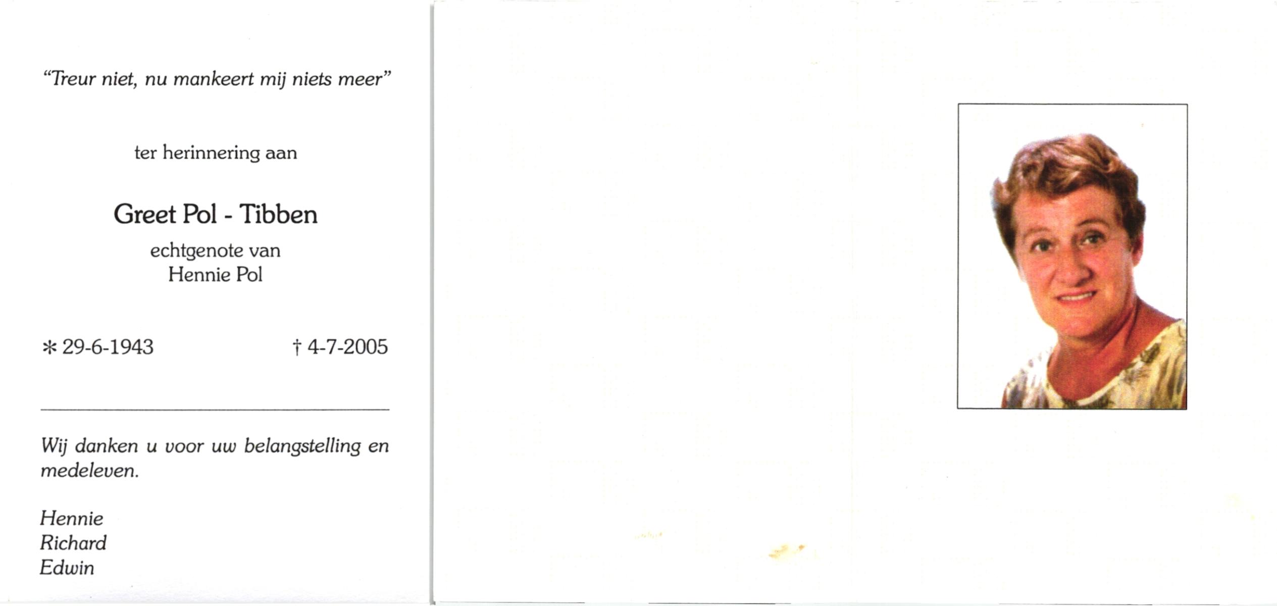 TIBBEN, , Greet, geboren op 29-6-1943, overleden op 4-7-2005 op 62-jarige leeftijd.