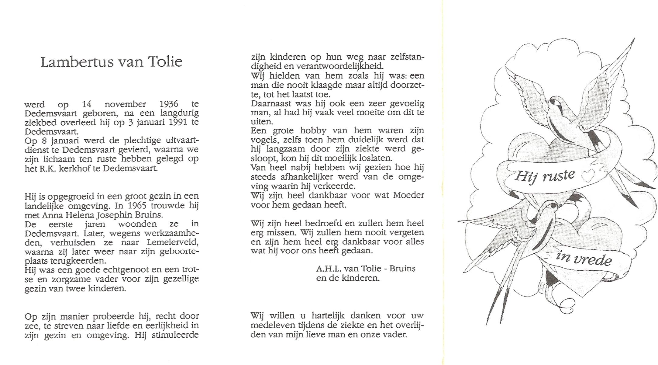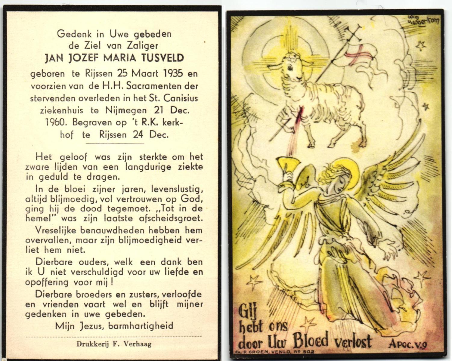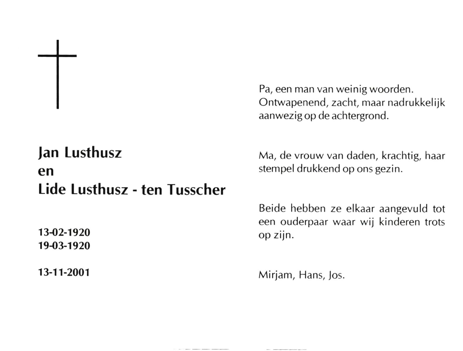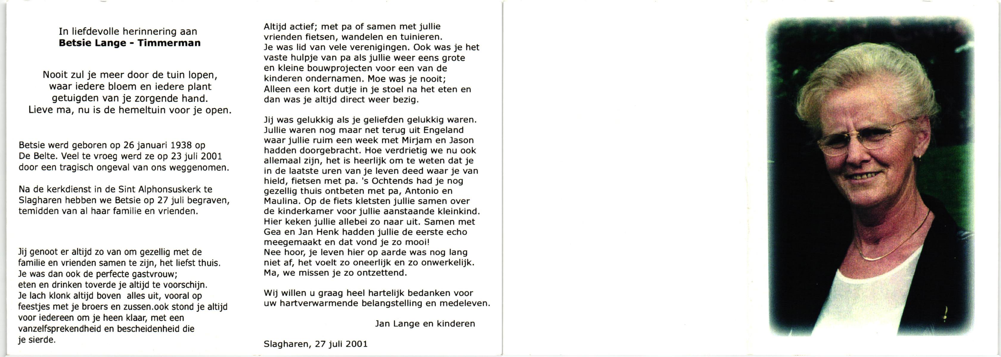 TIJHUIS, Jan, geboren op 26-5-1930 te Langeveen, overleden op 6-2-2001 op 70-jarige leeftijd, begraven op 10-2-2001 te Langeveen R.K.kerhof.