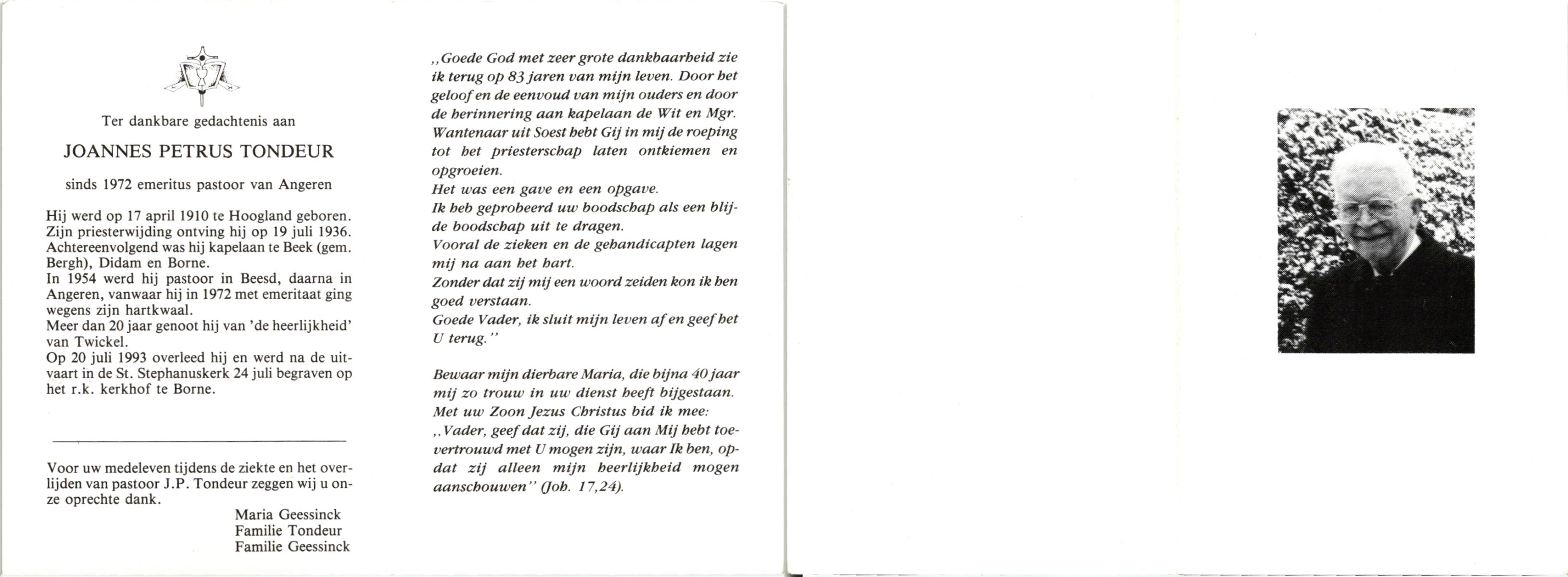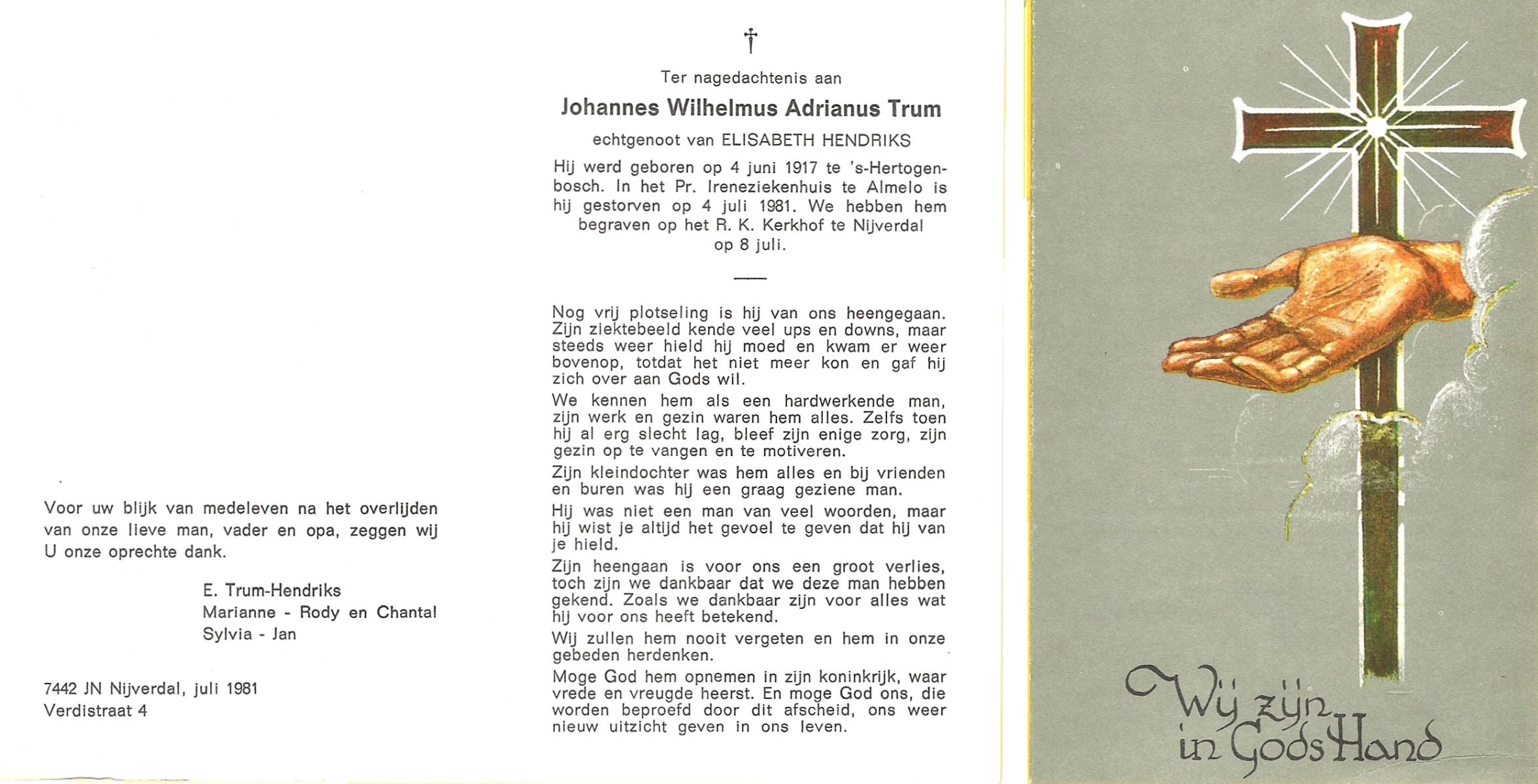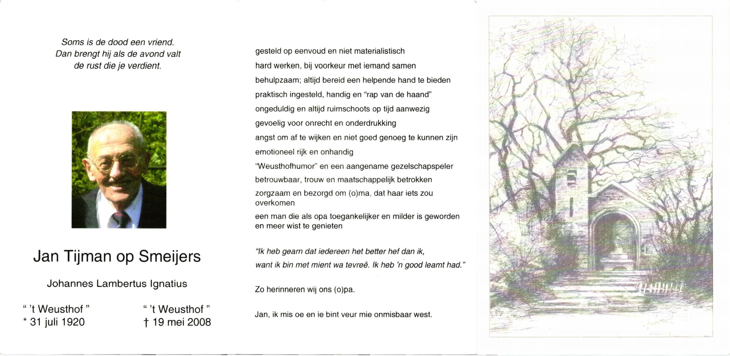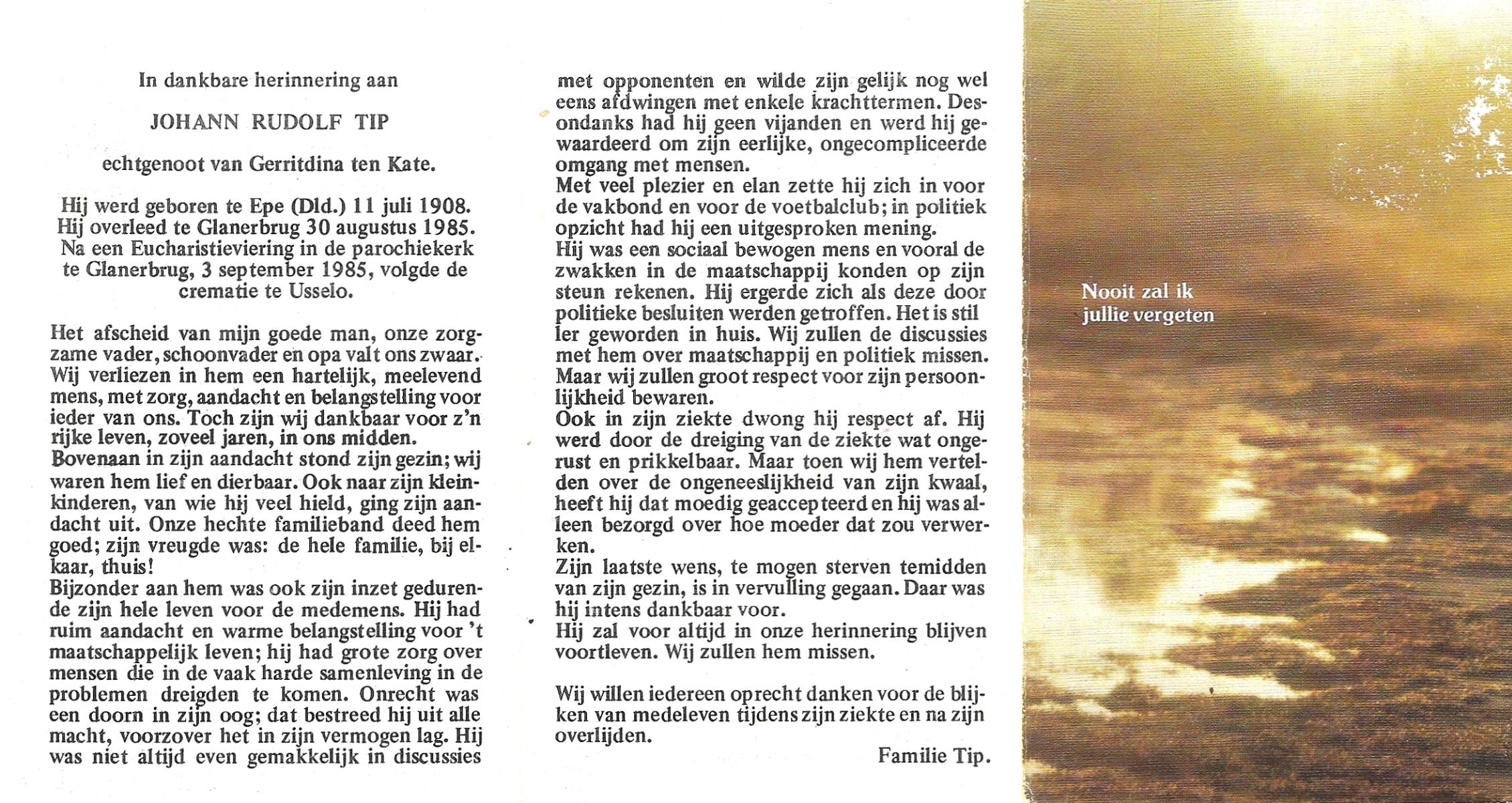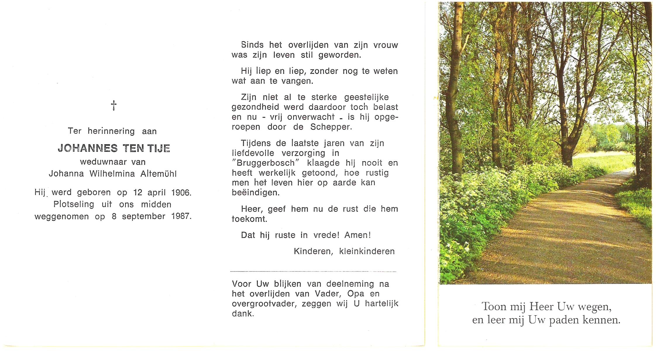 TIJE, ten, Johannes, geboren op 12-4-1906, overleden op 8-9-1987 op 81-jarige leeftijd.