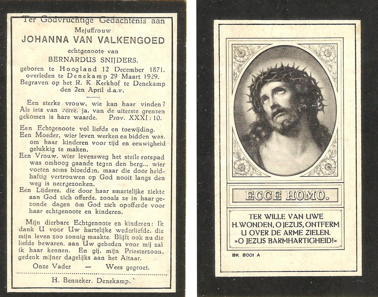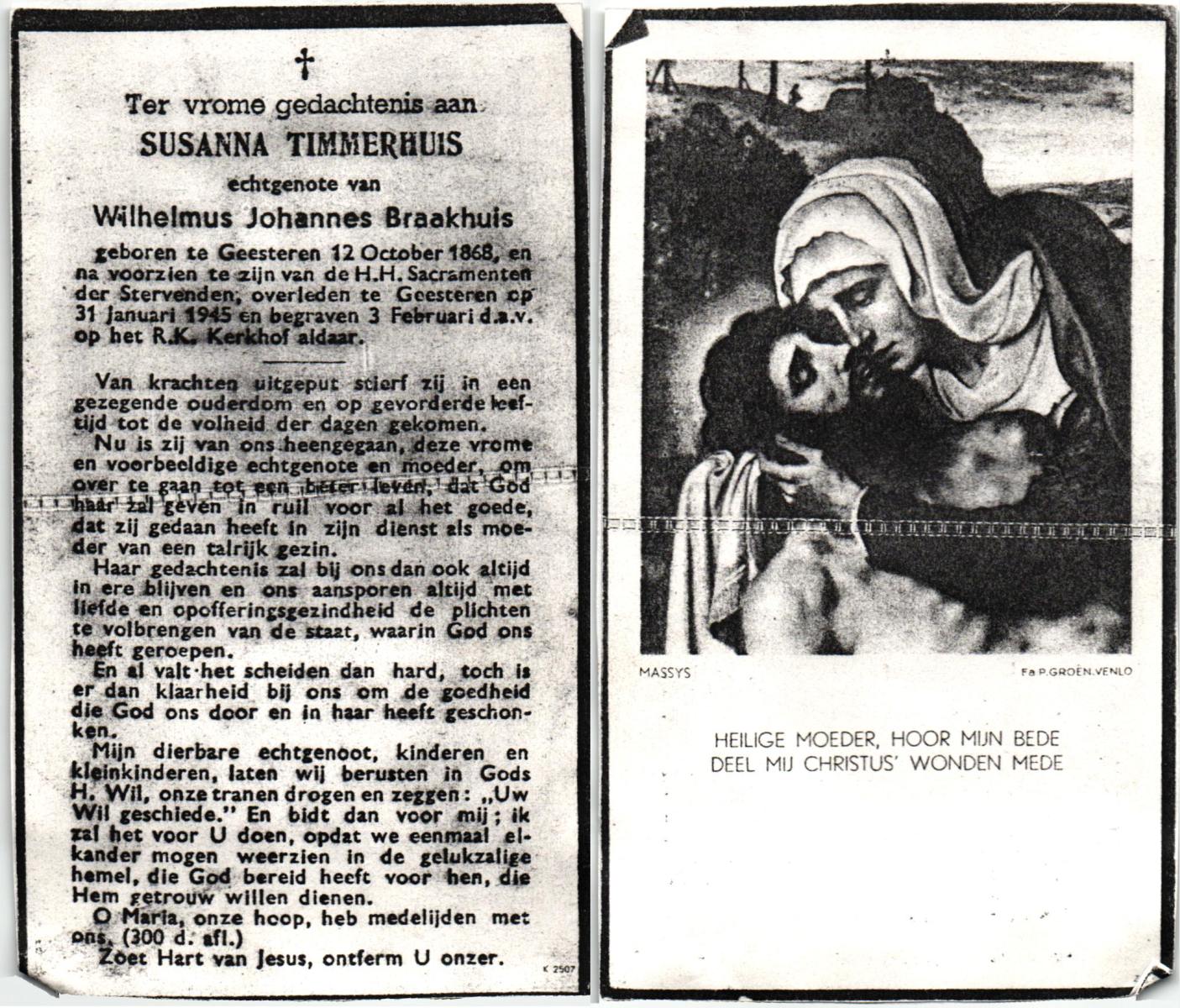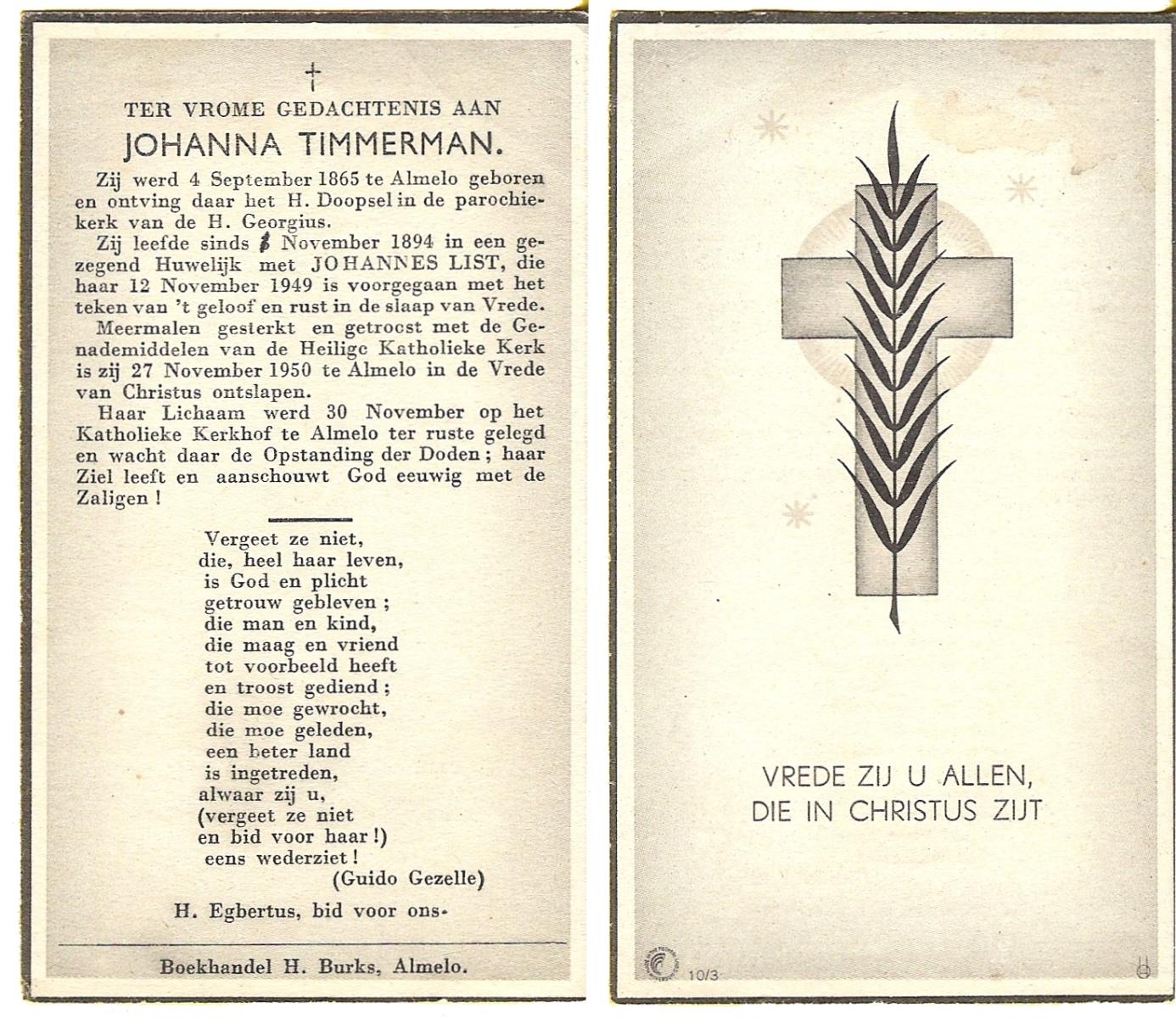 TIJHUIS, Aleida Johanna, geboren op 16-03-1888 te Noord Deurningen, overleden op 1-10-1945 te Noord Deurningen op 58-jarige leeftijd, begraven op 4-10-1945 te Denekamp.