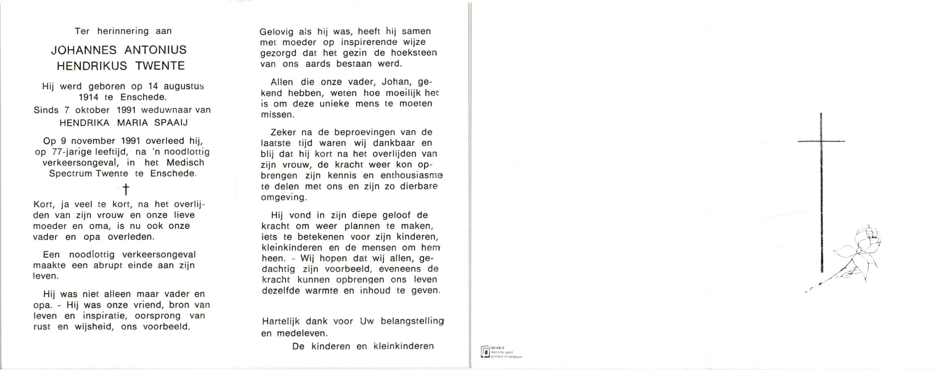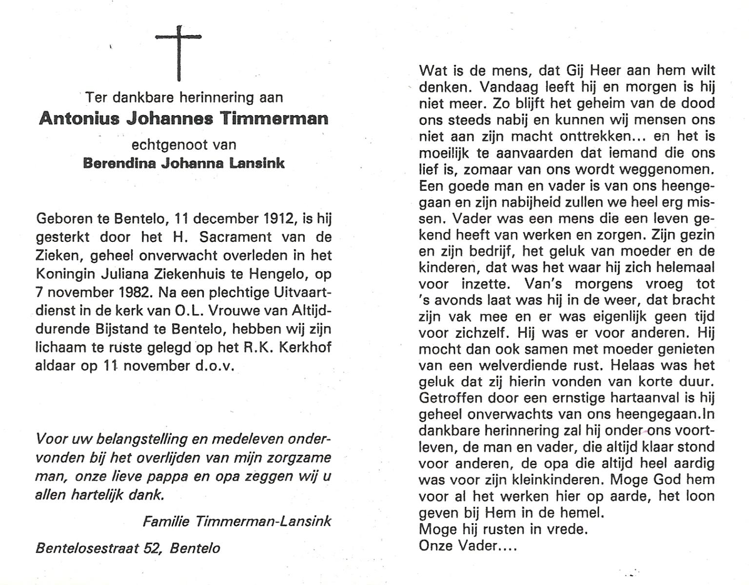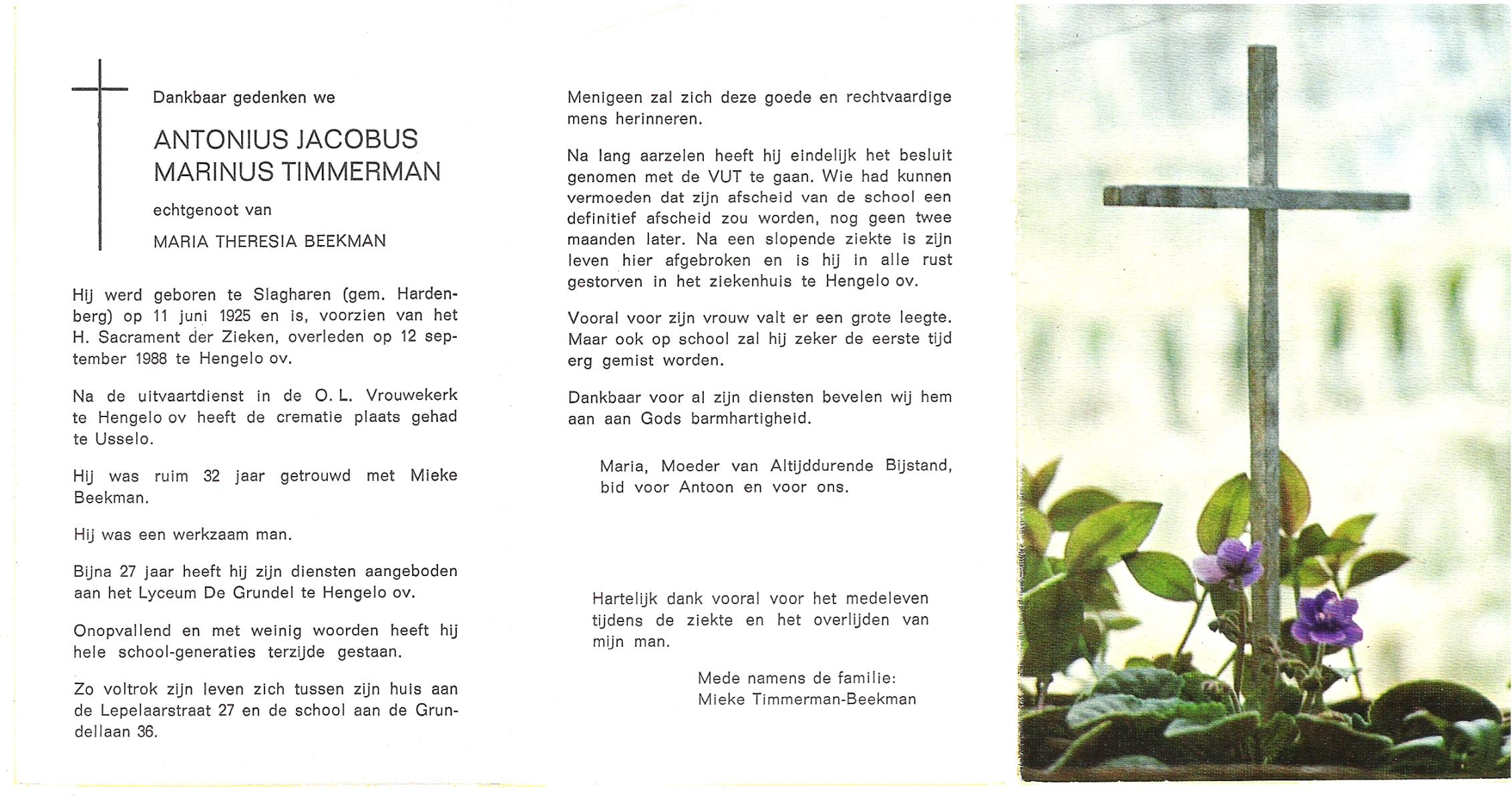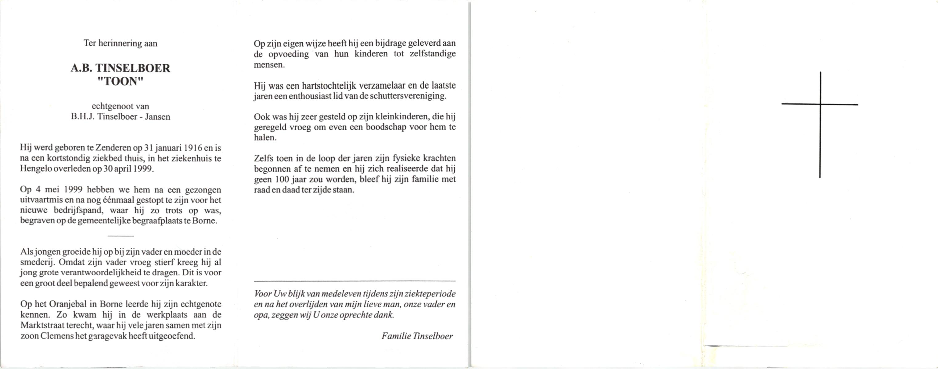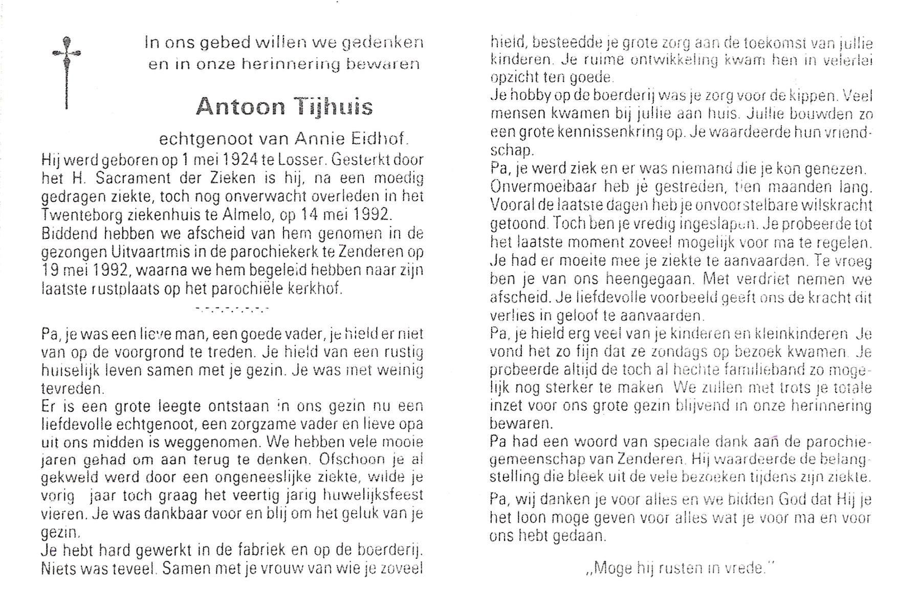 TIJHUIS, Antoon, geboren op 1-5-1924 te Losser, overleden op 14-5-1992 te Almelo op 68-jarige leeftijd, begraven op 19-5-1992 te Zenderen.