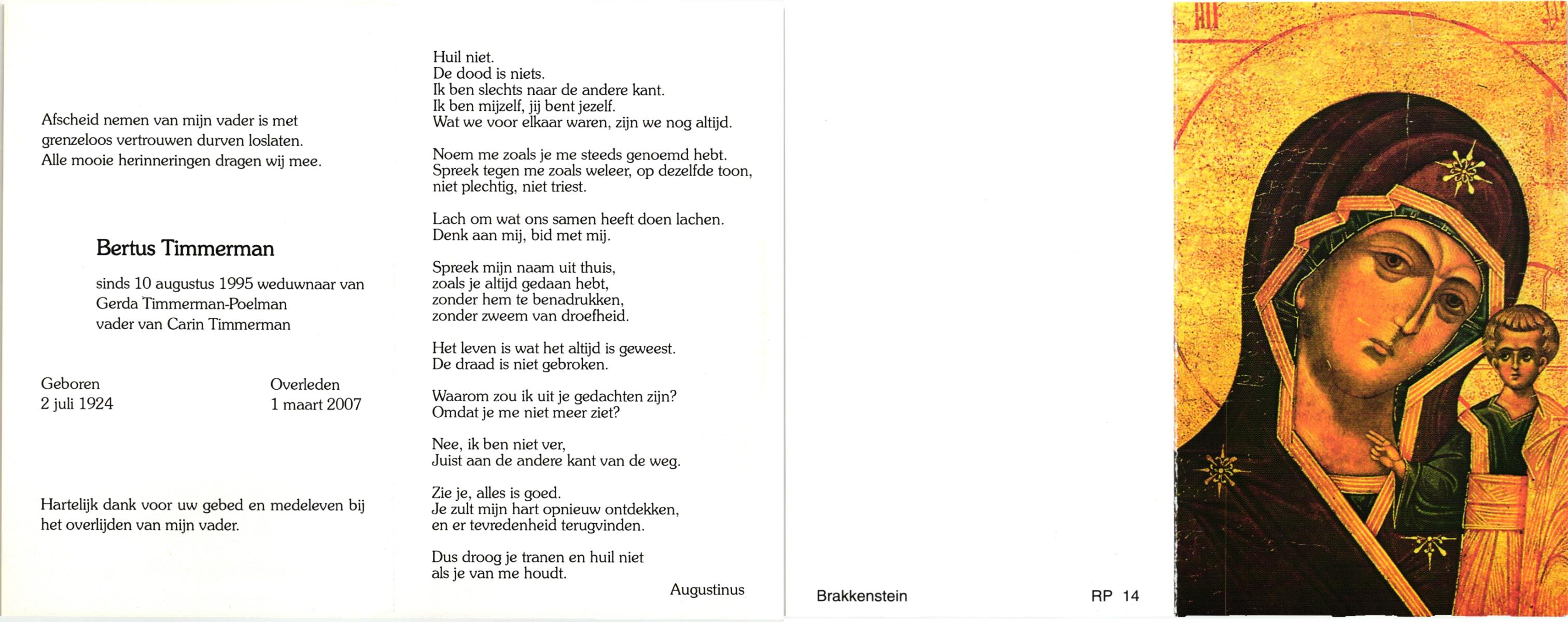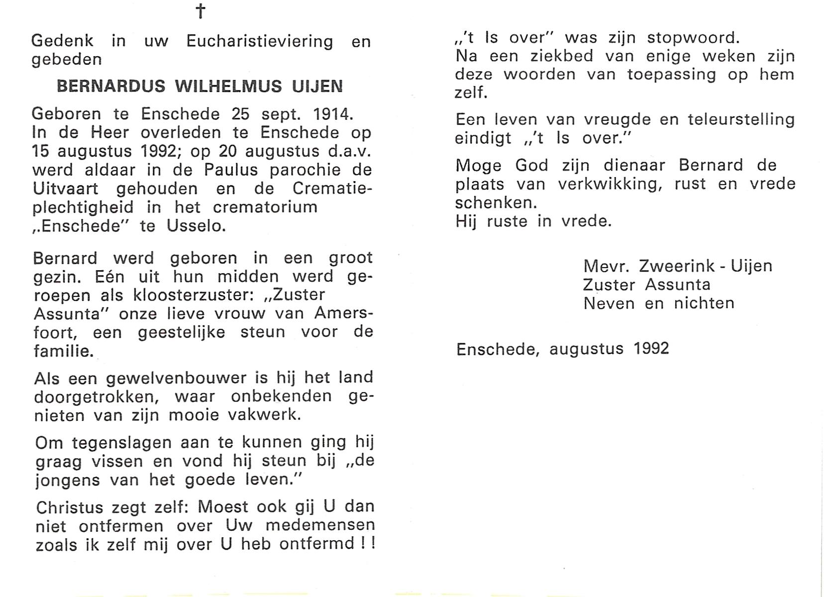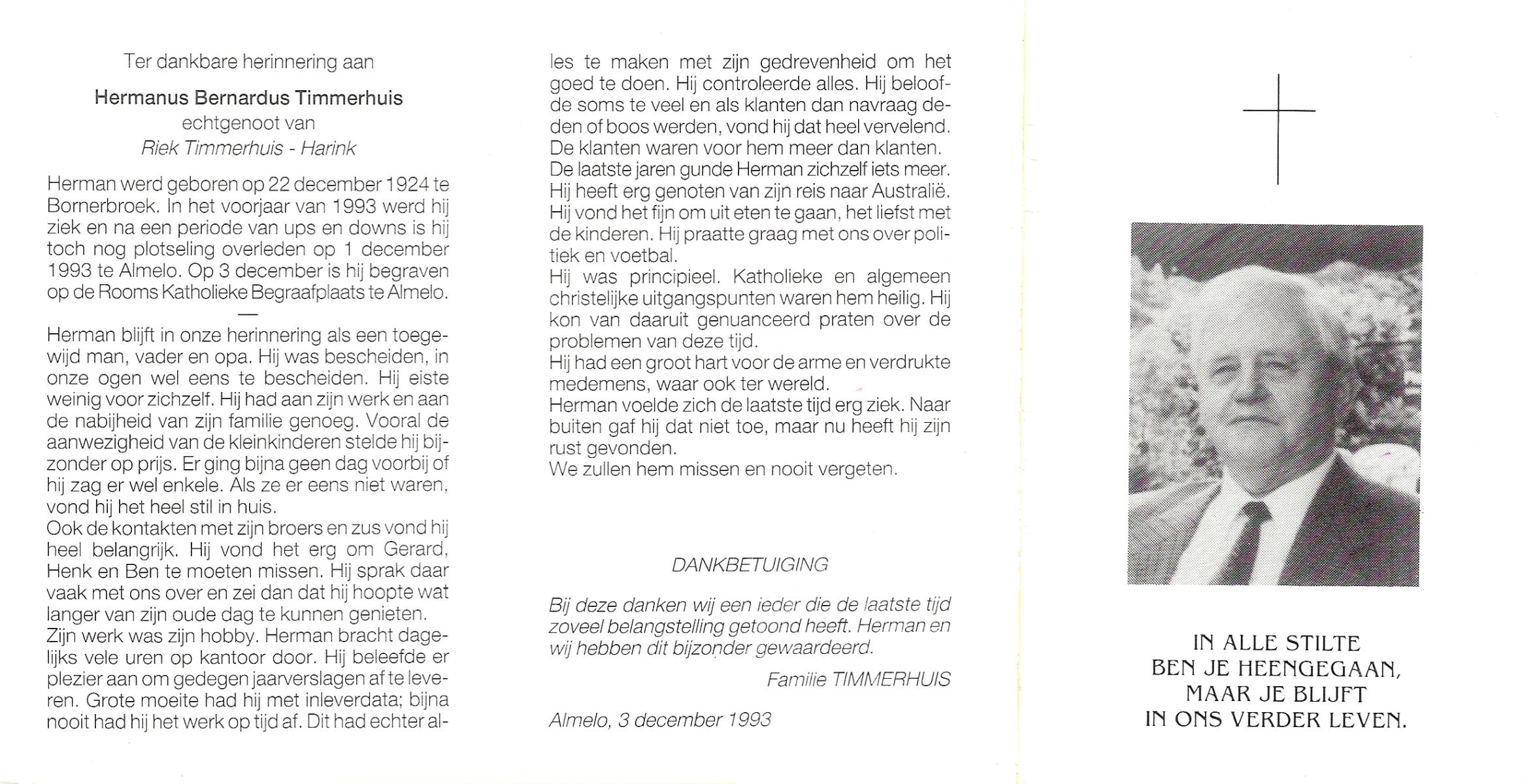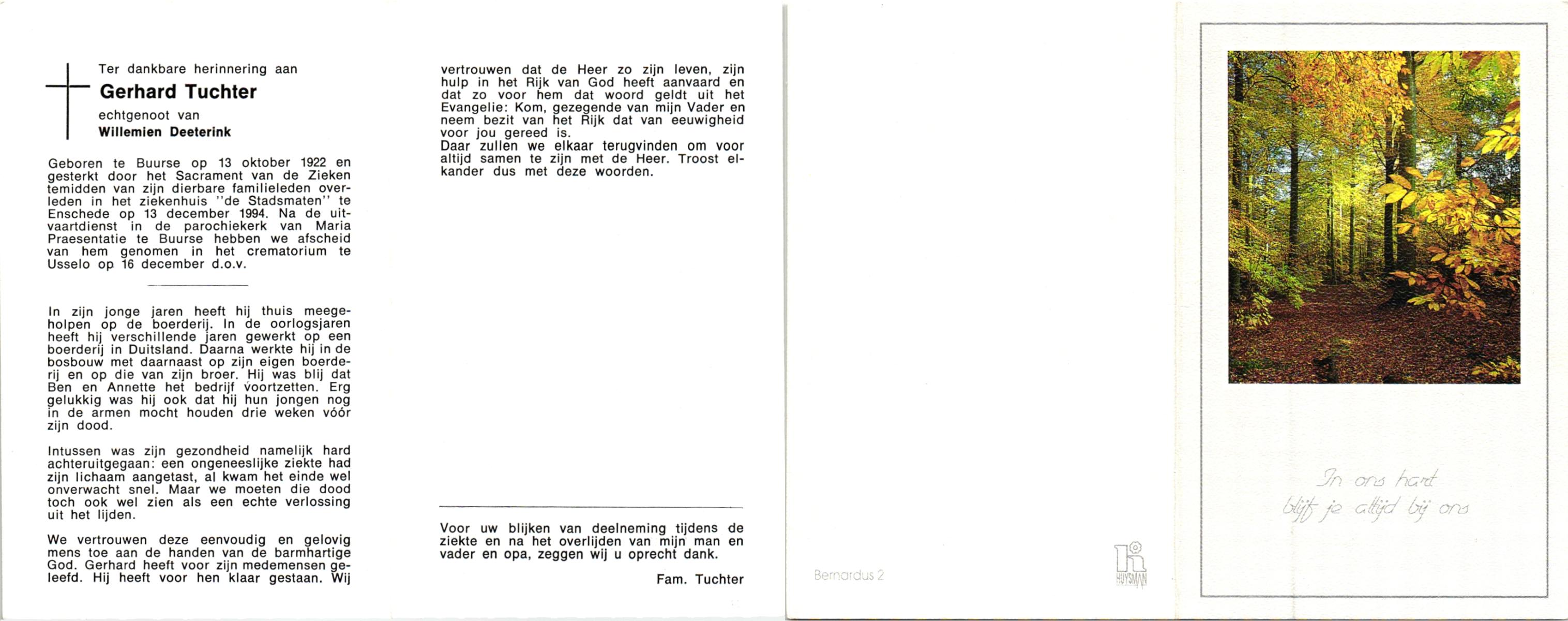 TIJHUIS, Bernard, geboren op 9-2-1920 te Beuningen (Ov.), overleden op 24-12-1995 te Enschede op 75-jarige leeftijd, begraven op 29-12-1995 te Denekamp.
