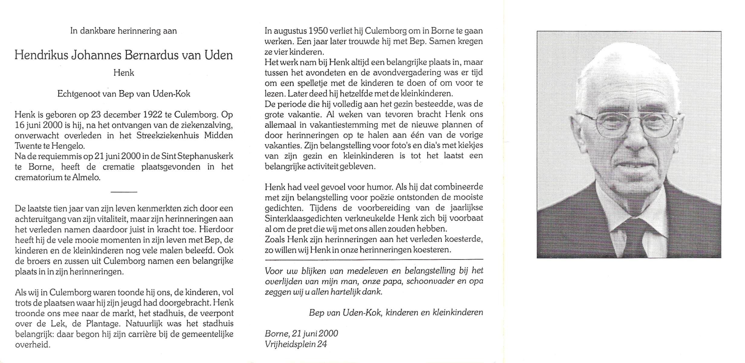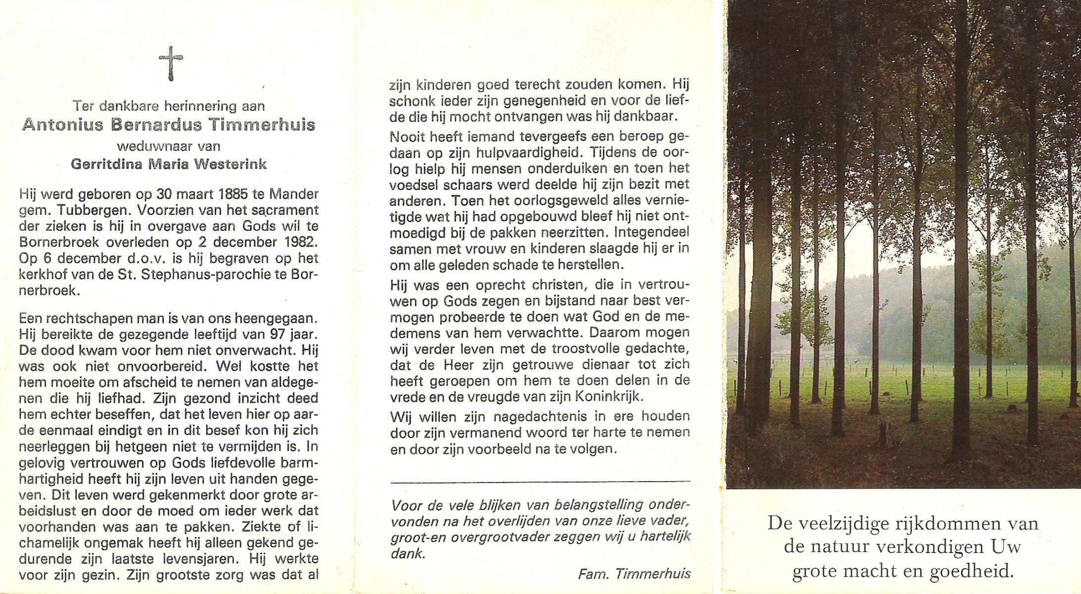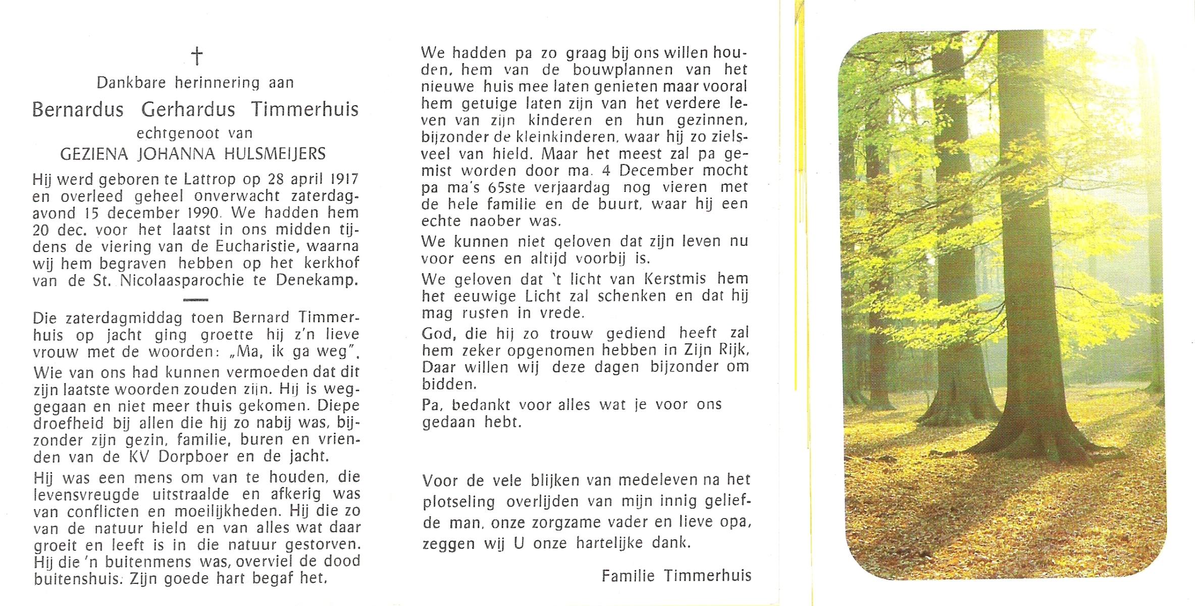 TIJHUIS, Bernard, geboren op 25-5-1921 te Noord Deurningen, overleden op 8-11-2000 te Noord Deurningen op 79-jarige leeftijd, begraven op 13-11-2000 te Denekamp R.K.kerkhof.