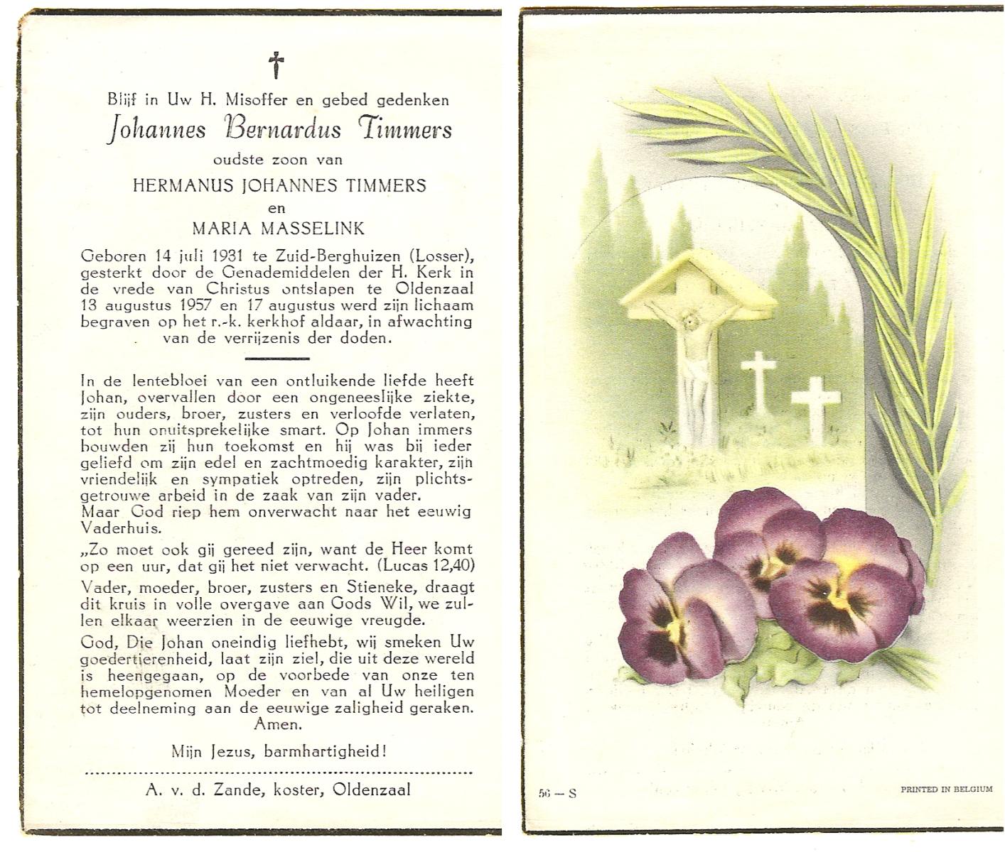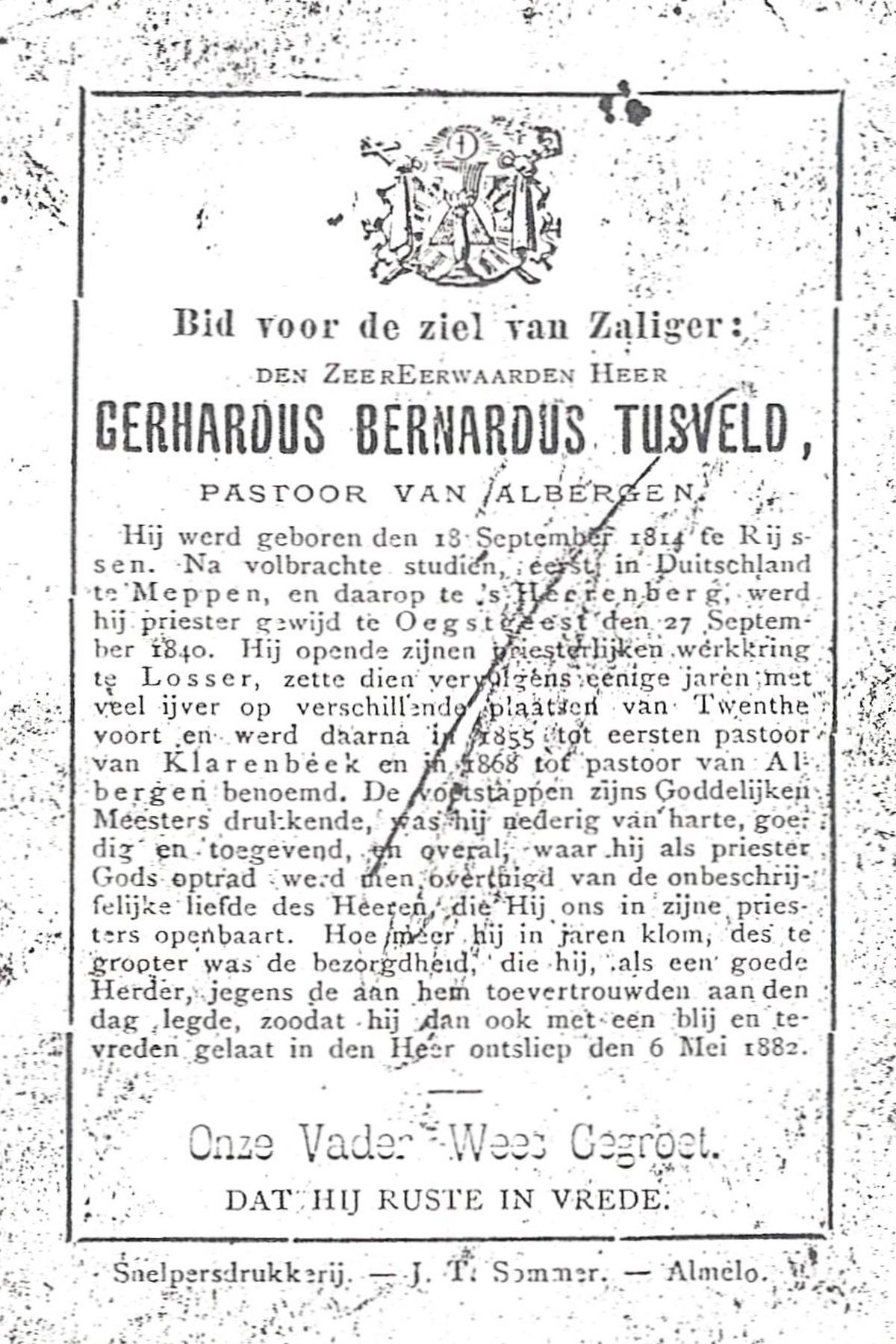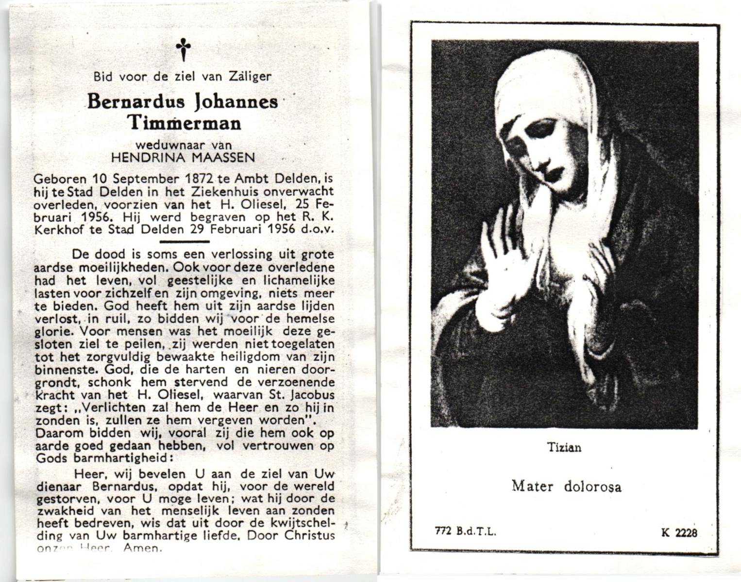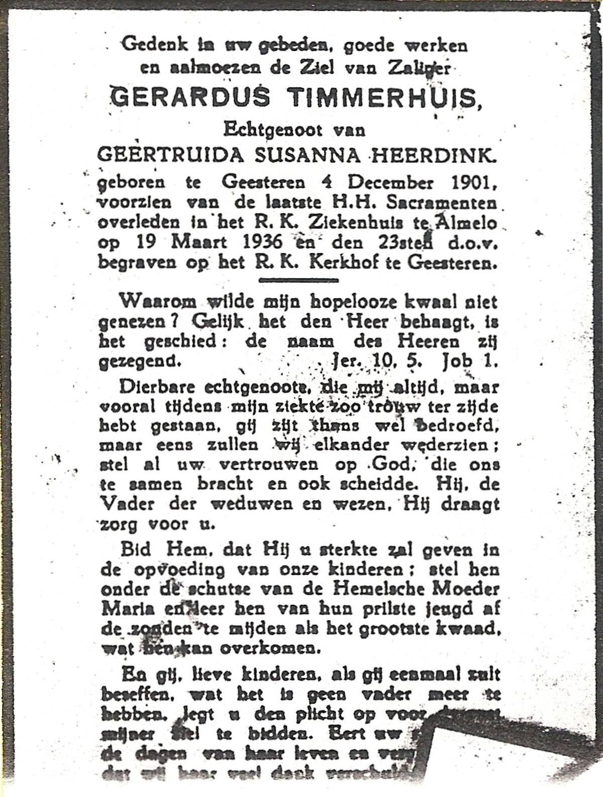 TIJHUIS, Bernardus, geboren op 30-05-1883 te Beuningen (Ov.), overleden op 30-11-1957 te Oldenzaal op 74-jarige leeftijd, begraven op 4-12-1957.