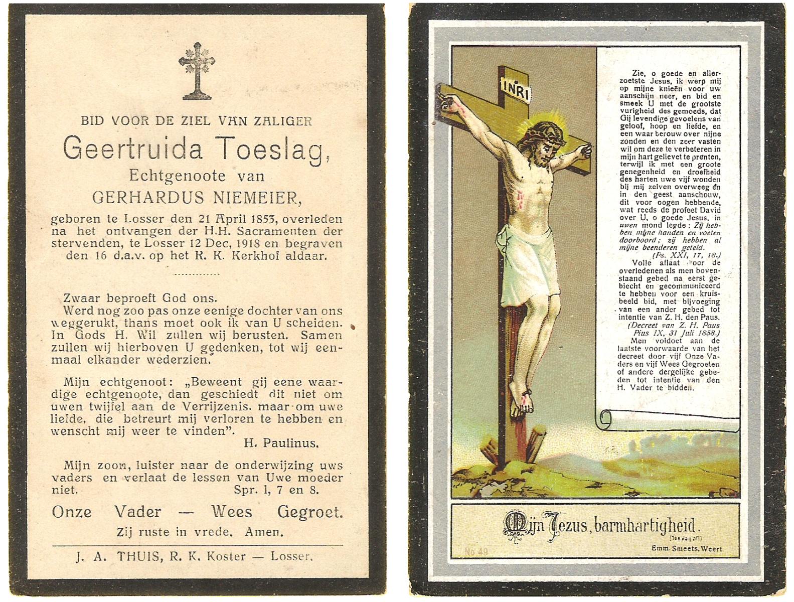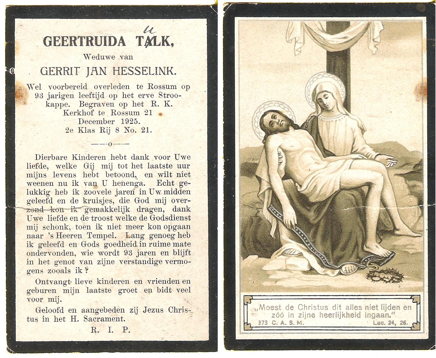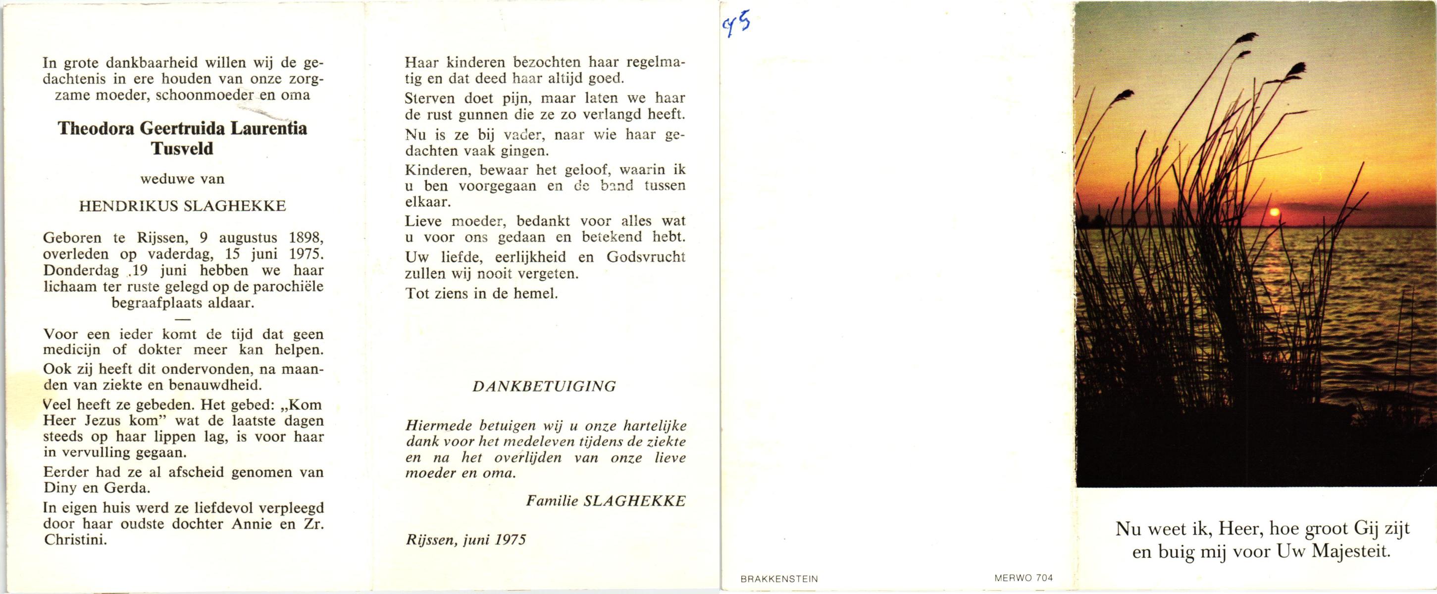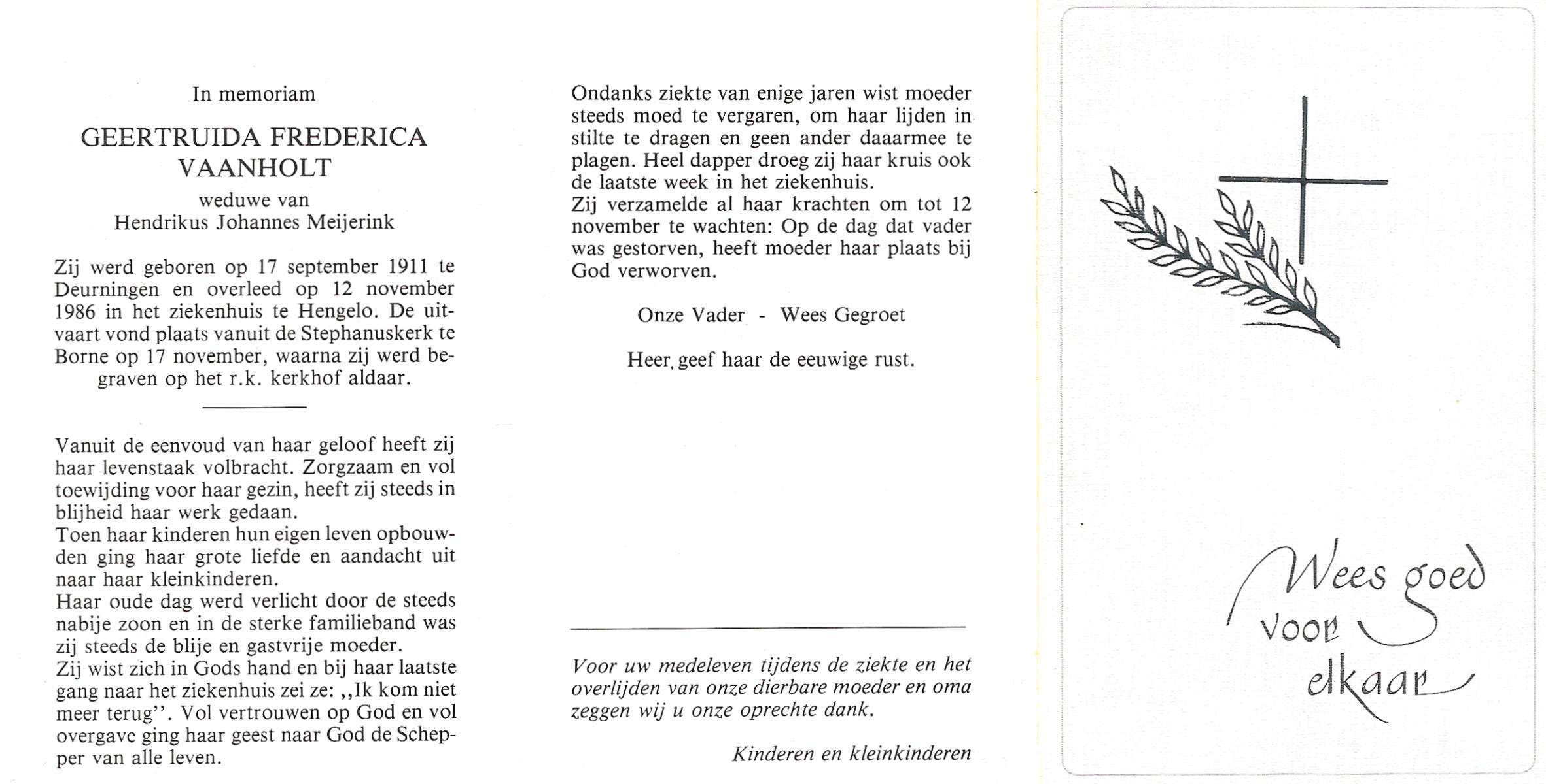 TIJHUIS, Geertruida Maria, geboren op 05-02-1888 te Langeveen, overleden op 3-2-1975 te Saasveld op 86-jarige leeftijd.