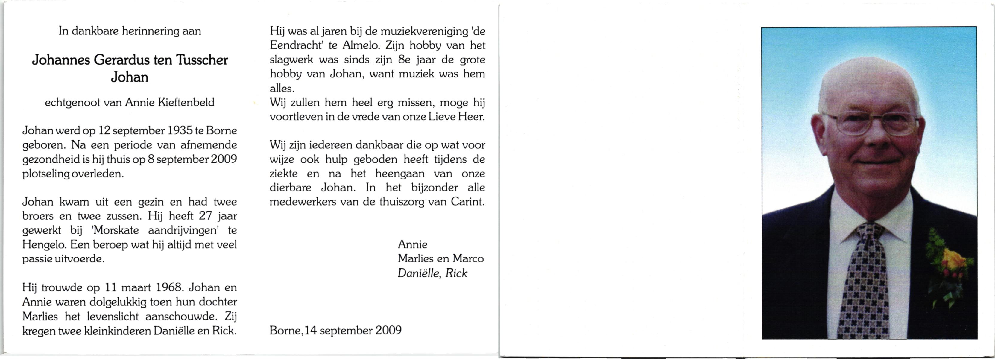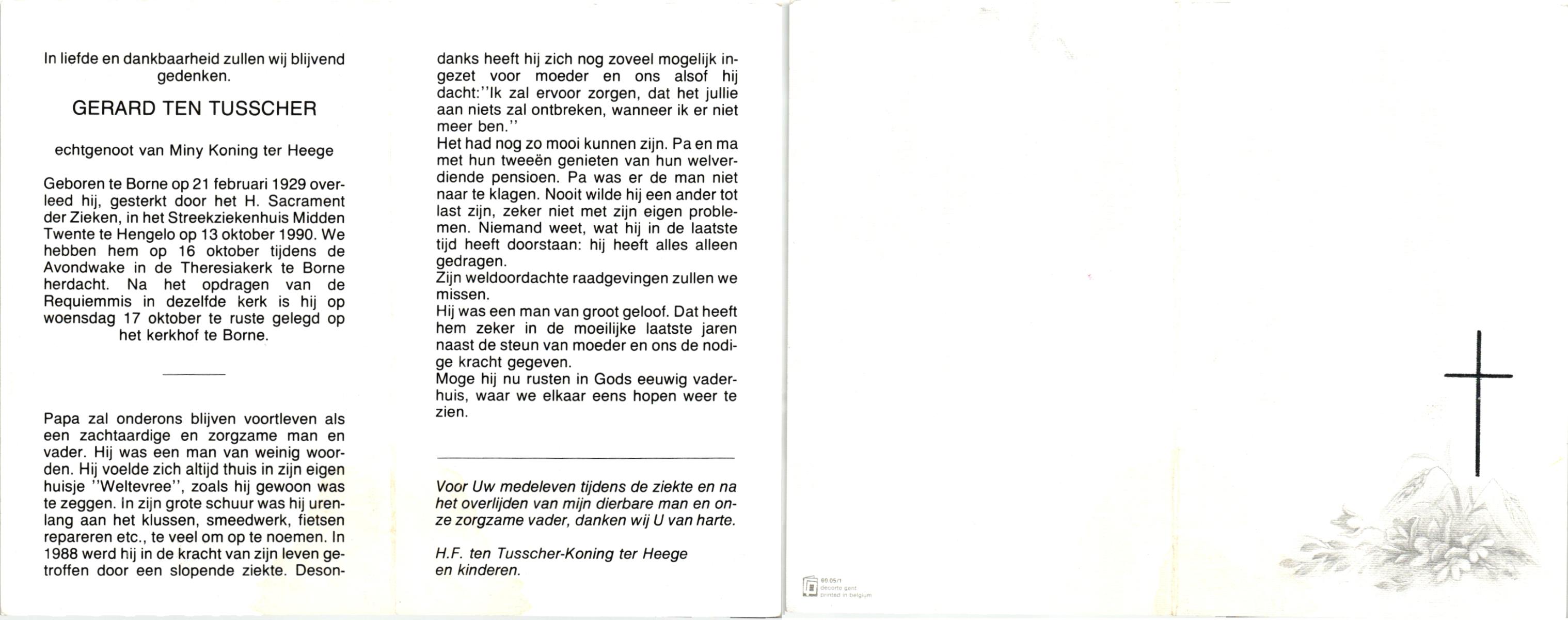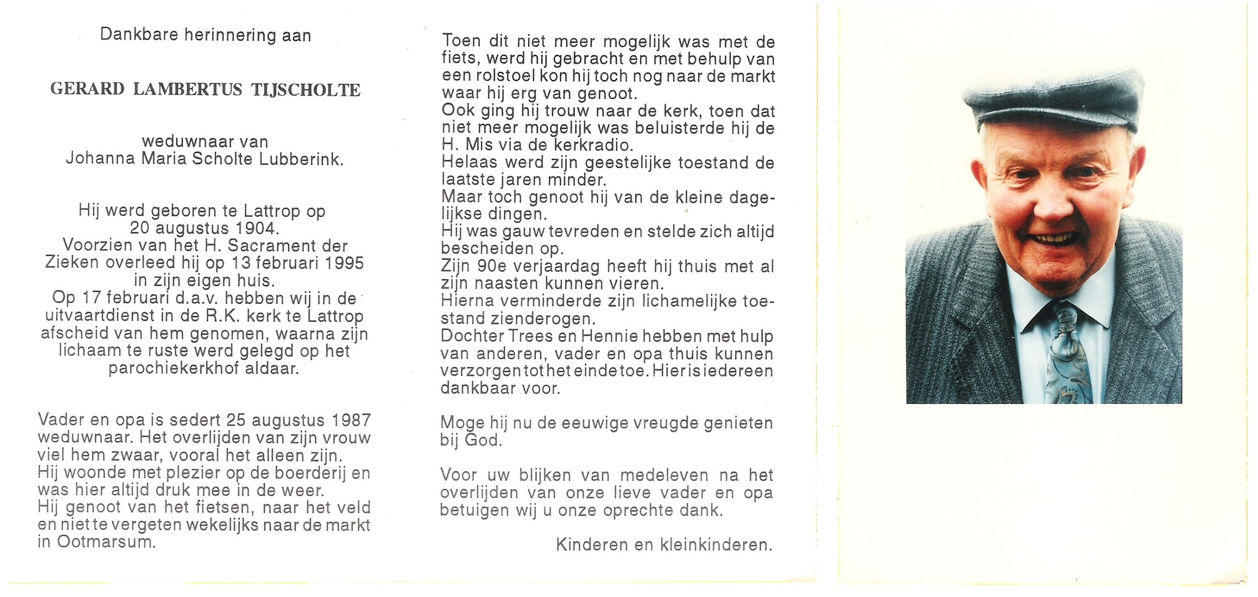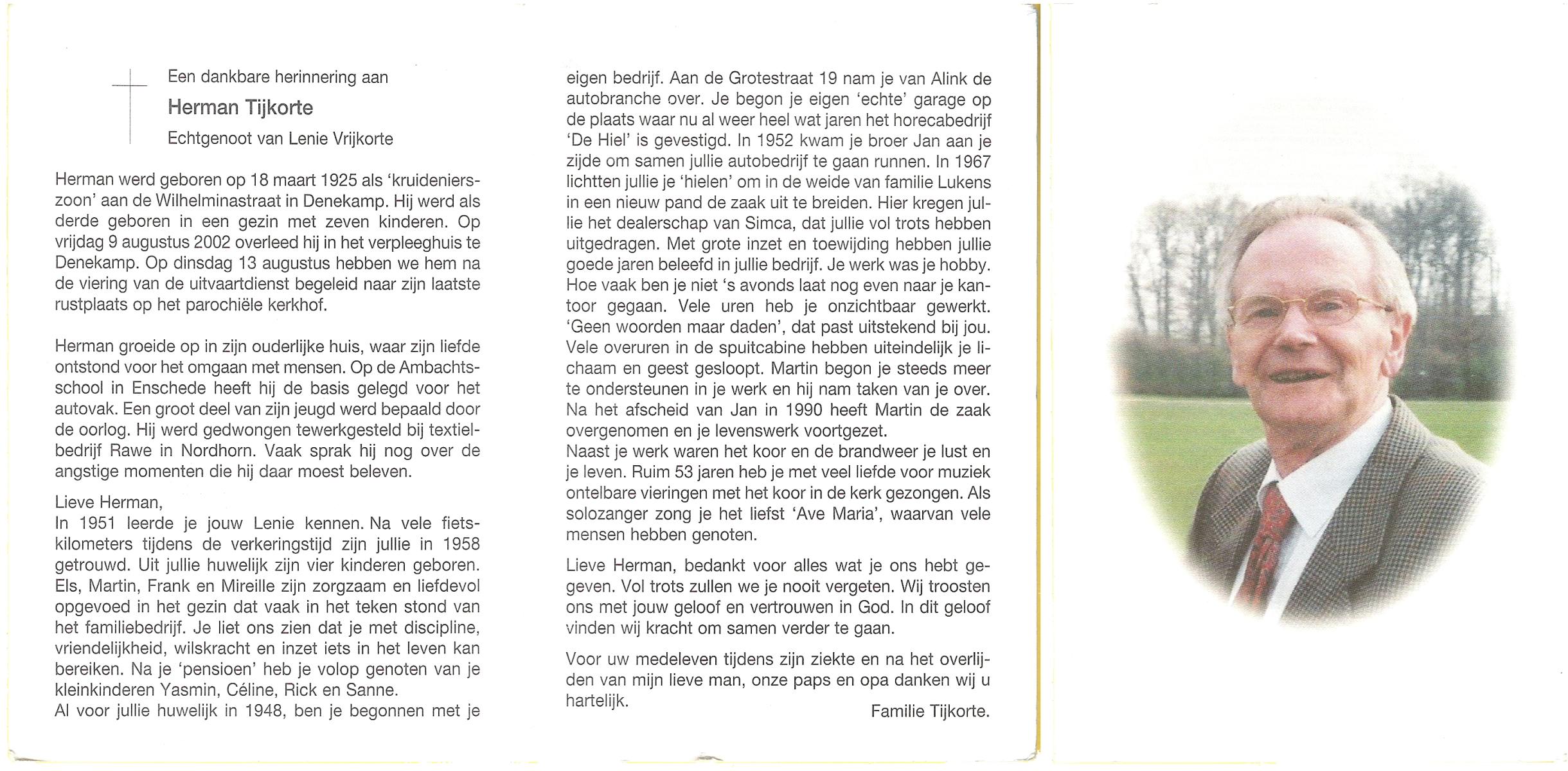 TIJHUIS, Gerard, geboren op 12-6-1931 te de Mekkelhorst, overleden op 22-2-2002 te Denekamp op 70-jarige leeftijd.