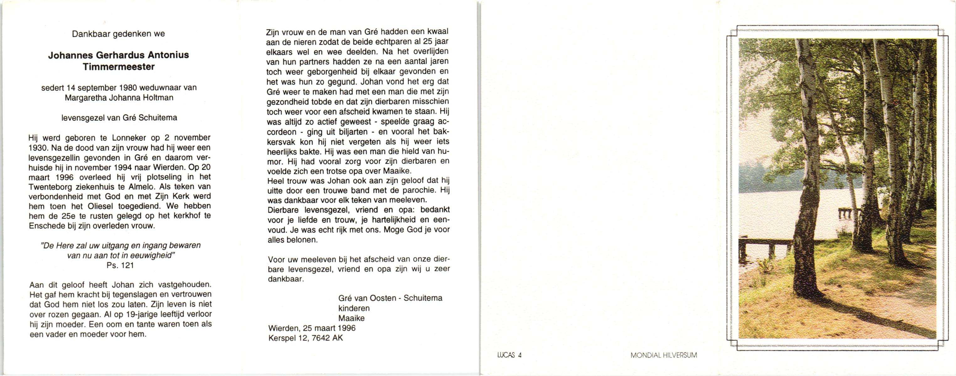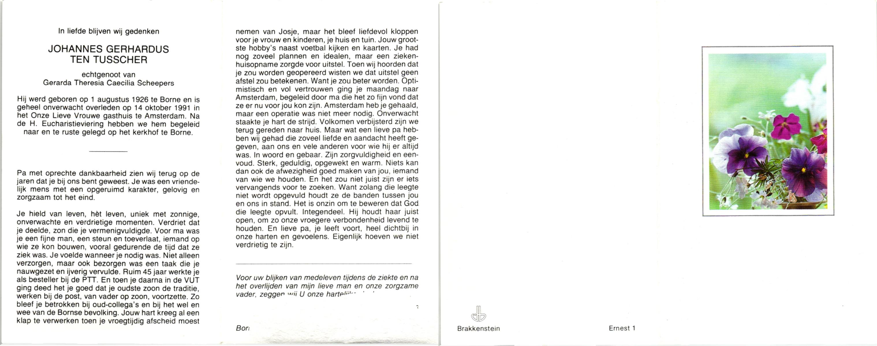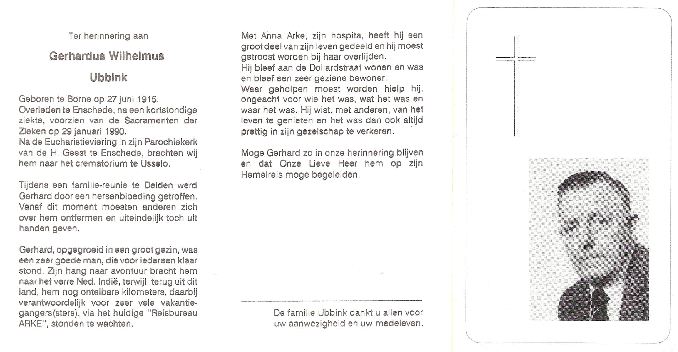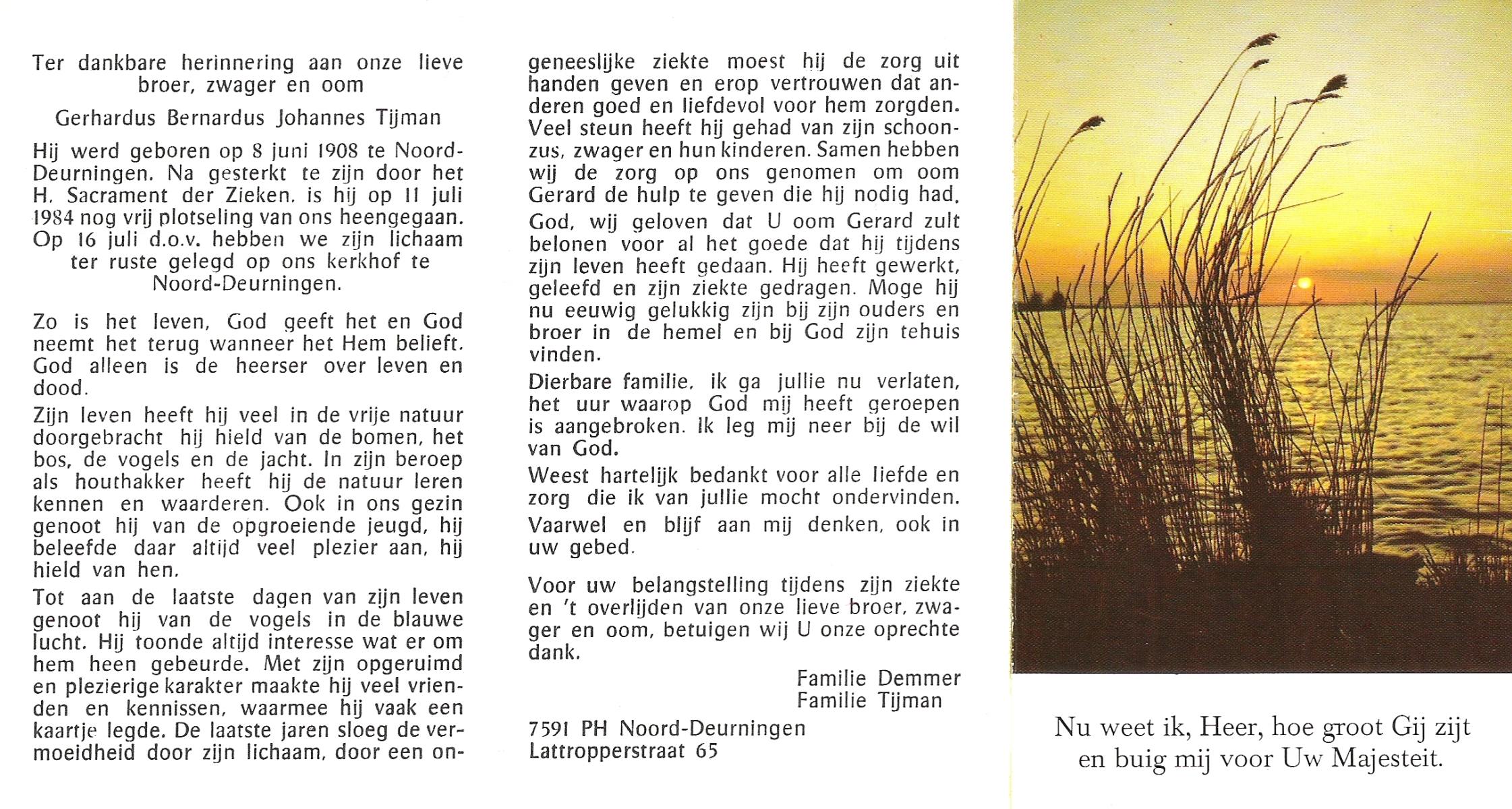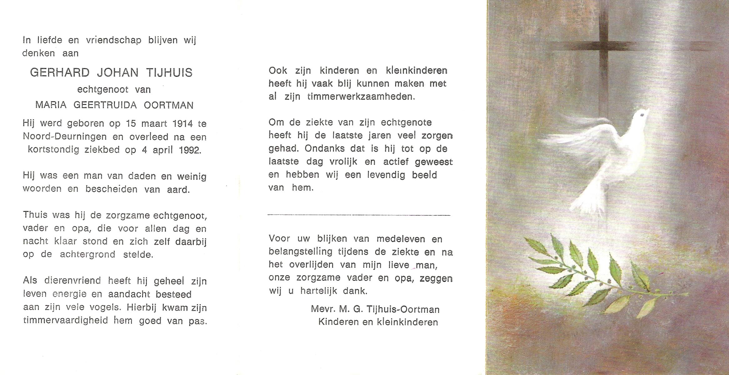 TIJHUIS, Gerhard Johan, geboren op 15-3-1914 te Noord Deurningen, overleden op 4-4-1992 op 78-jarige leeftijd.