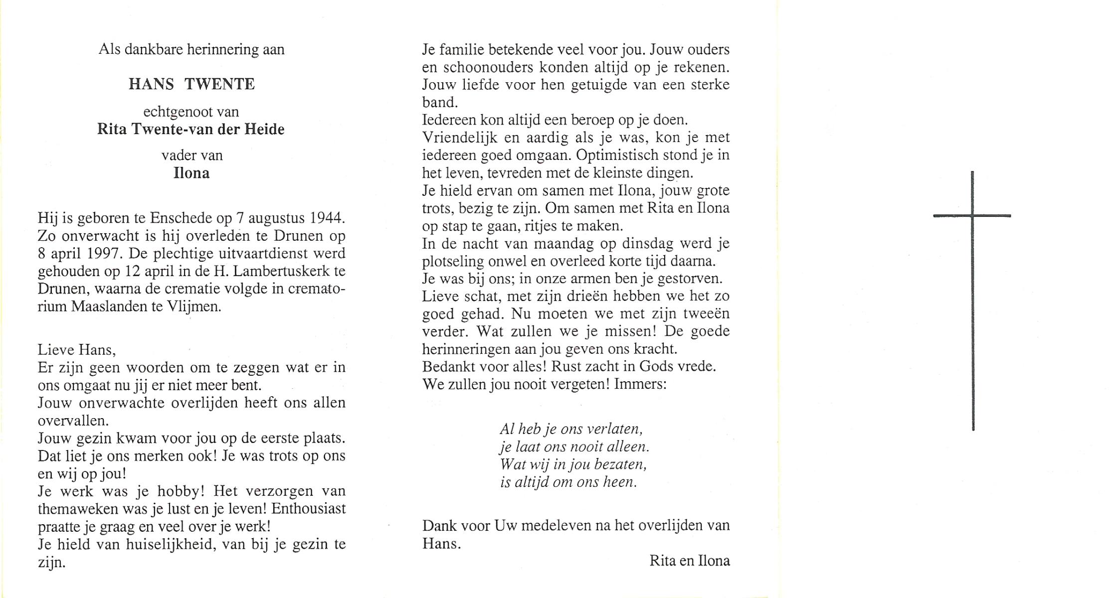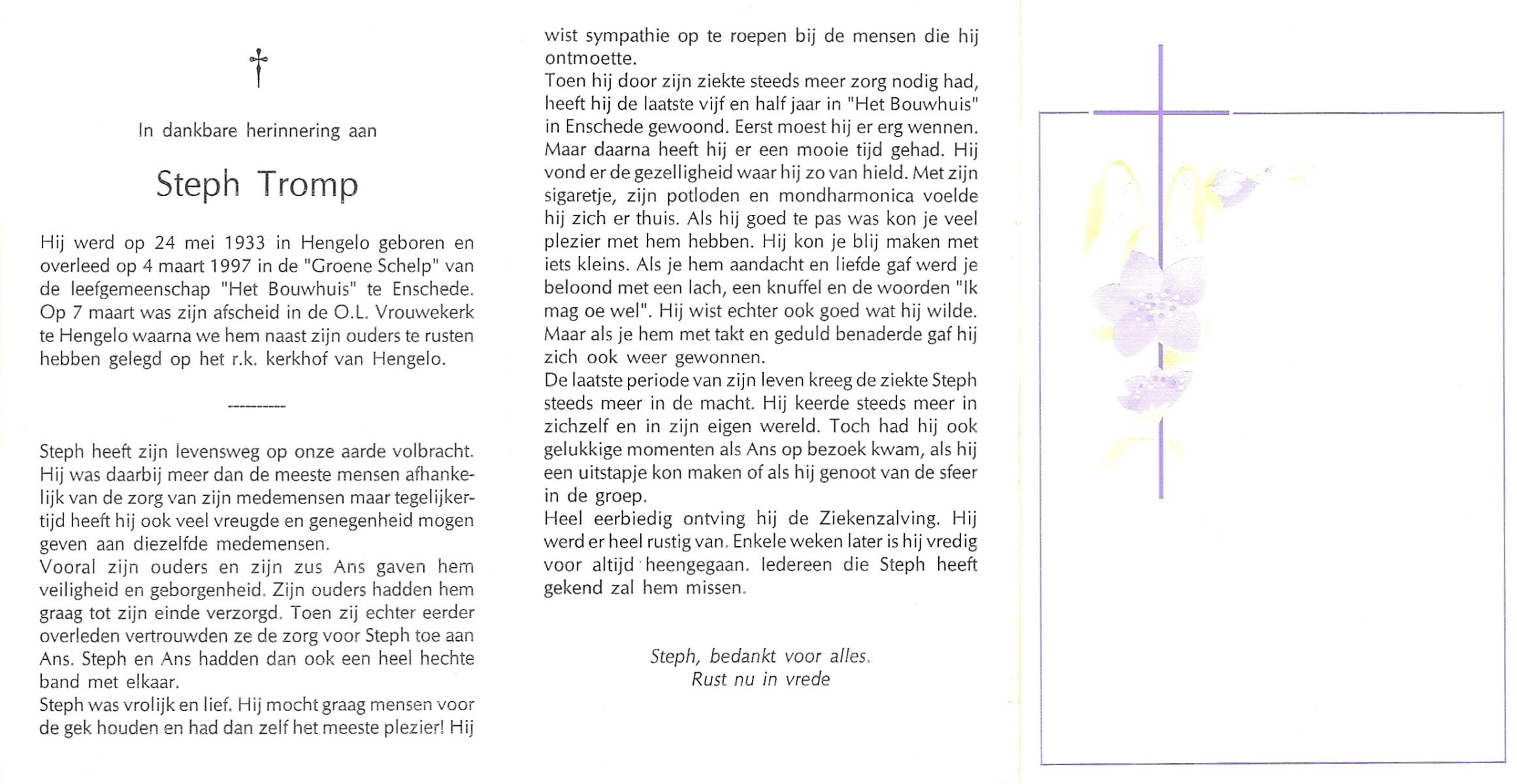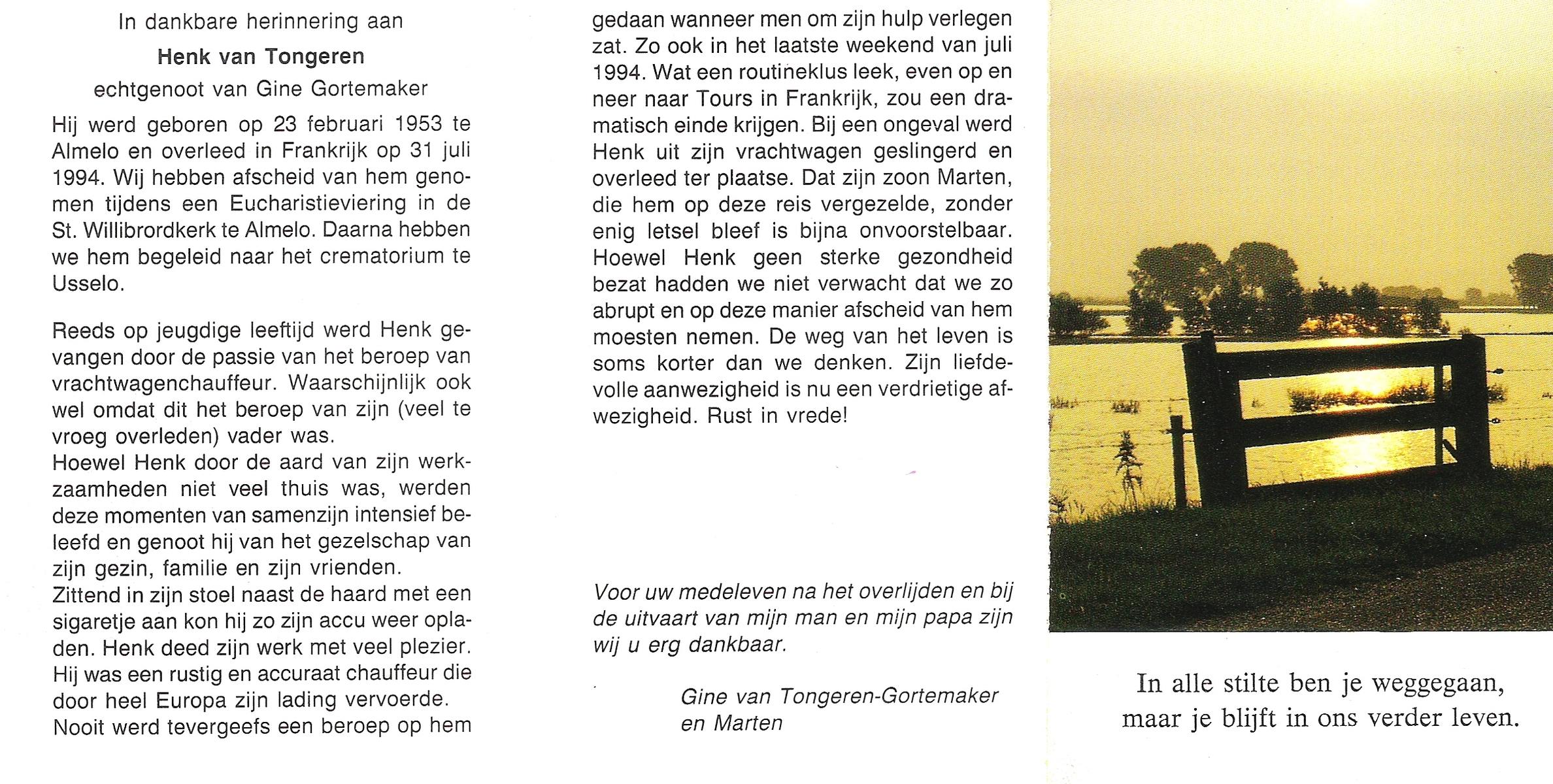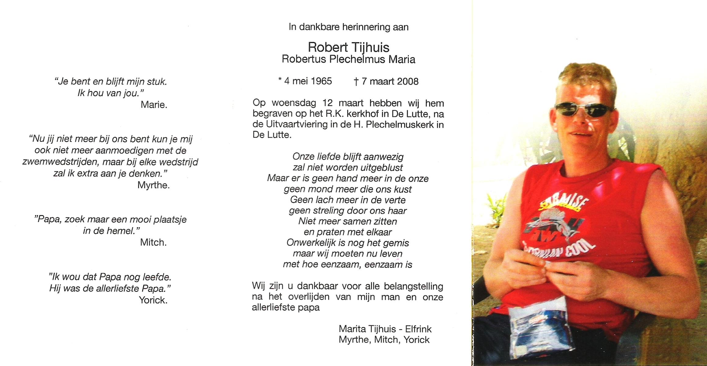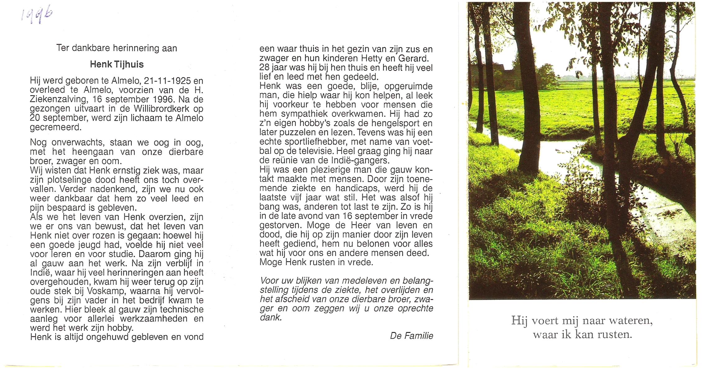 TIJHUIS, Henk, geboren op 21-11-1925 te Almelo, overleden op 16-9-1996 te Almelo op 70-jarige leeftijd, gecremeerd op 20-9-1996 te Almelo.