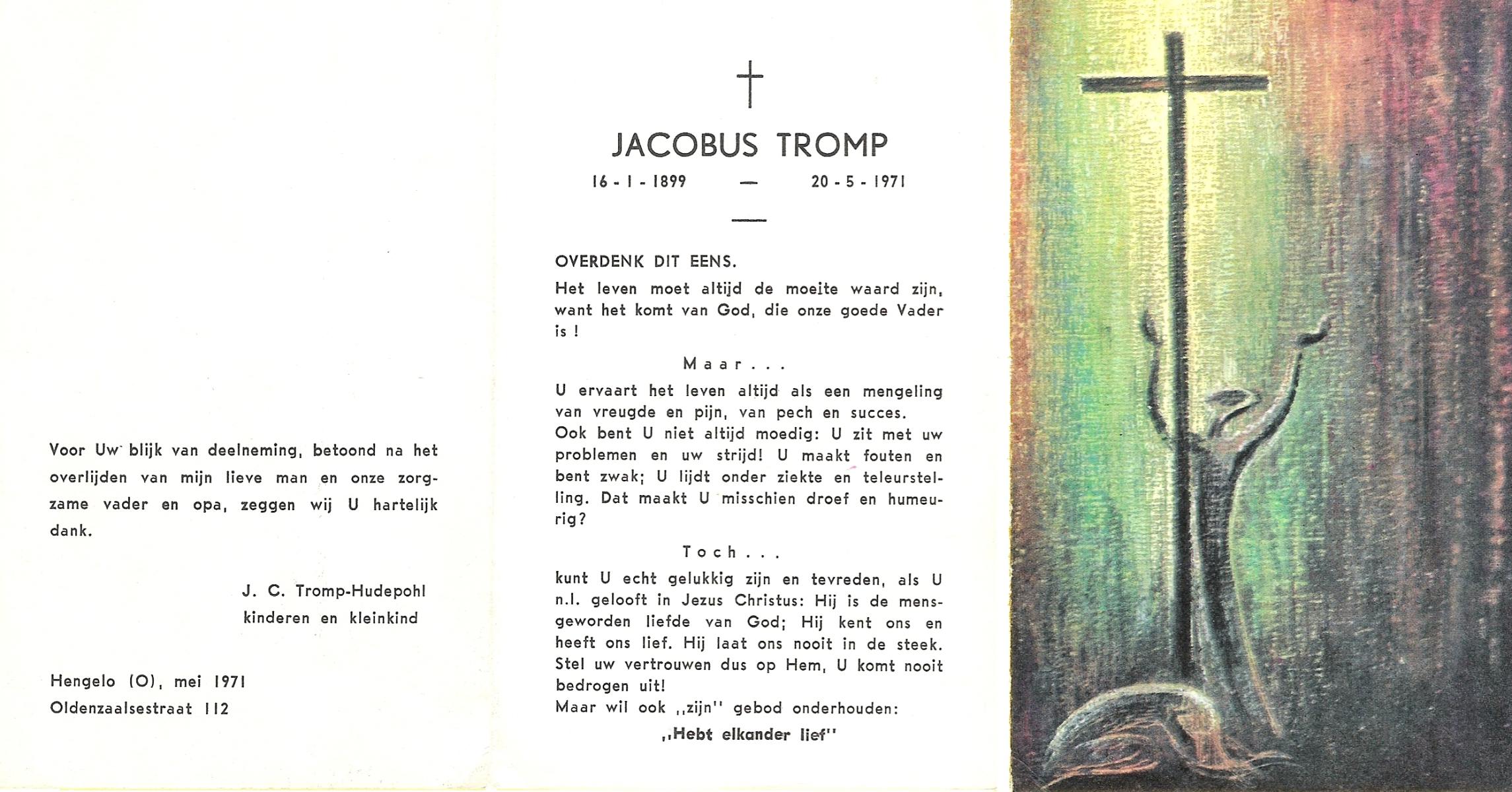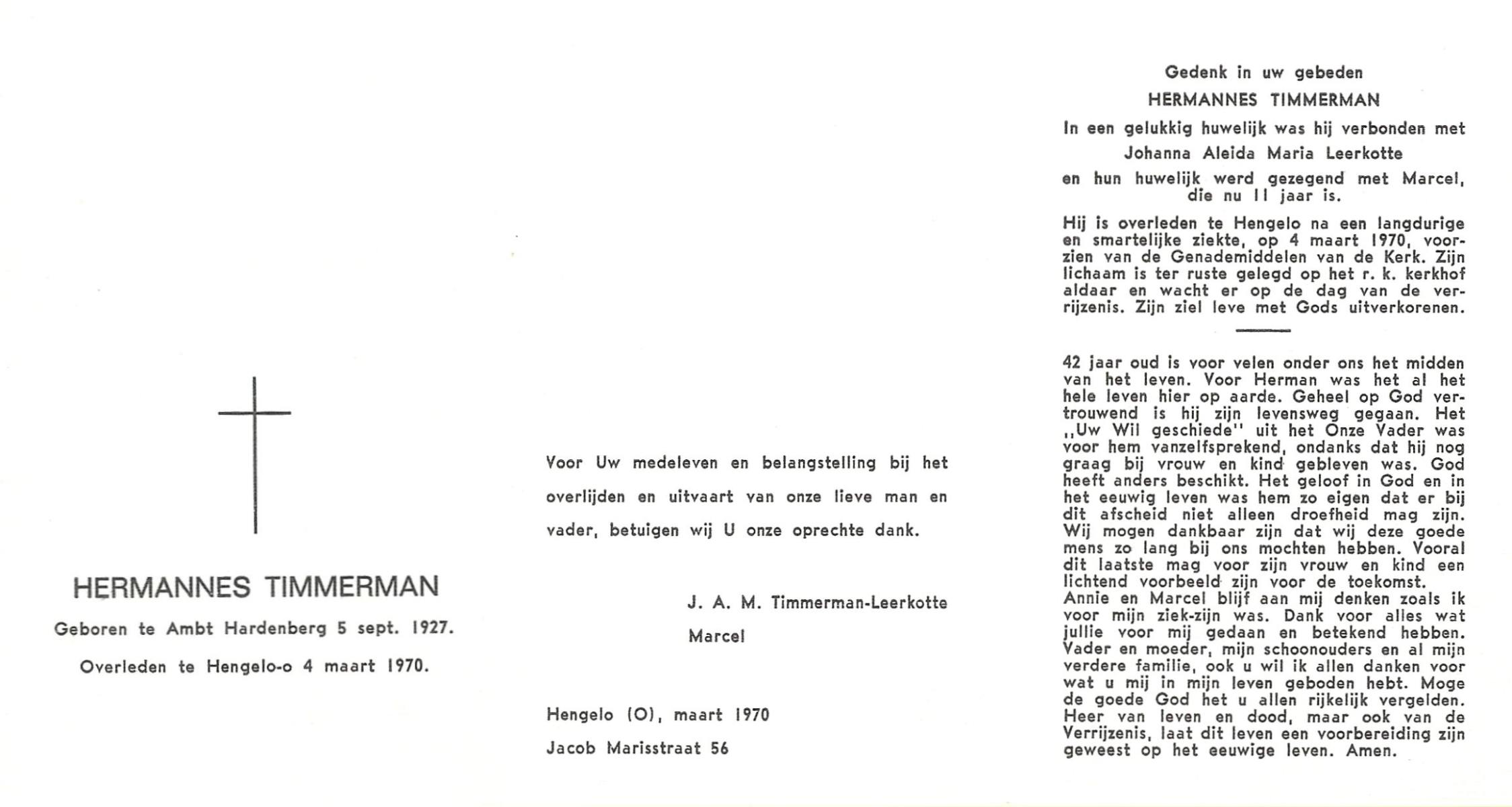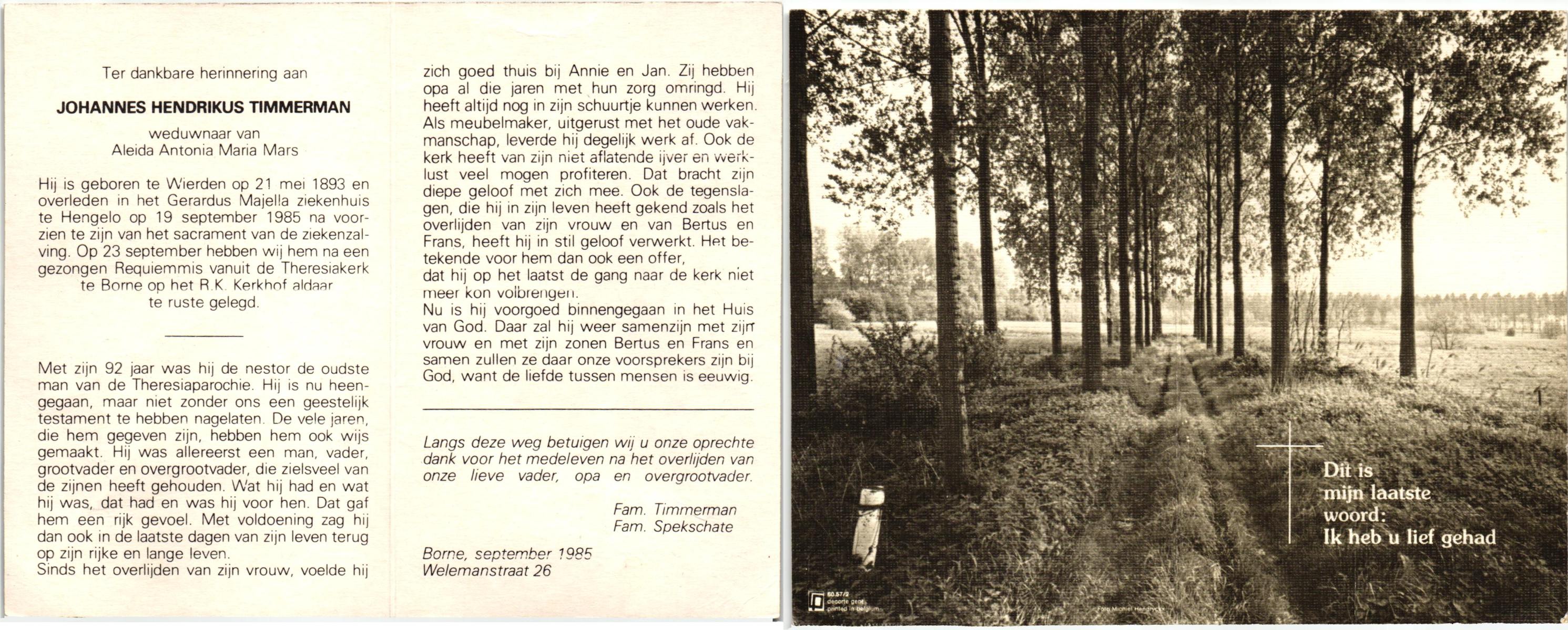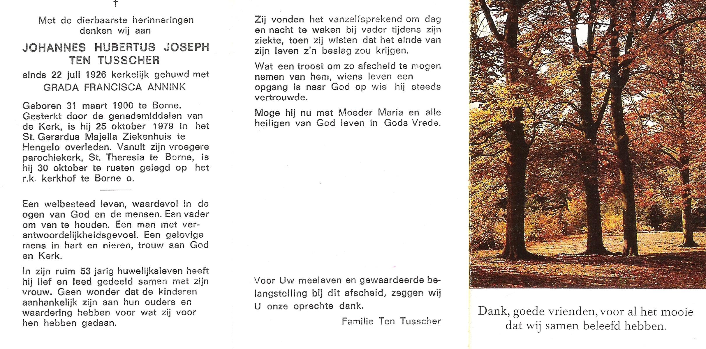 TIJHUIS, Johannes Hendrikus, geboren op 11-10-1903 te Denekamp, overleden op 17-3-1981 op 77-jarige leeftijd, begraven op 21-3-1981 te Denekamp R.K.kerkhof.