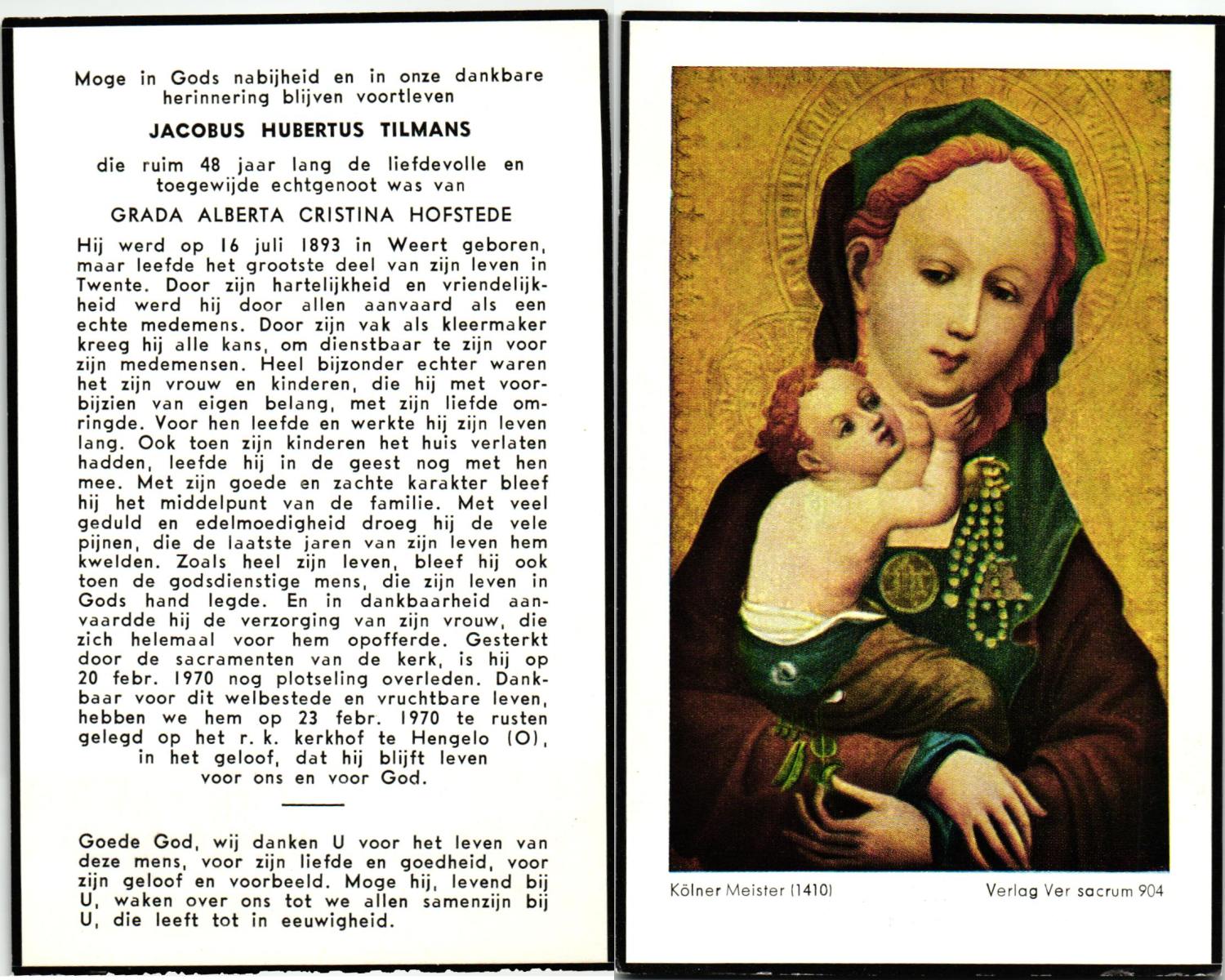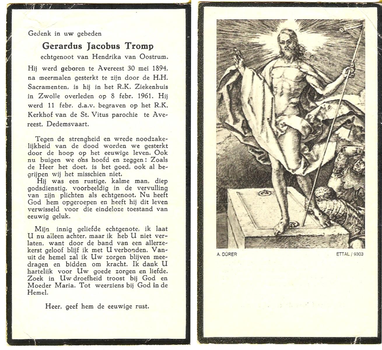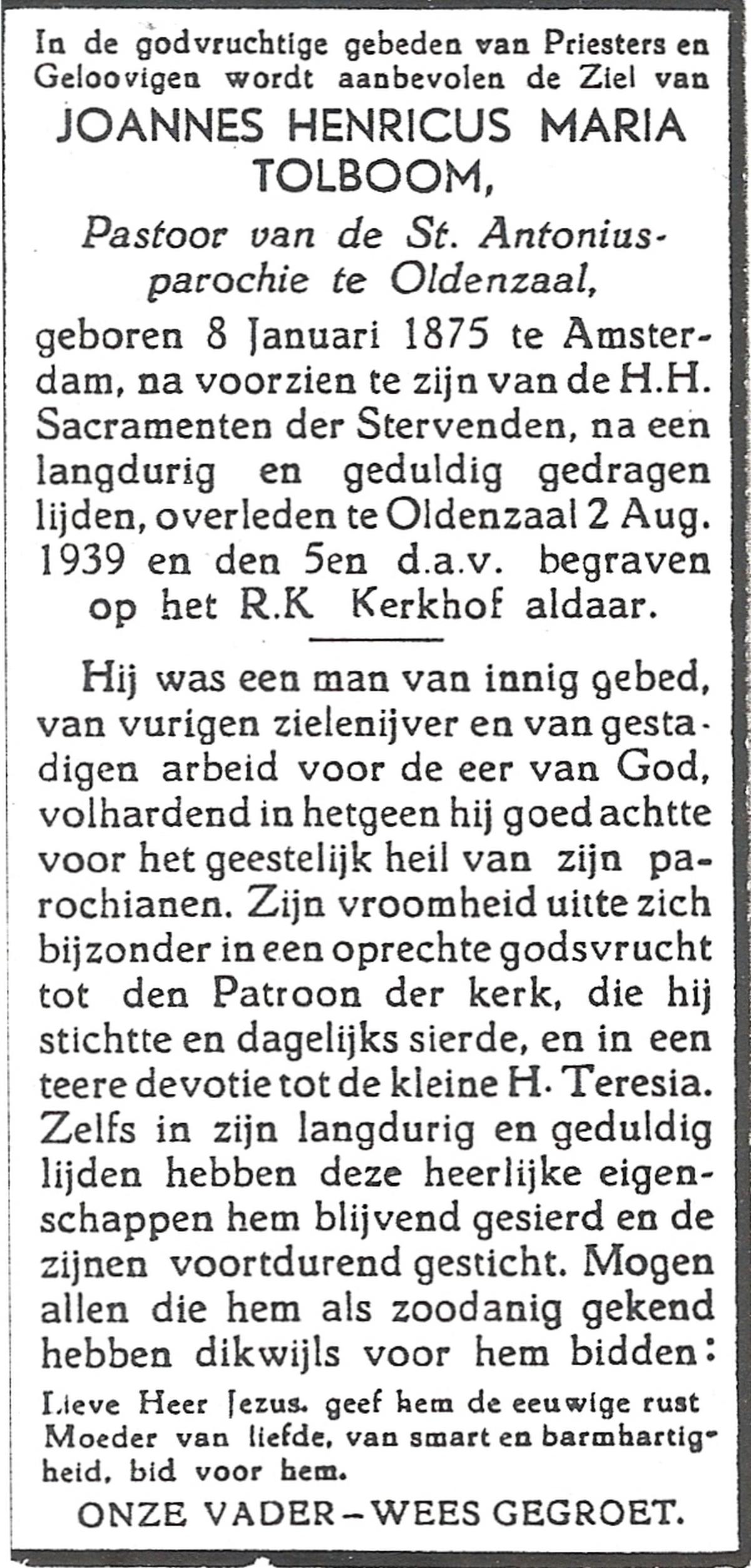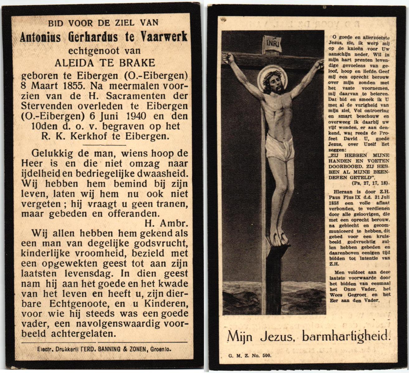 TIJINK, Antonius Gerhardus, geboren op 12-06-1895 te Almelo, overleden op 6-6-1958 te Almelo op 62-jarige leeftijd, begraven op 11-6-1958 te Almelo R.K.Kerkhof.