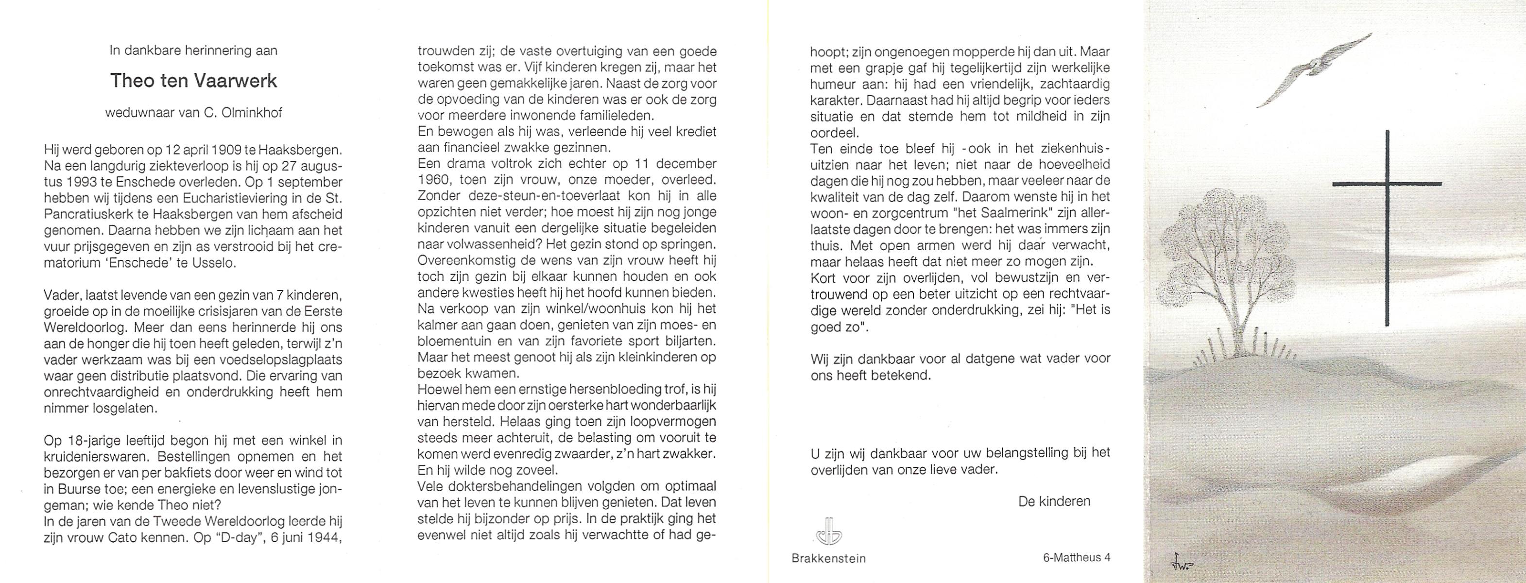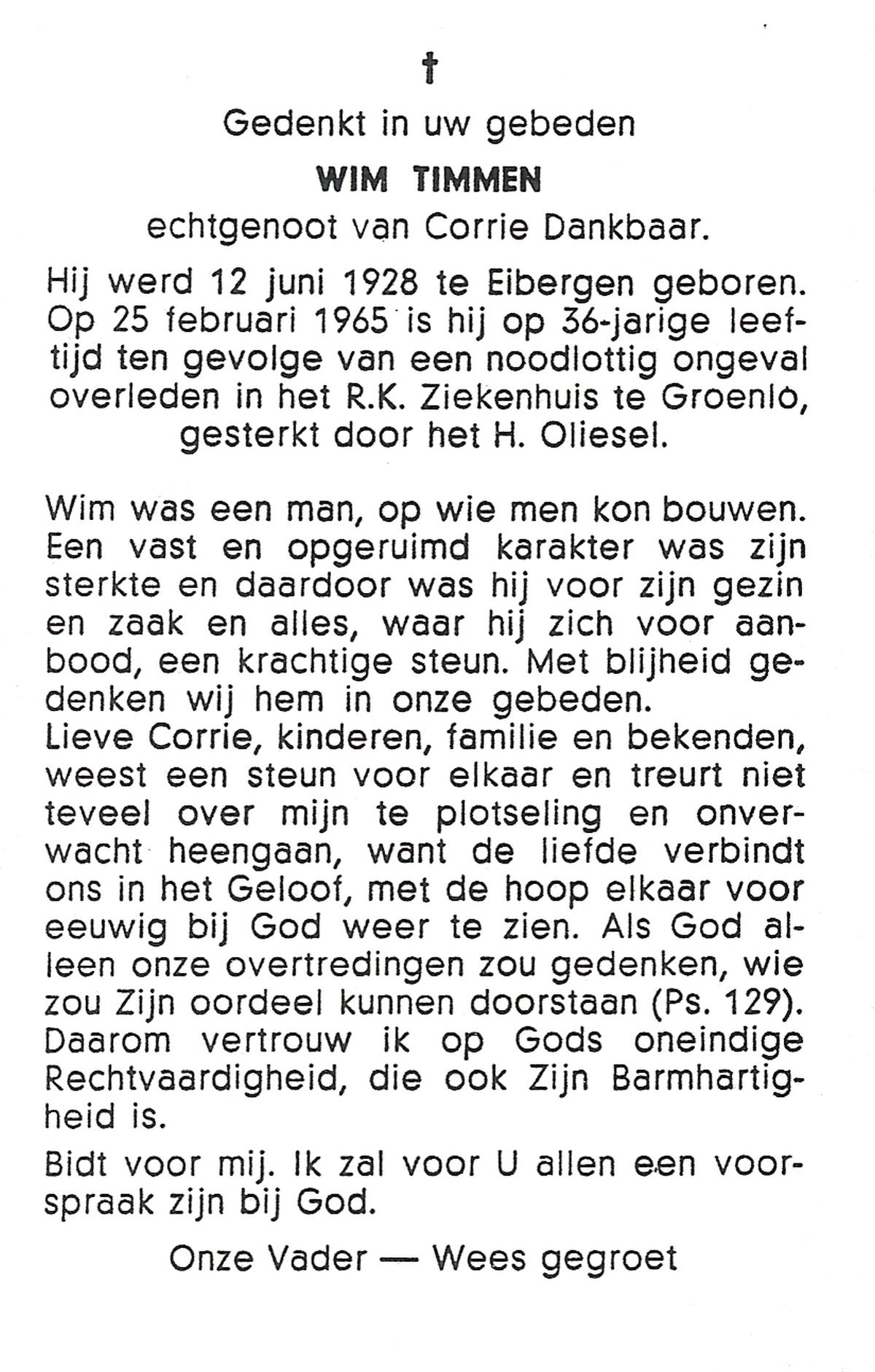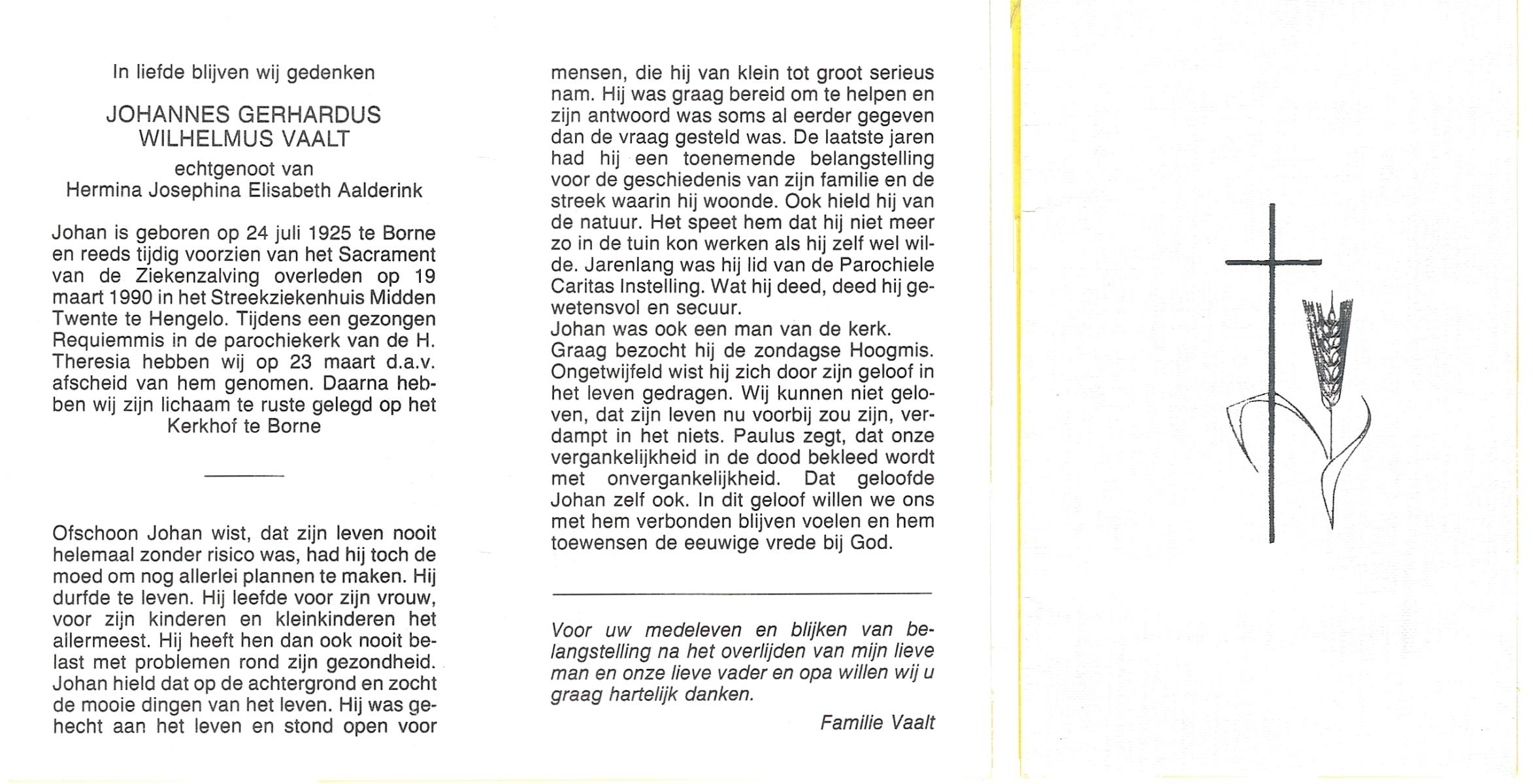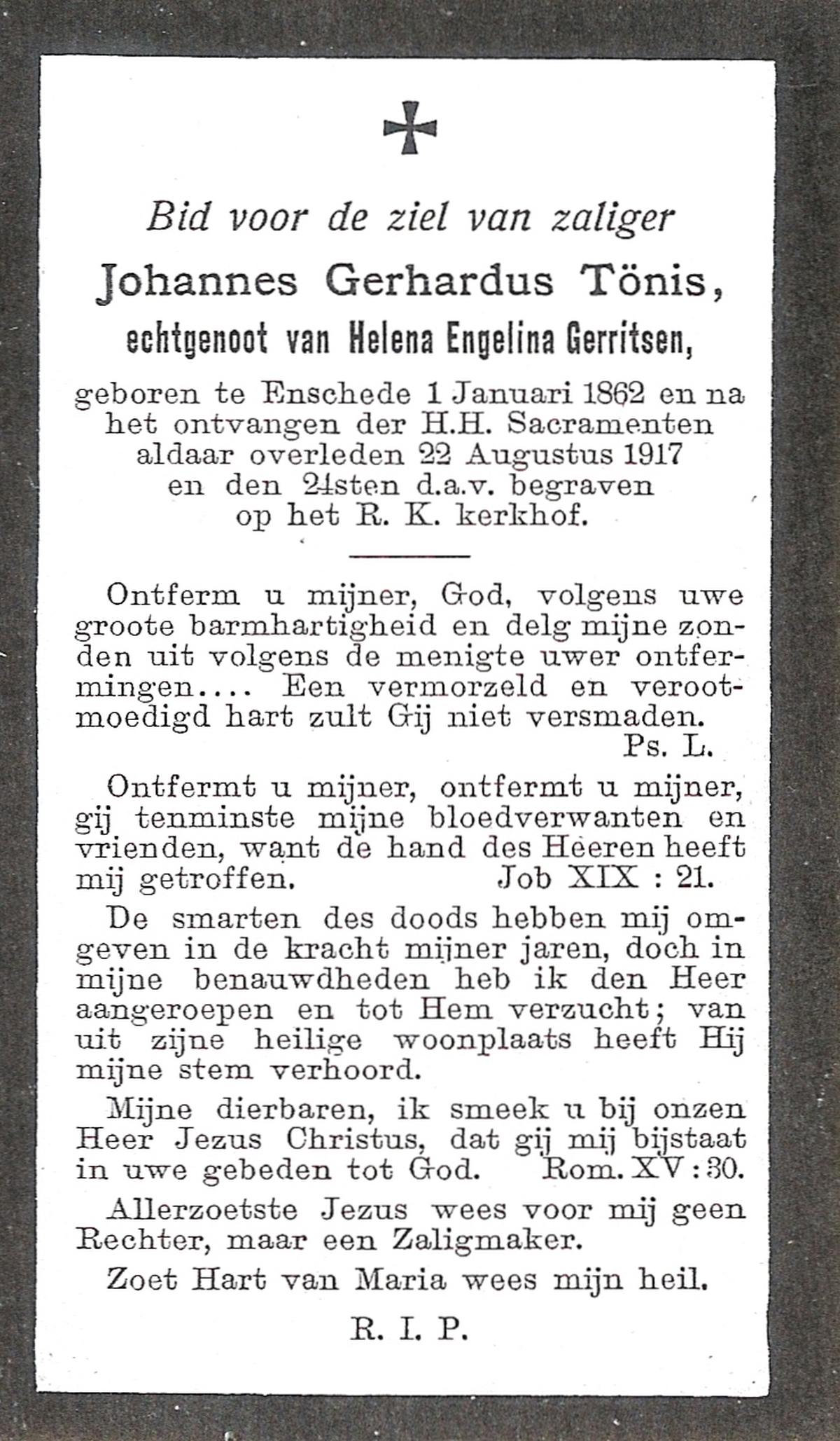 TIJHAAR, Wilhelmus Petrus, geboren op 01-08-1889 te Rijssen, overleden op 4-4-1954 te Rijssen op 64-jarige leeftijd, begraven op 8-4-1954 te Rijssen.